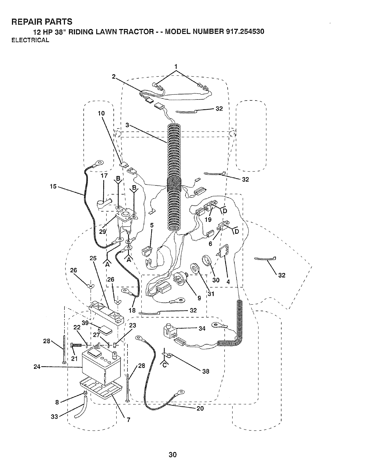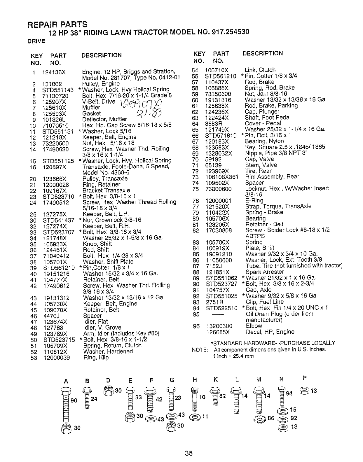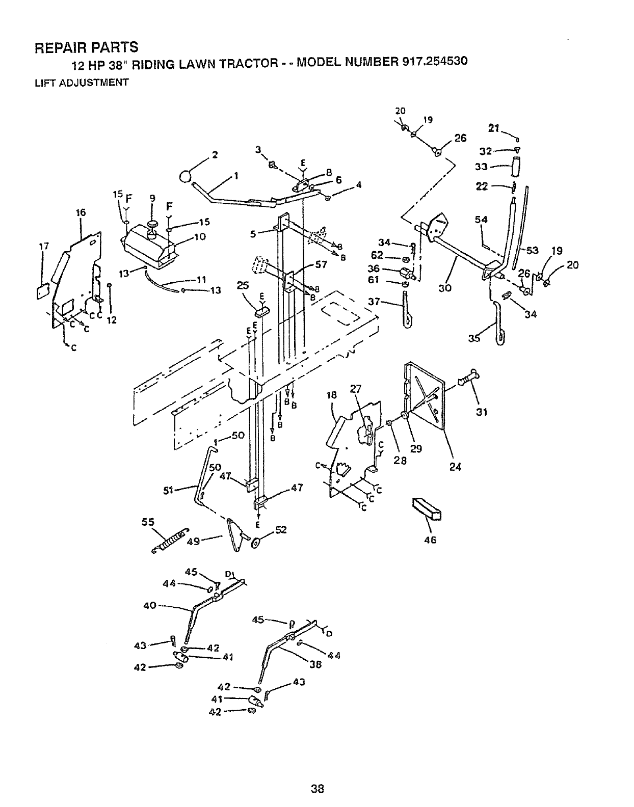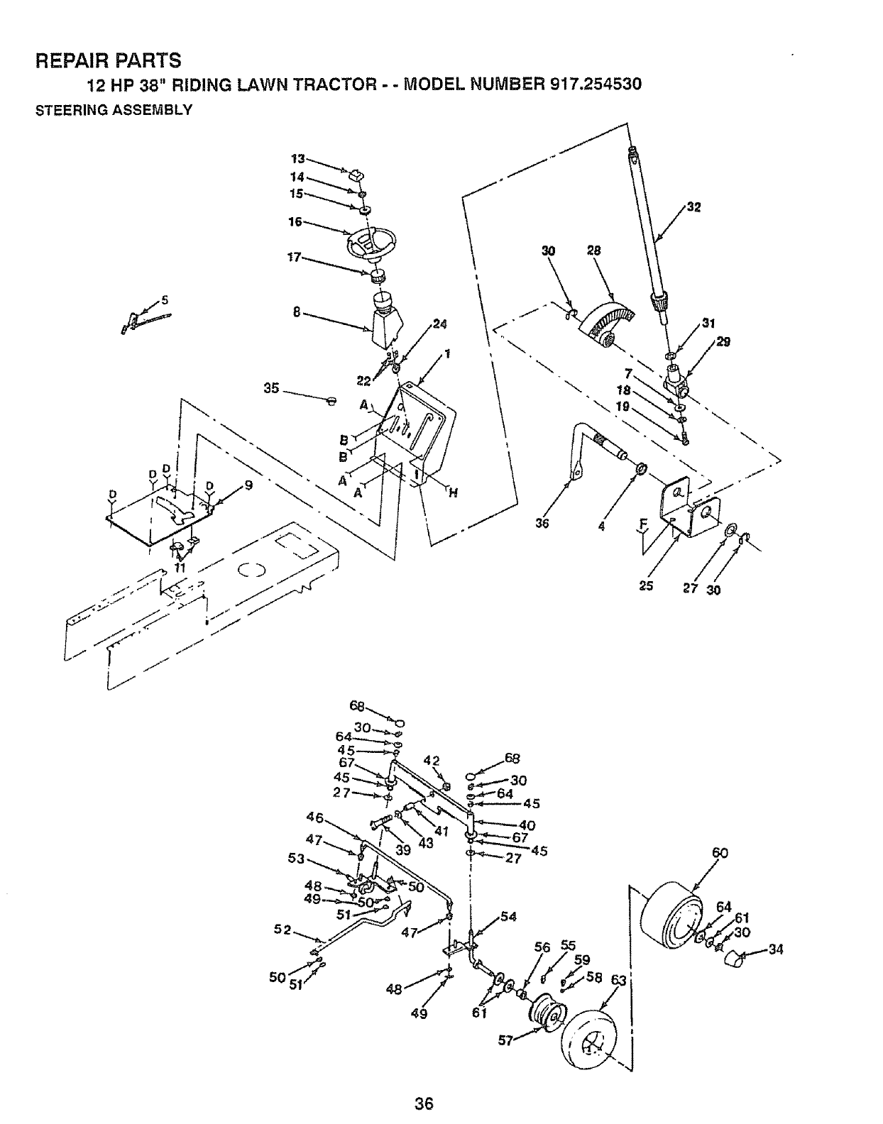 12 HP 38" RIDING LAWN TRACTOR - -MODEL NUMBER 917.254530