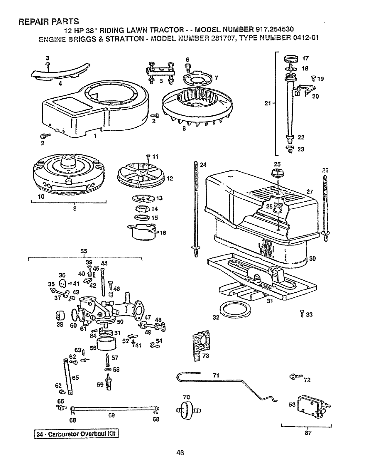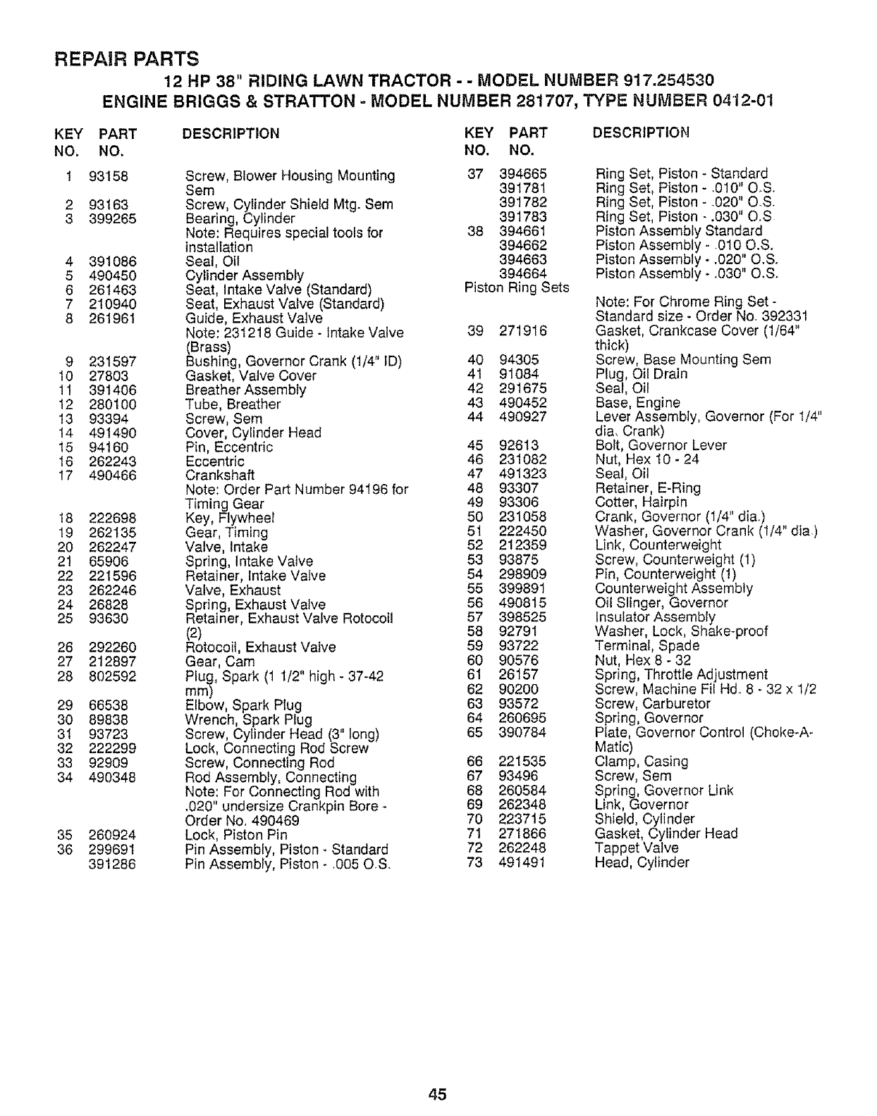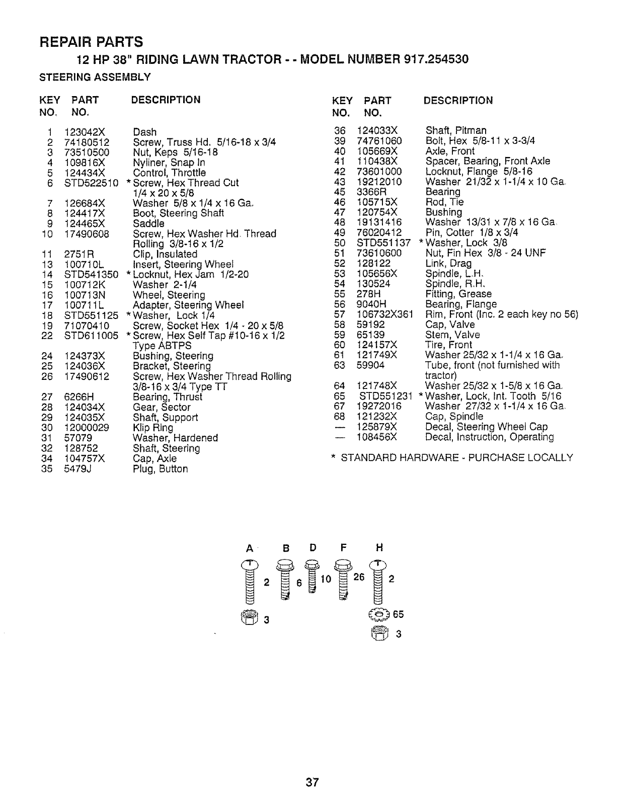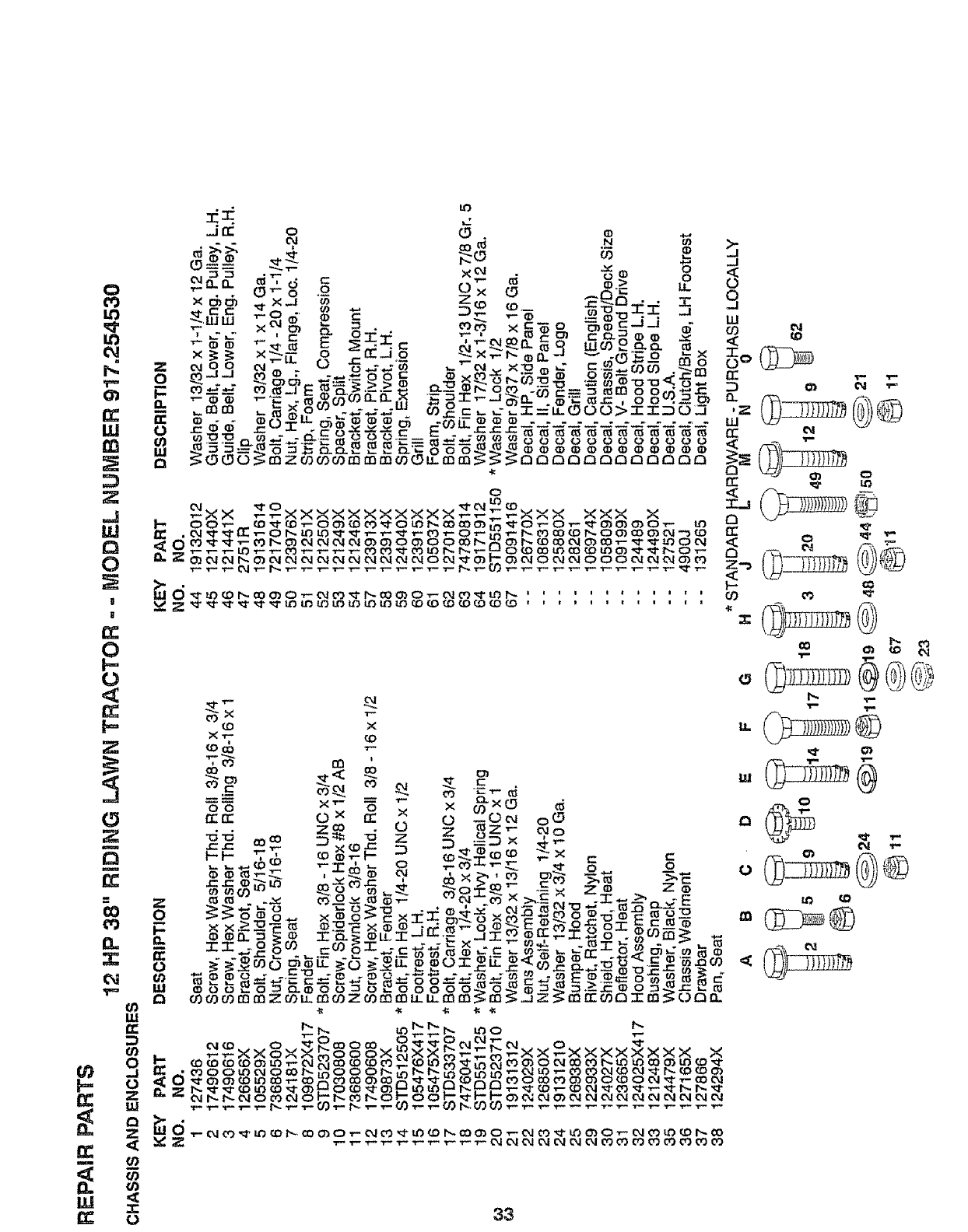 12 HP 38" RIDING LAWN TRACTOR - -MODEL NUMBER 917.254530