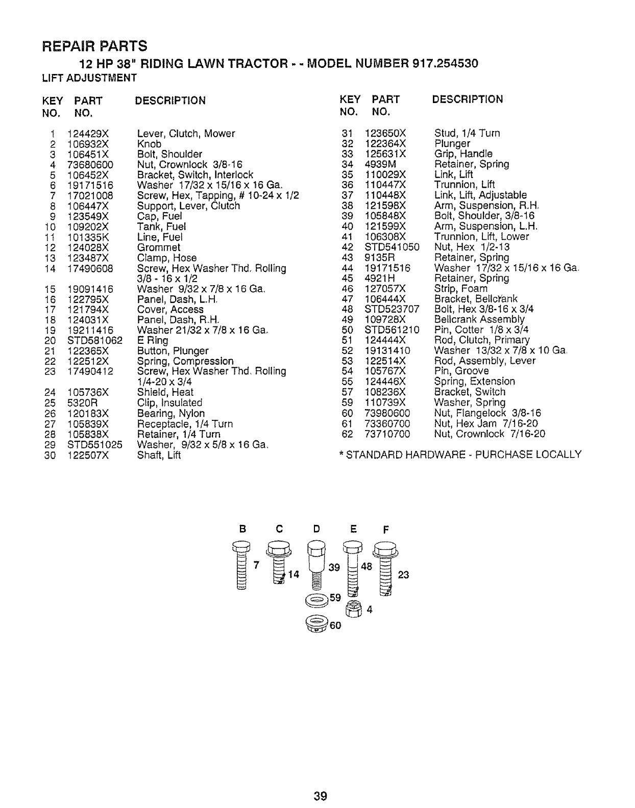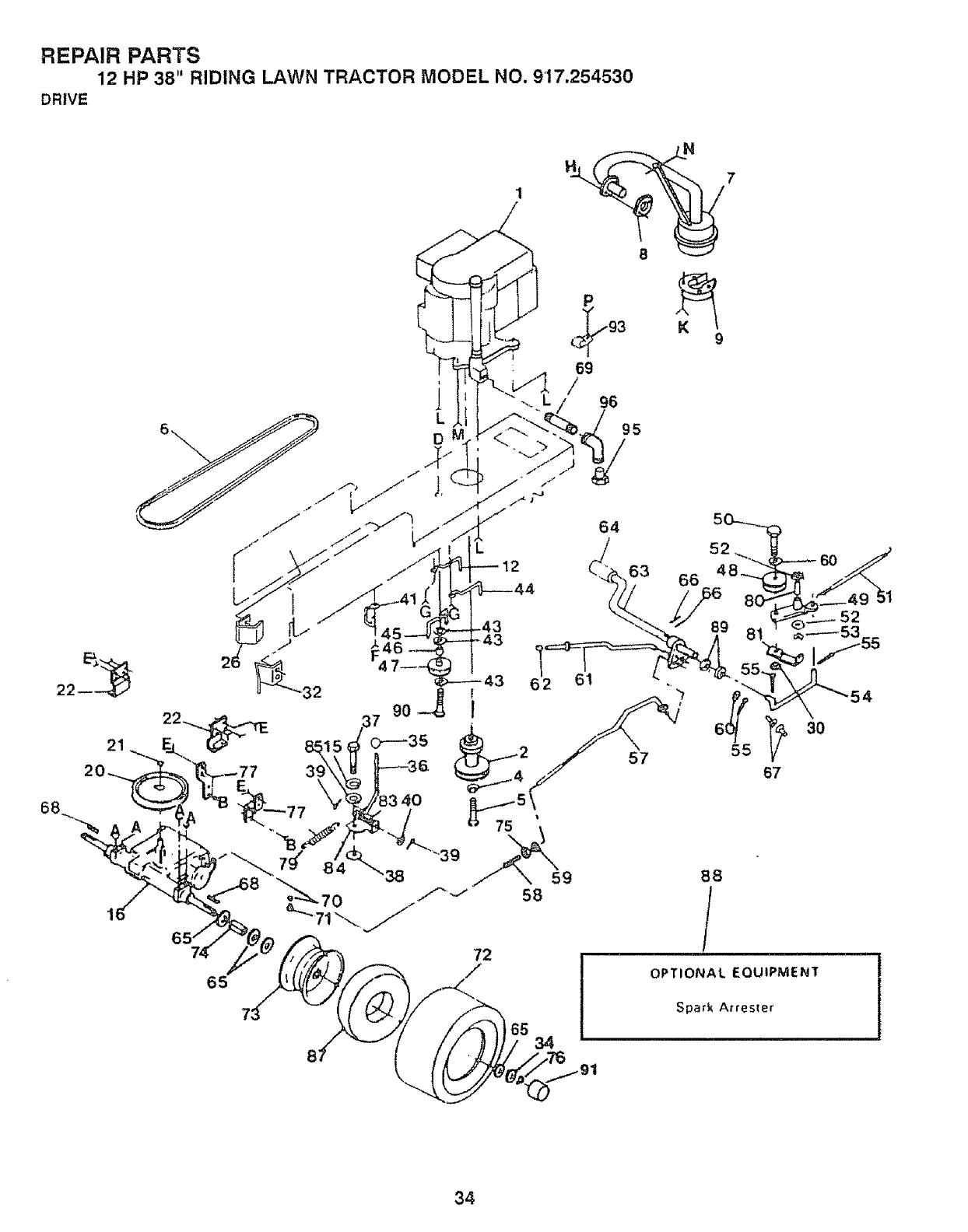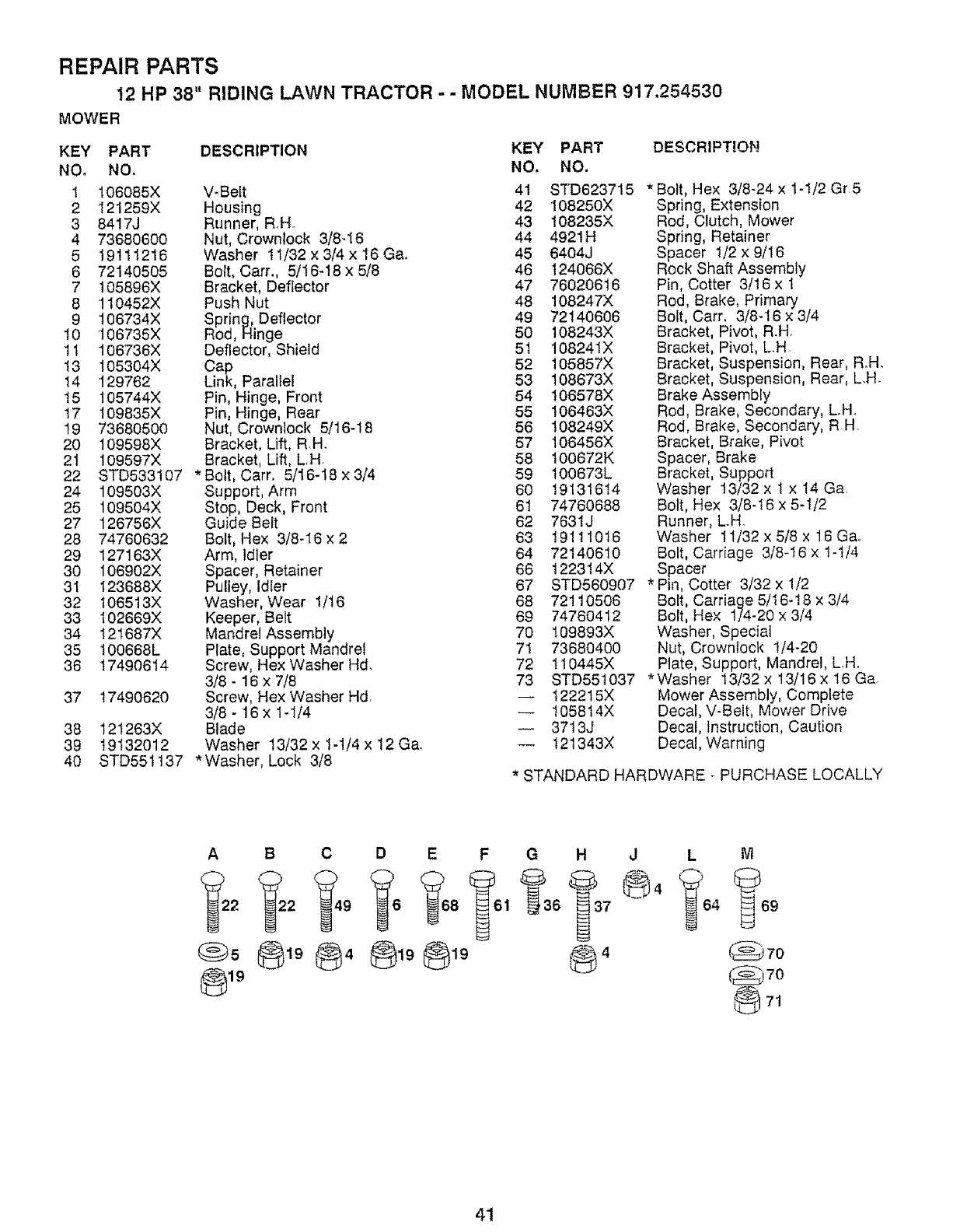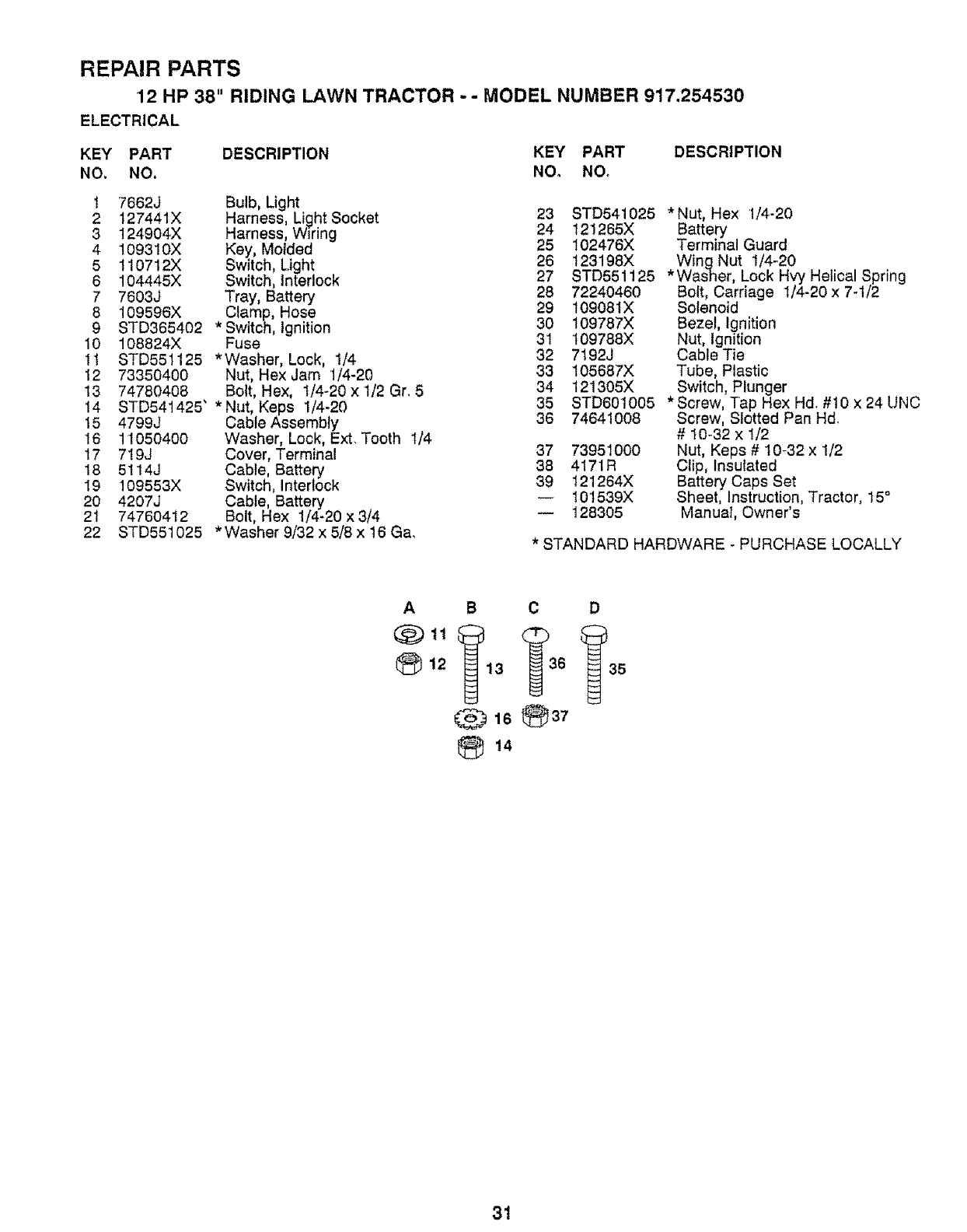 12 HP 38" RIDING LAWN TRACTOR - -MODEL NUMBER 917.254530