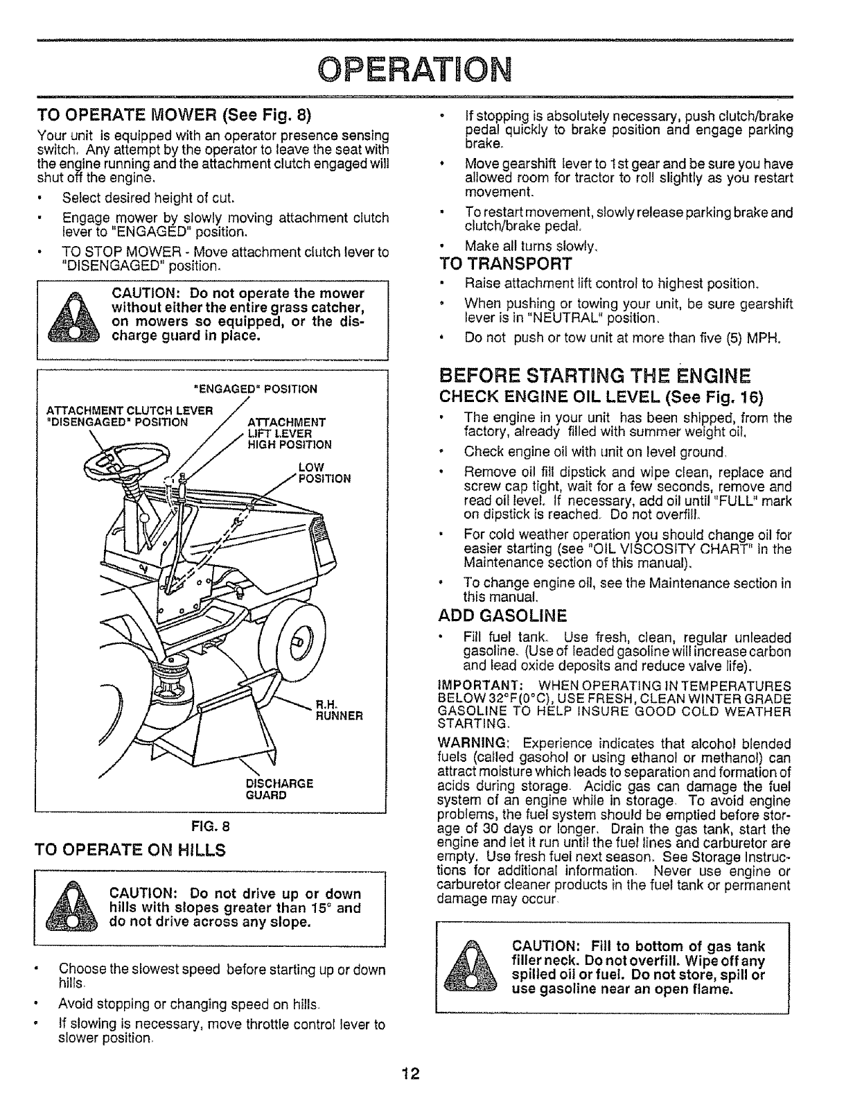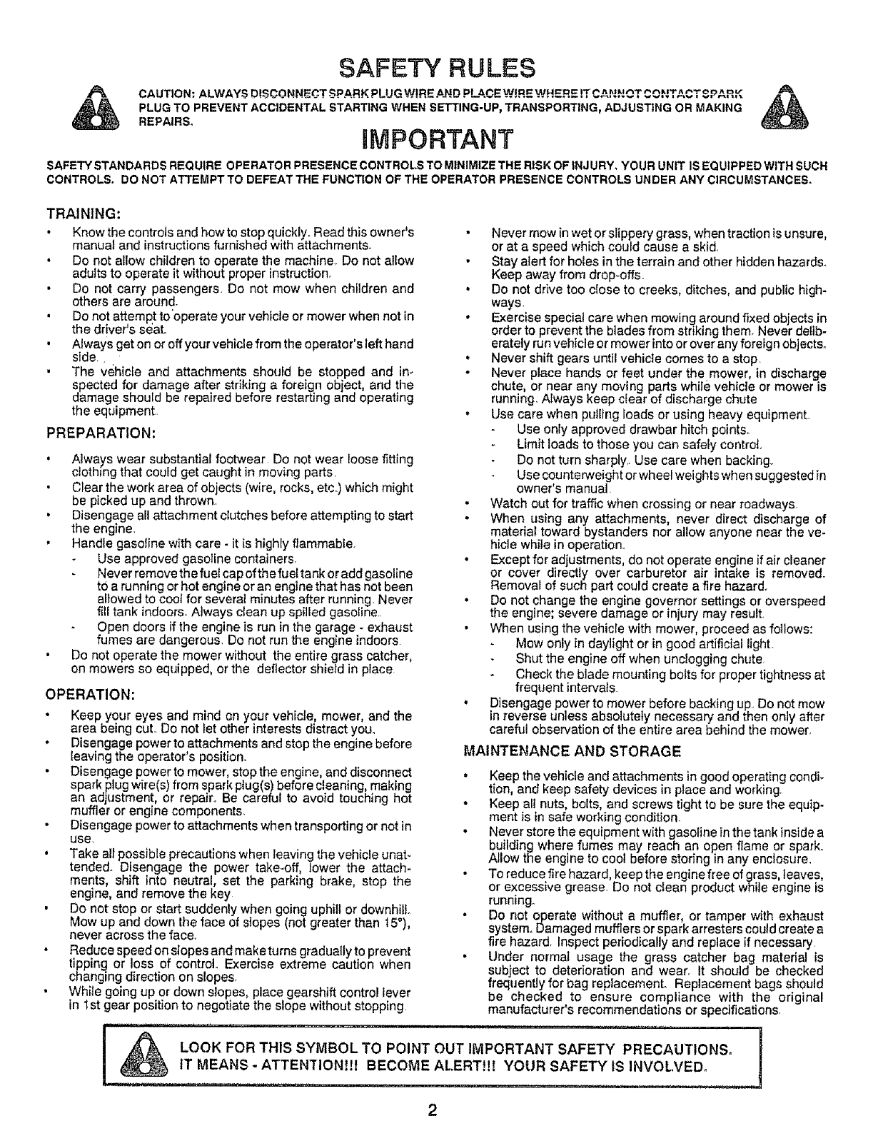 SAFETY STANDARDS REQUIRE OPERATOR PRESENCE CONTROLS TO MINIMIZETHE RISK OF INJURY, YOUR UNIT IS EQUIPPED WITH SUCH