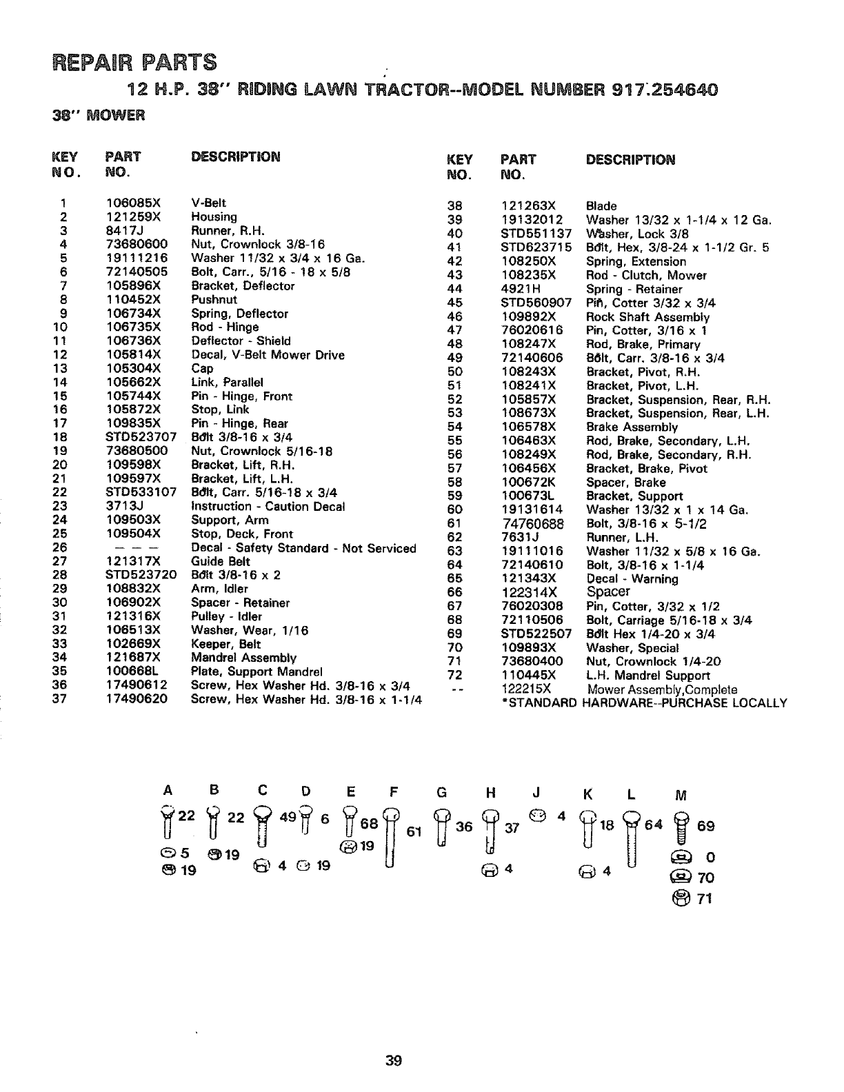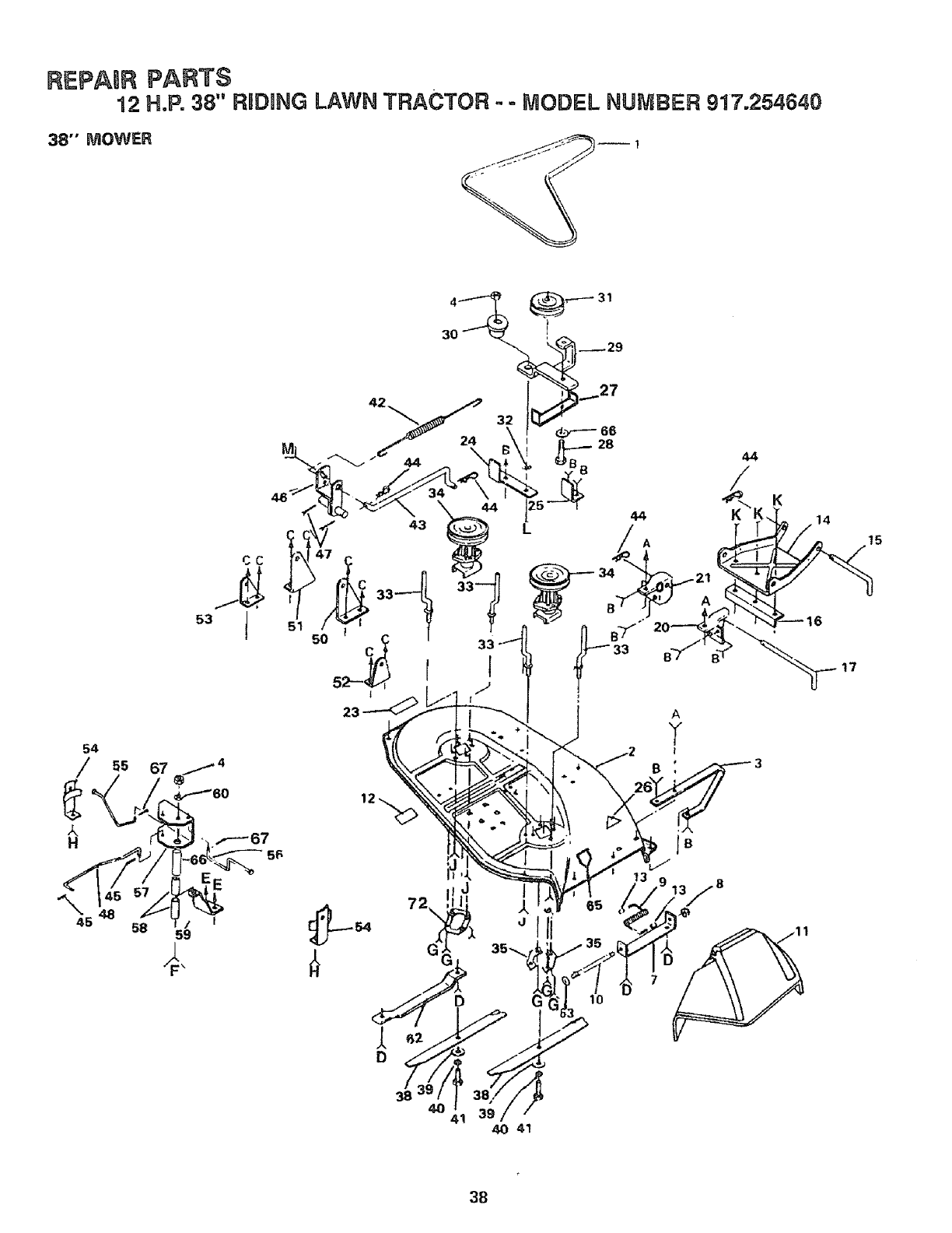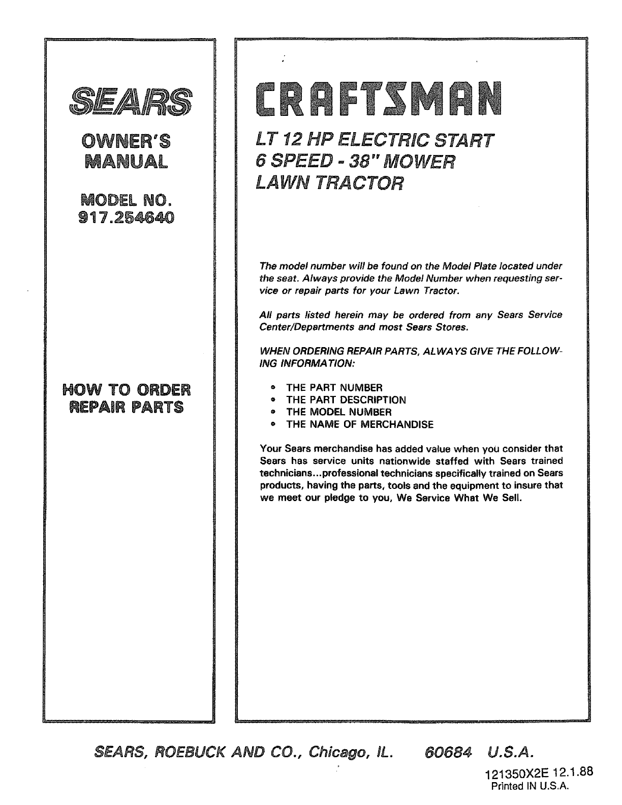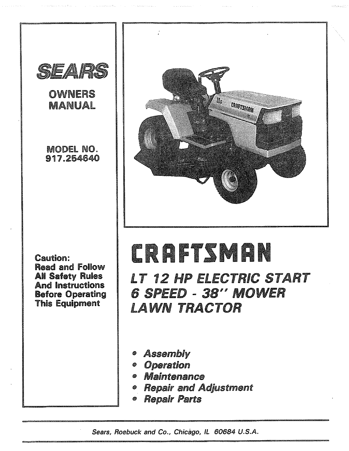 User Manual: Craftsman 917254640 917254640 CRAFTSMAN 12 H.P. 38 RIDING LAWN TRACTOR - Manuals and Guides View the owners manual for your CRAFTSMAN 12 H.P. 38 RIDING LAWN TRACTOR #917254640. Home:Lawn & Garden Parts:Craftsman Parts:Craftsman 12 H.P. 38 RIDING LAWN TRACTOR Manual