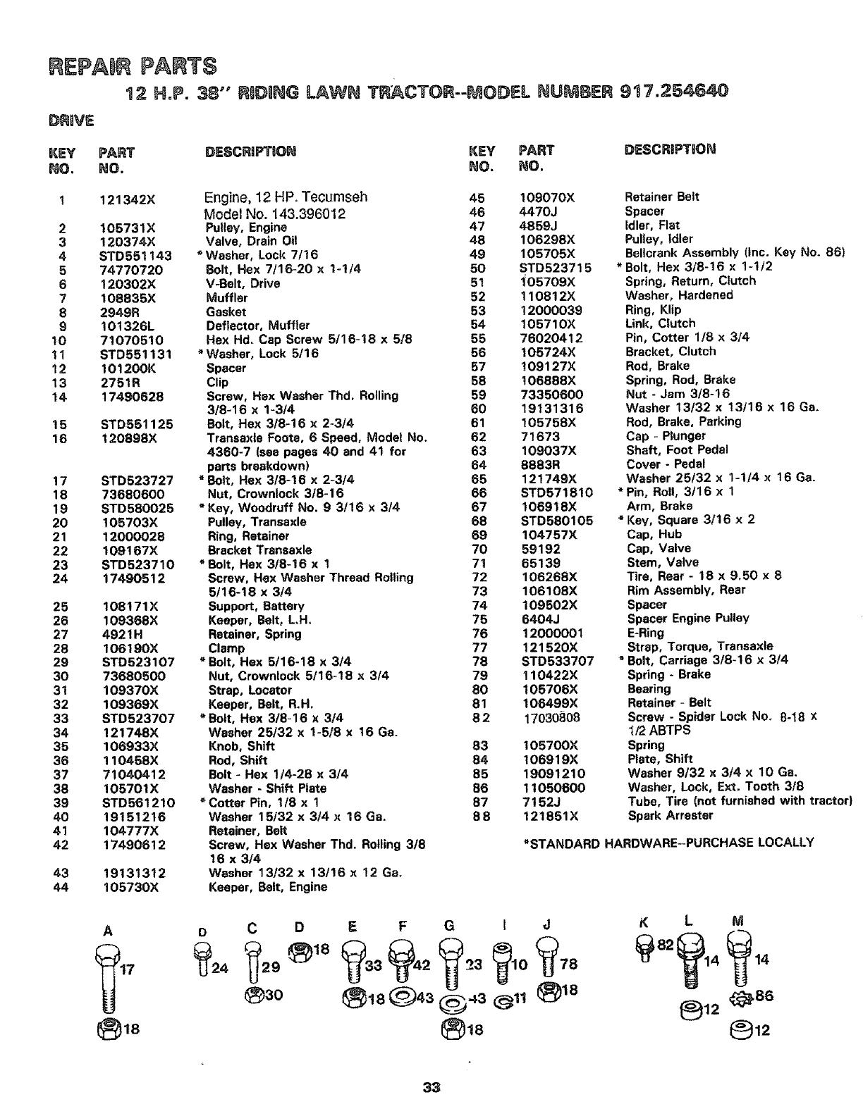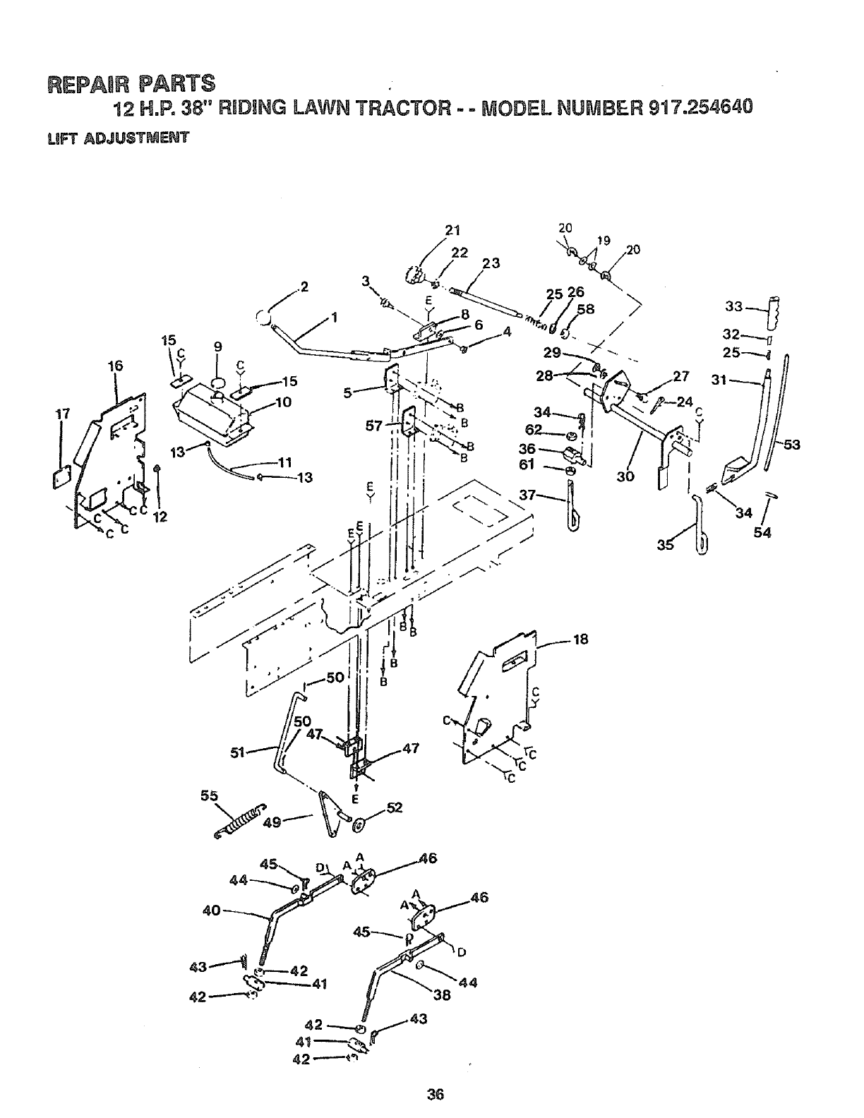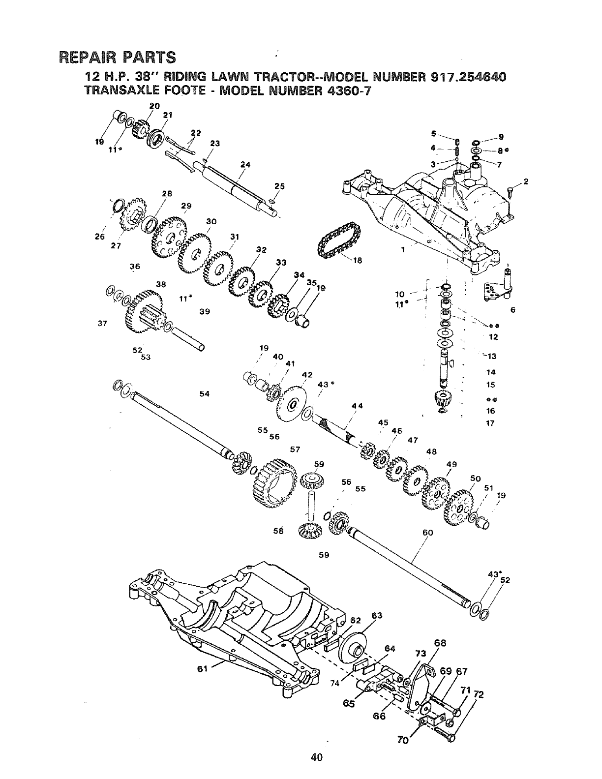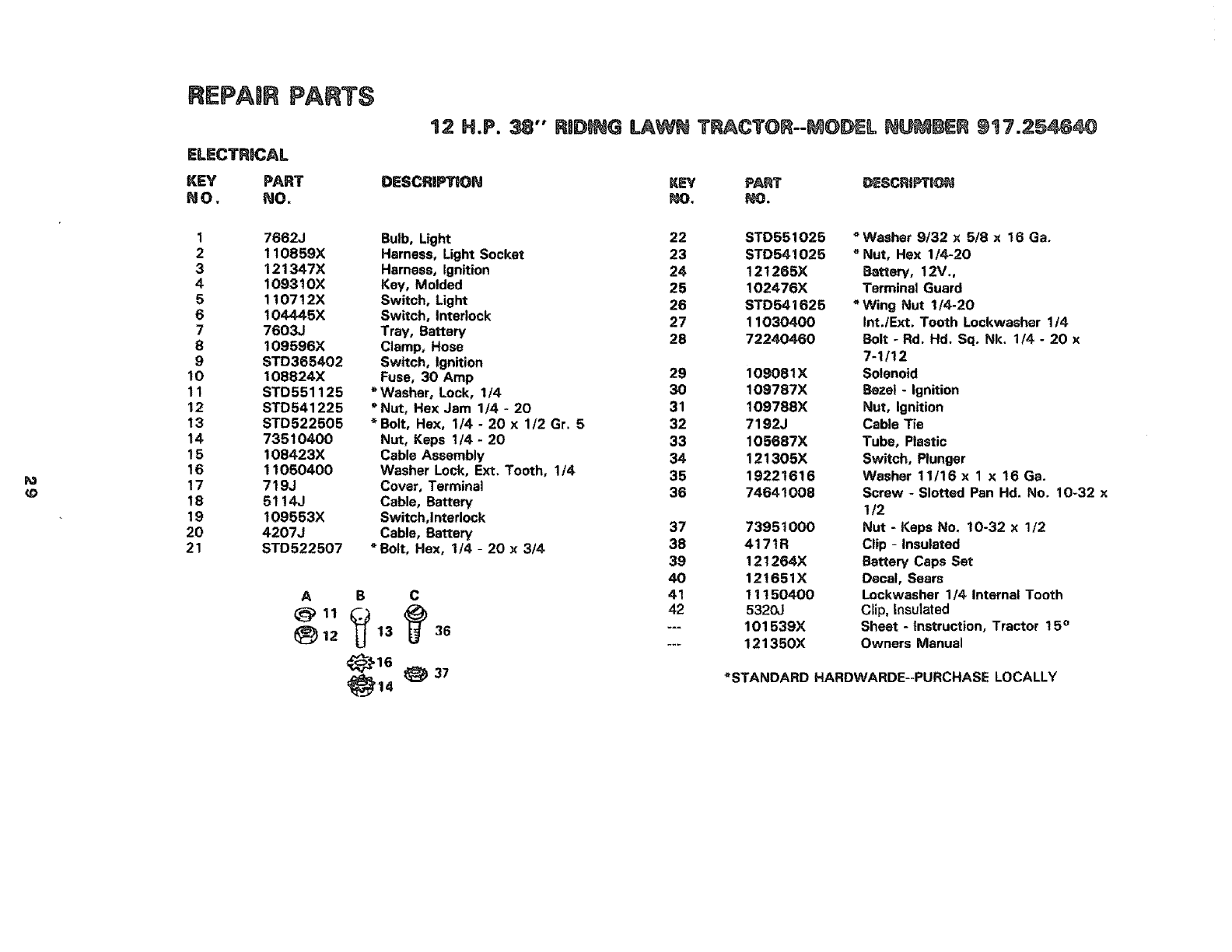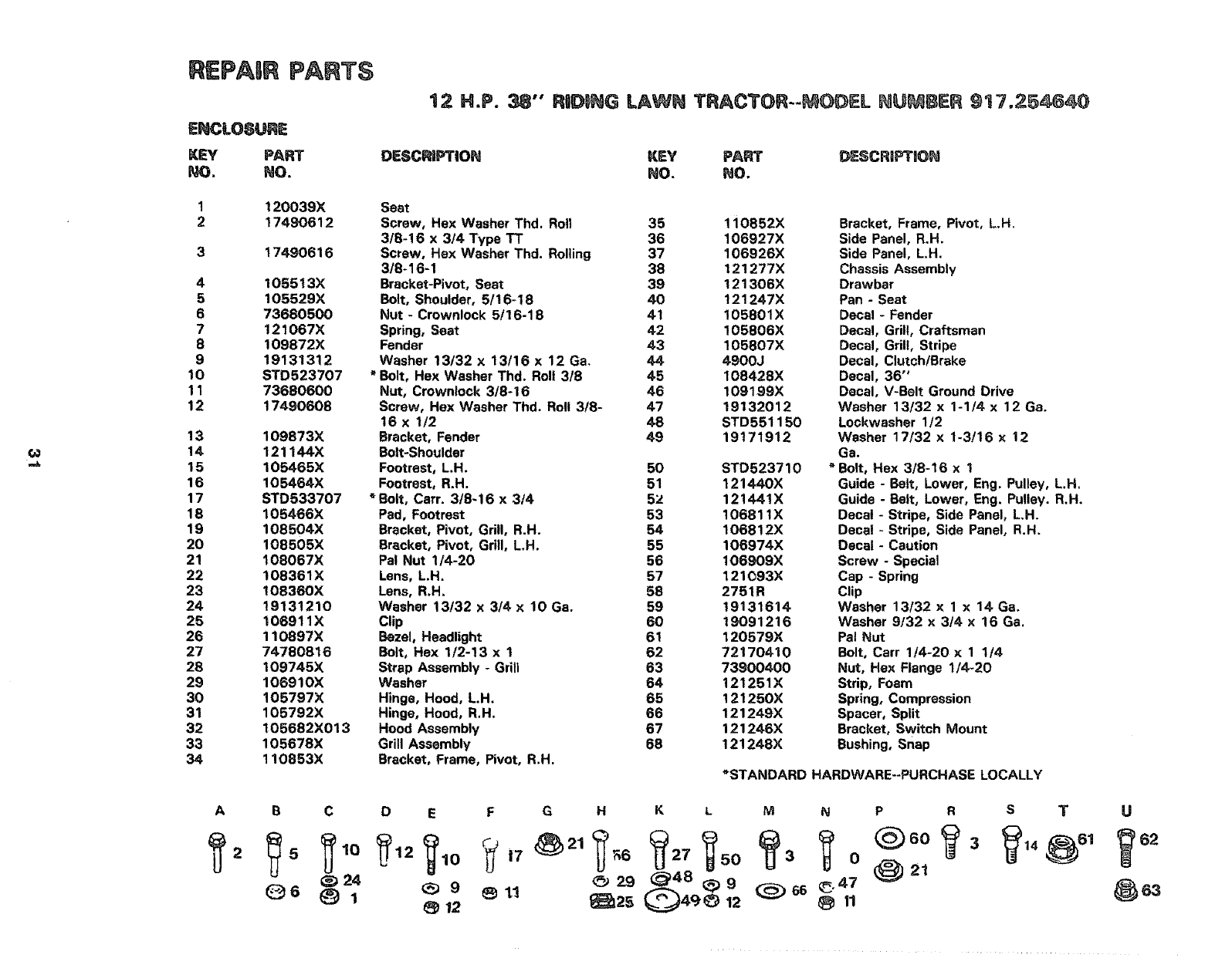 User Manual: Craftsman 917254640 917254640 CRAFTSMAN 12 H.P. 38 RIDING LAWN TRACTOR - Manuals and Guides View the owners manual for your CRAFTSMAN 12 H.P. 38 RIDING LAWN TRACTOR #917254640. Home:Lawn & Garden Parts:Craftsman Parts:Craftsman 12 H.P. 38 RIDING LAWN TRACTOR Manual
