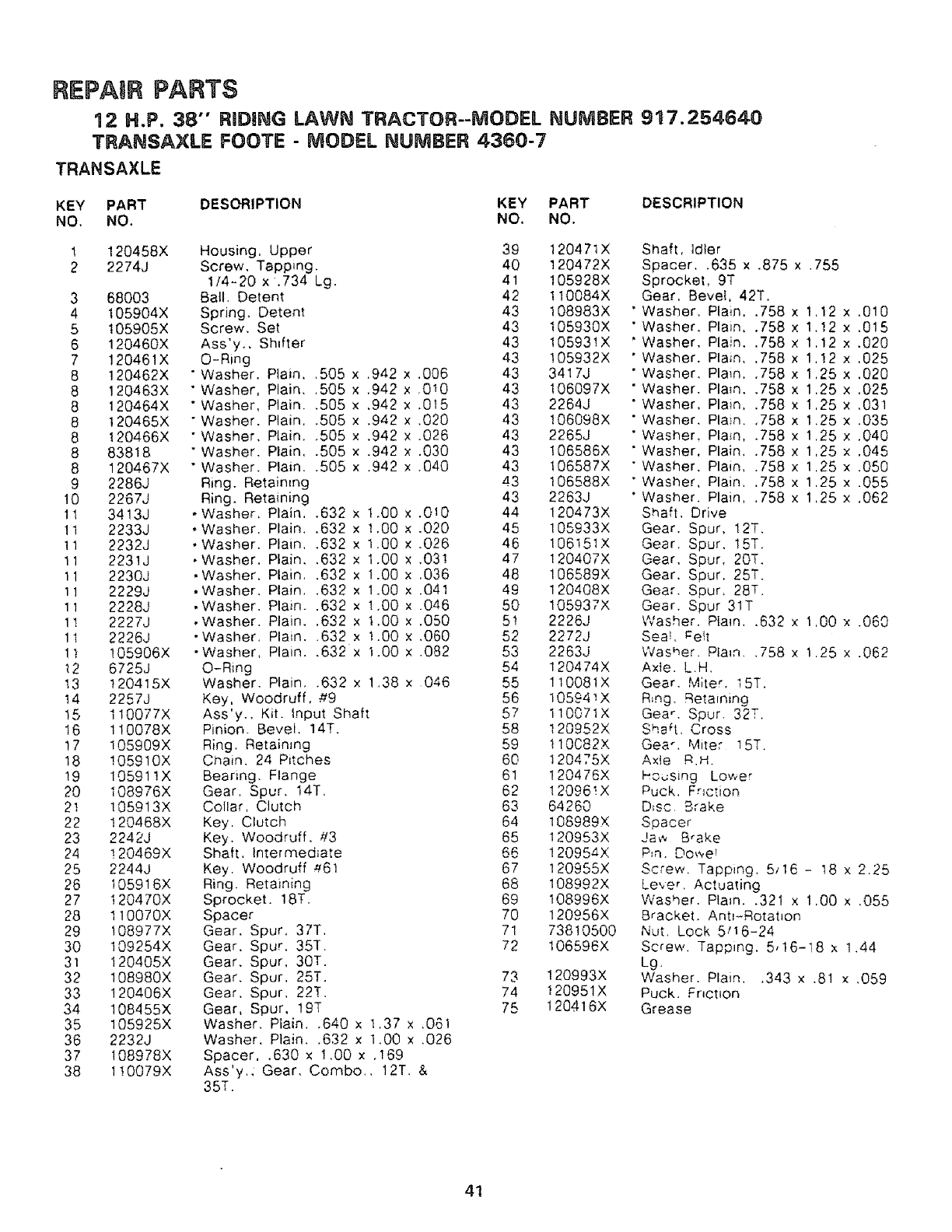 Craftsman 917254640 User Manual 12 H.P. 38 RIDING LAWN TRACTOR Manuals And Guides LR708037