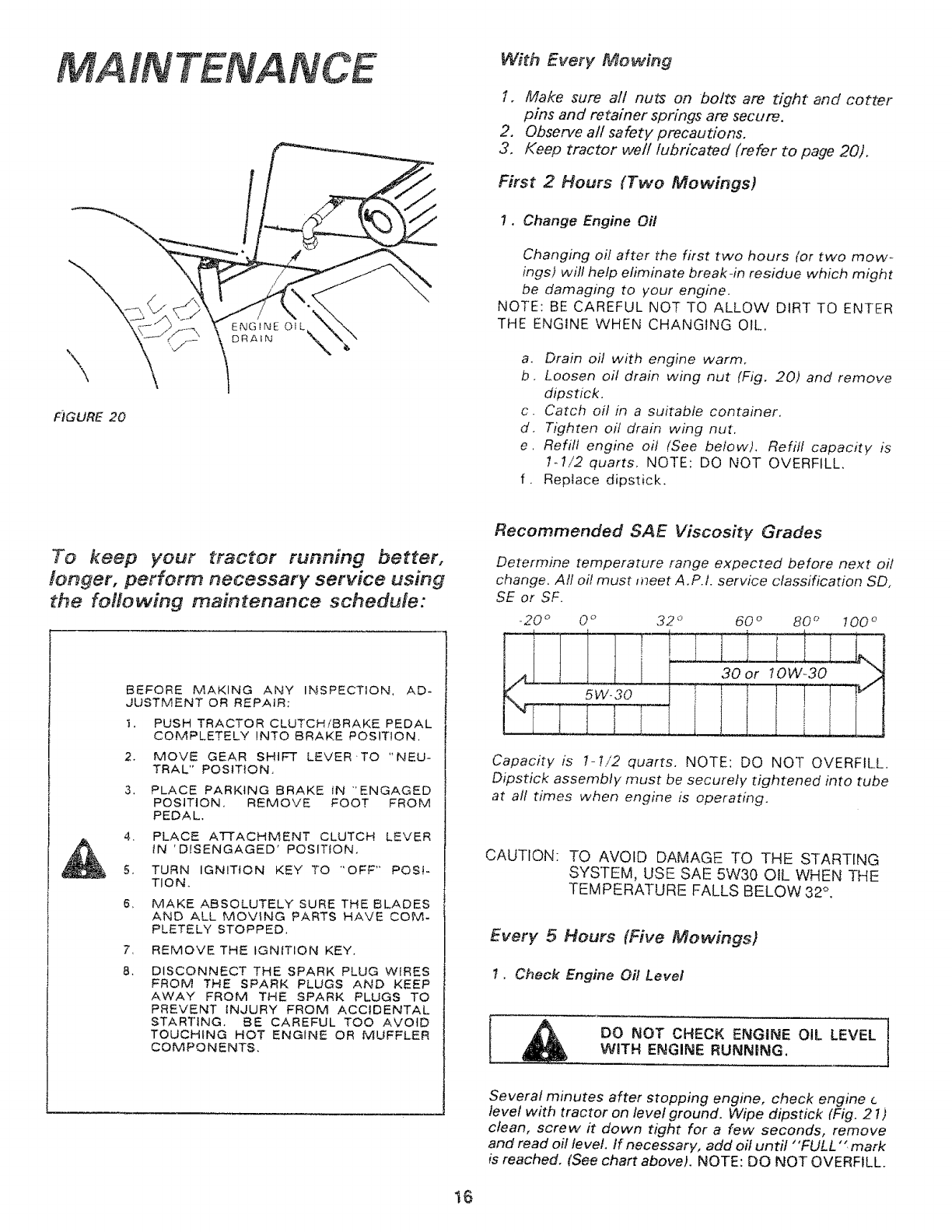 1t. Disengage power to mower, stop the engine and discon-