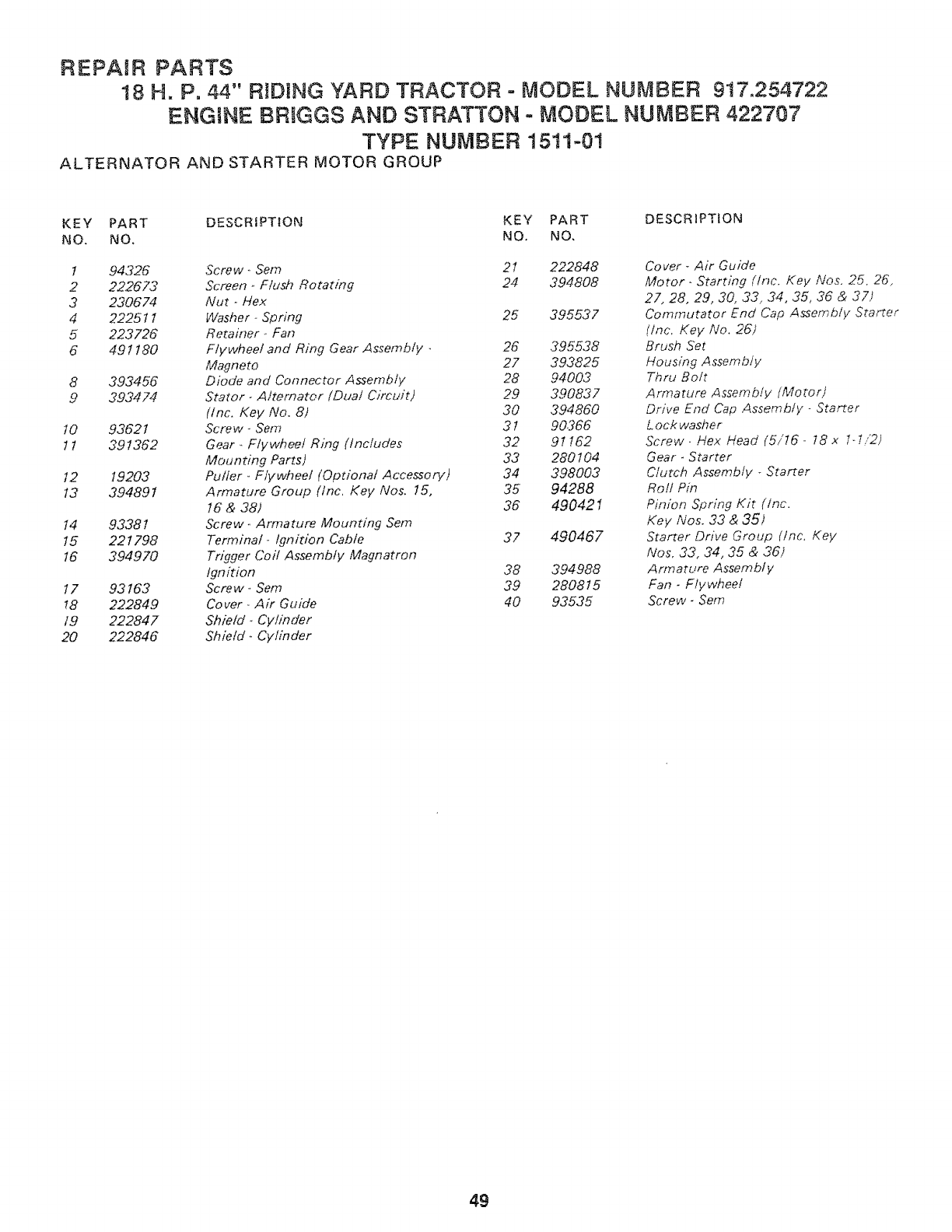 Craftsman 917254722 User Manual 18 HP TRACTOR Manuals And Guides L0904455