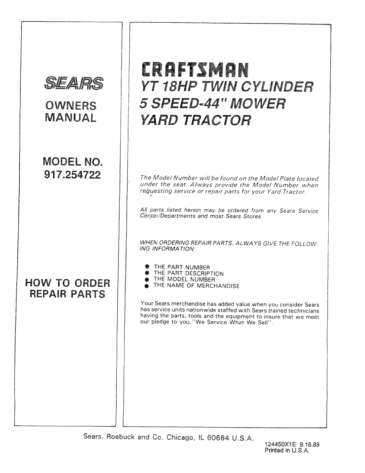 Sears, Roebuck and Co. Chicago, IL 60684 U.S.A. 124450X1E 9.18.89