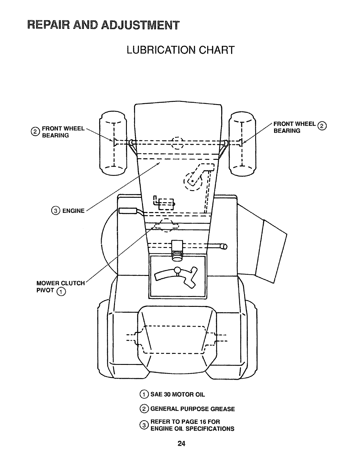 =_ Ch_ck front-to._rear and sUe-to-side Mower adjustment