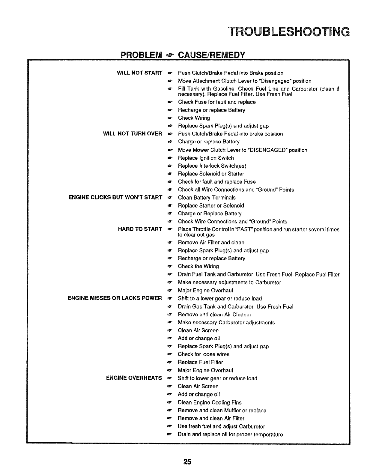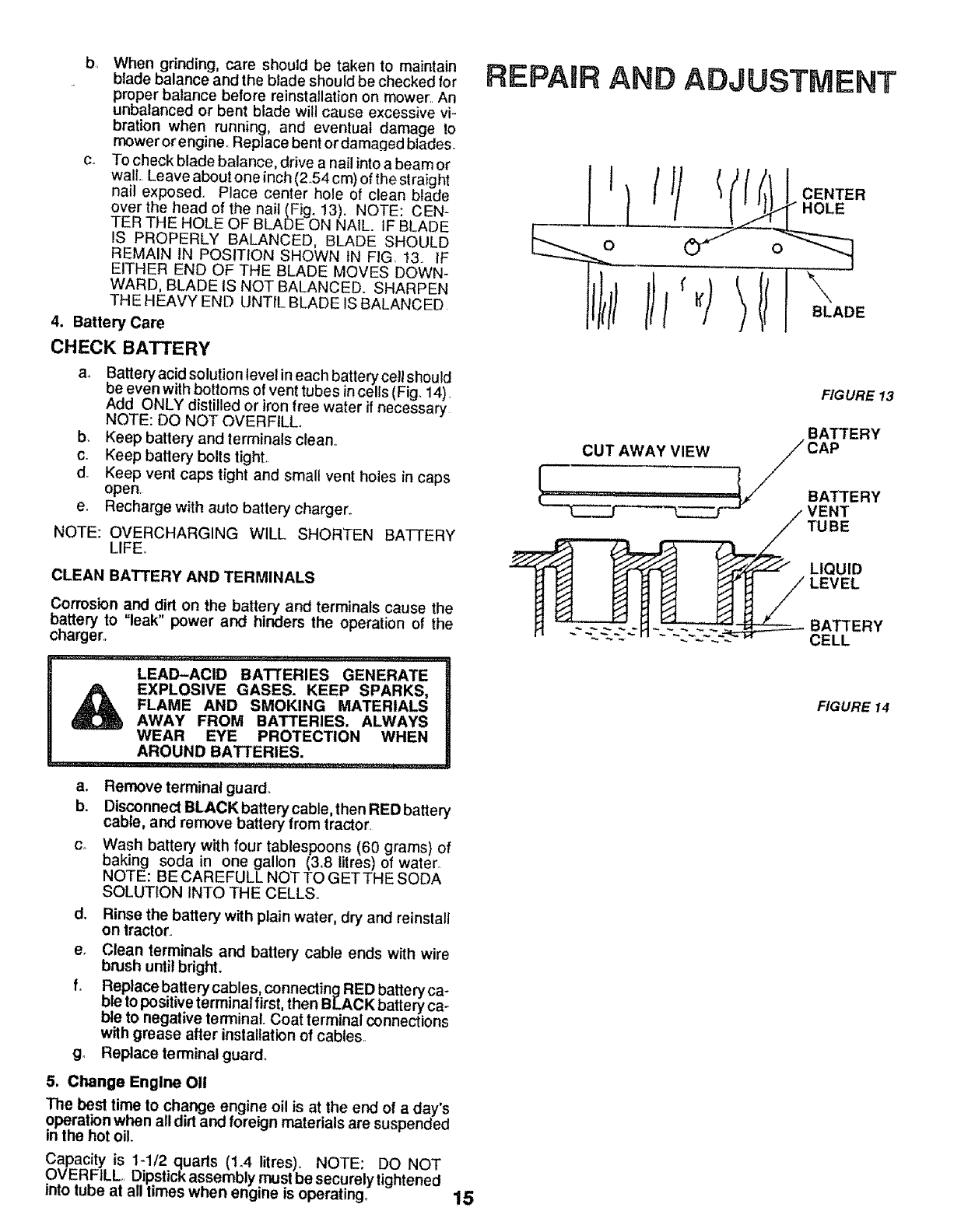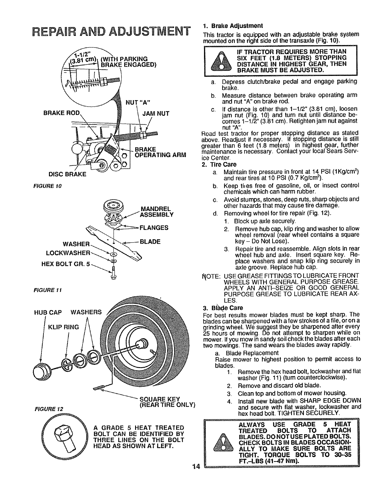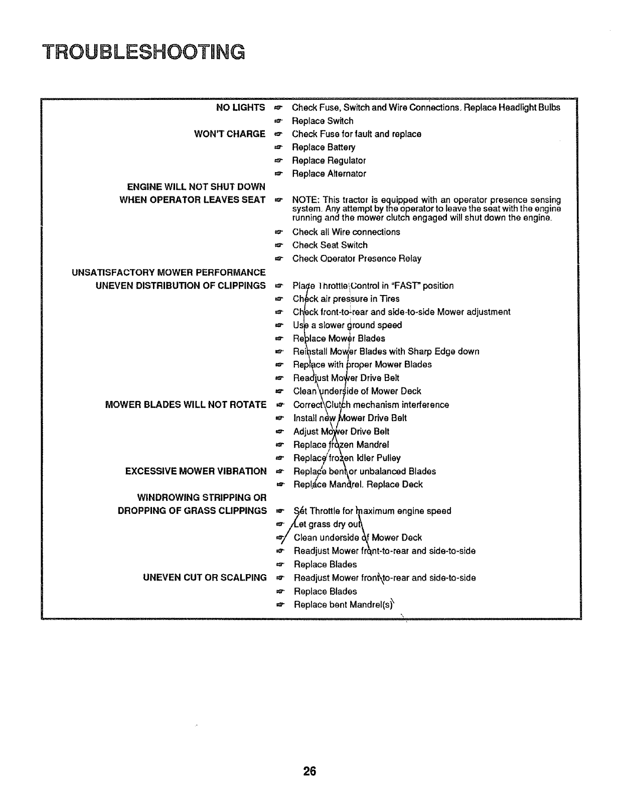 EXCESSIVE MOWER VIBRATION =_" Repl r unbalanced Blades
