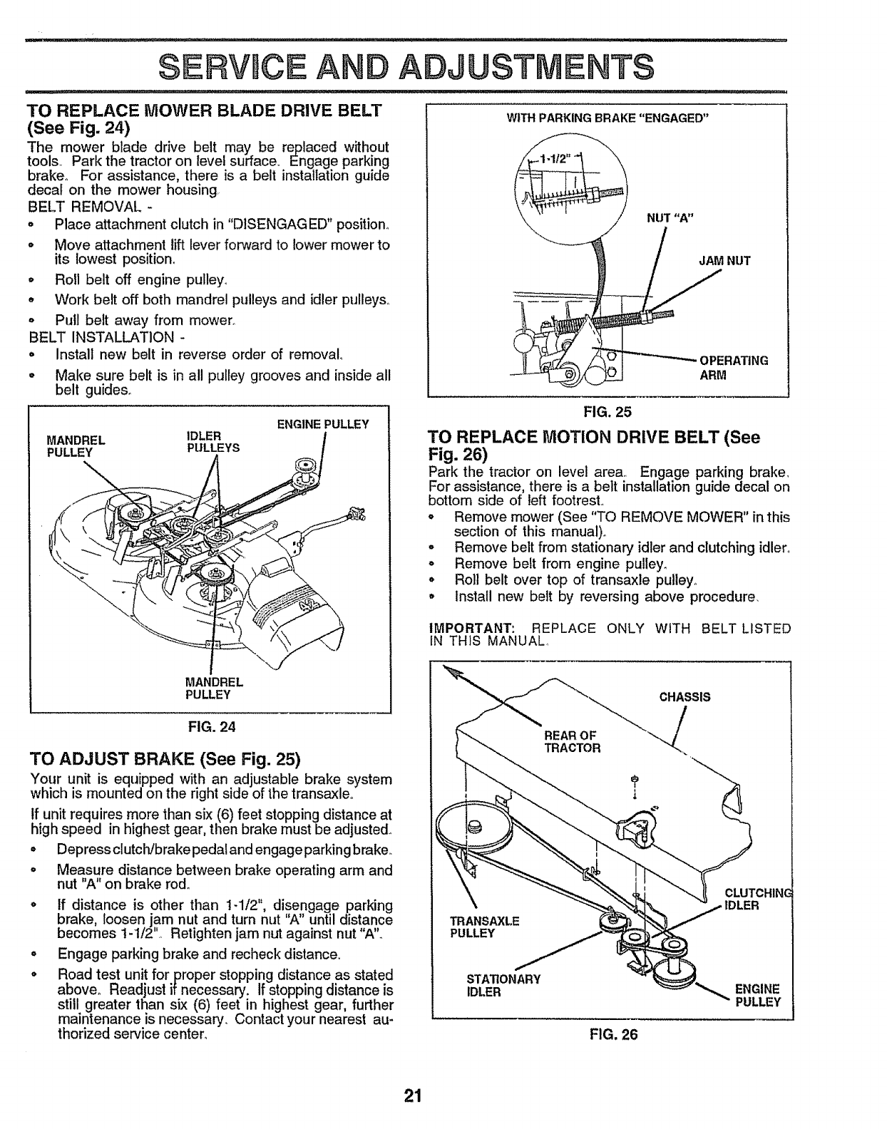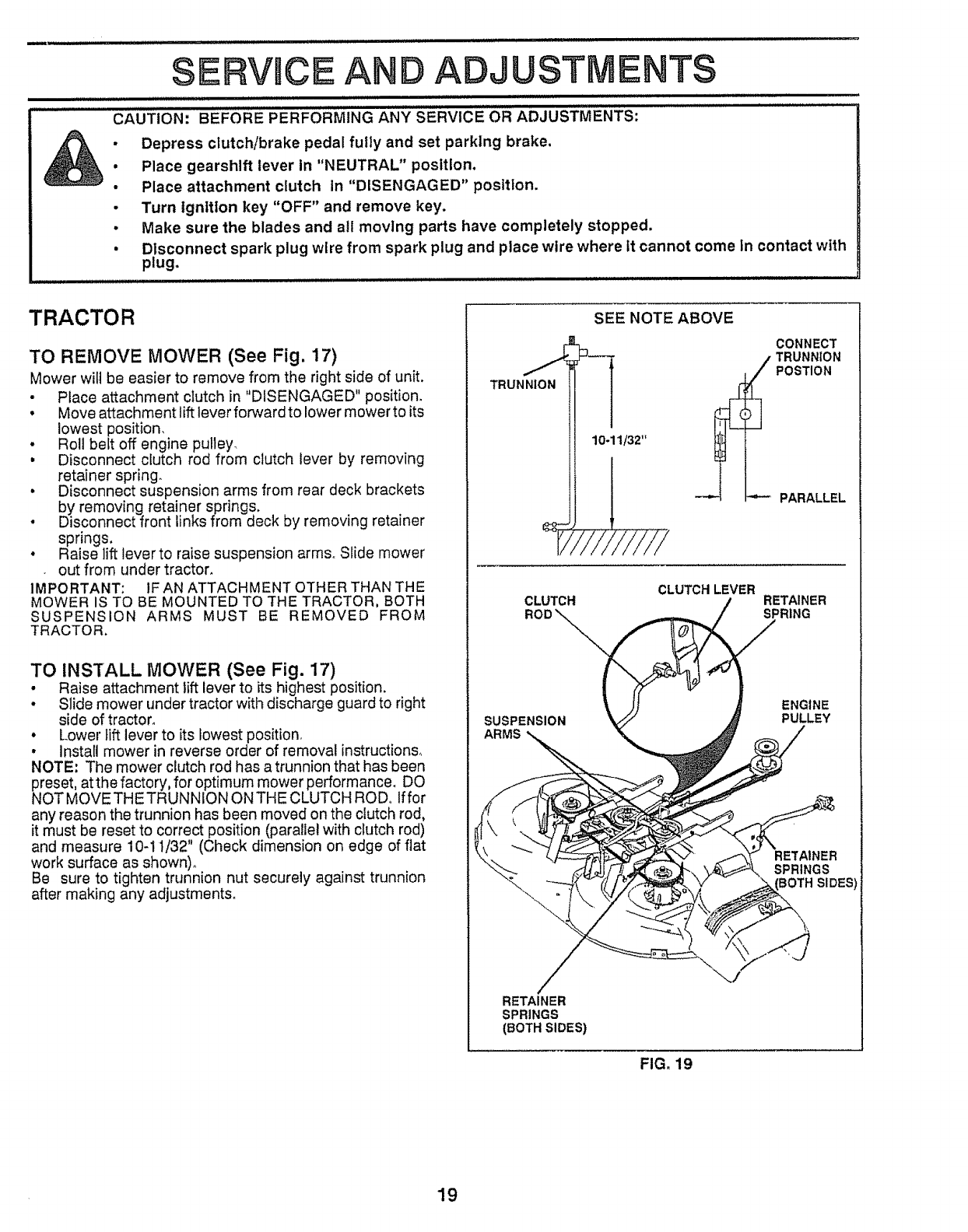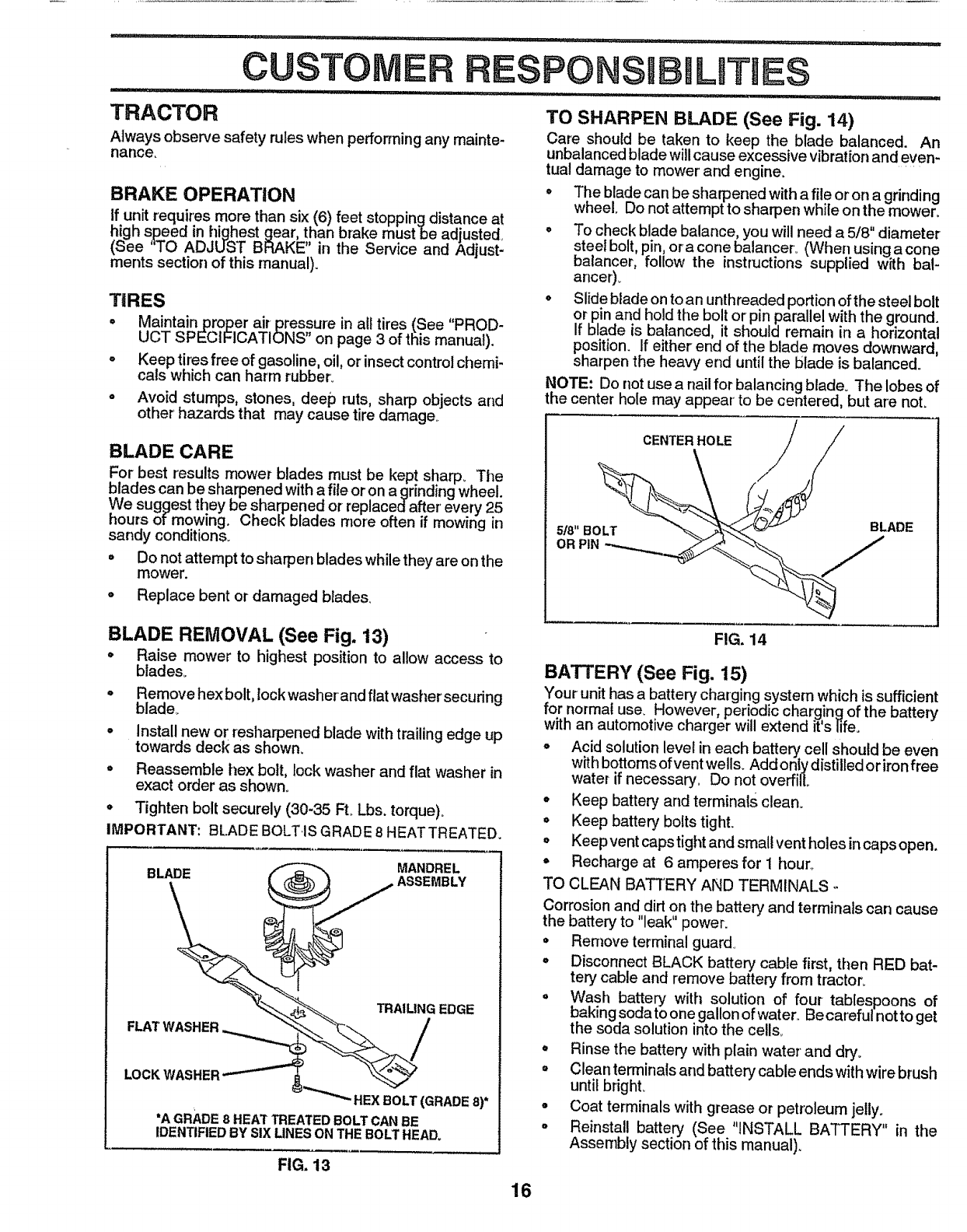 blades, set parking brake, stop engine, and remove keys