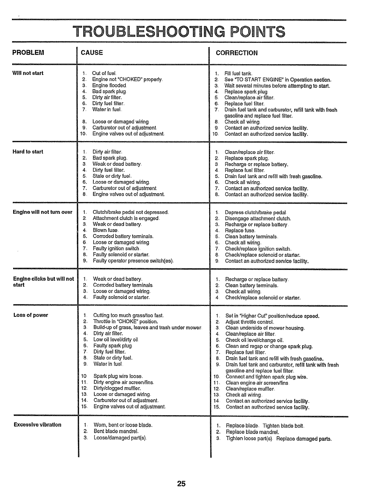 • Mow only in daylight or good artificial light.