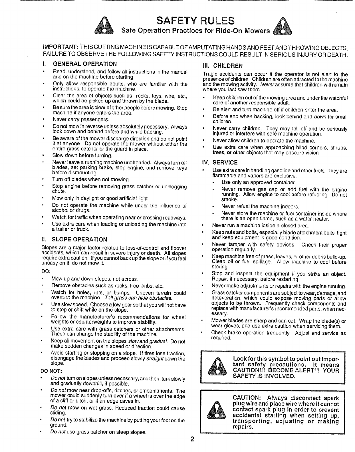 " Be alert and turn machine off if children enter the area.