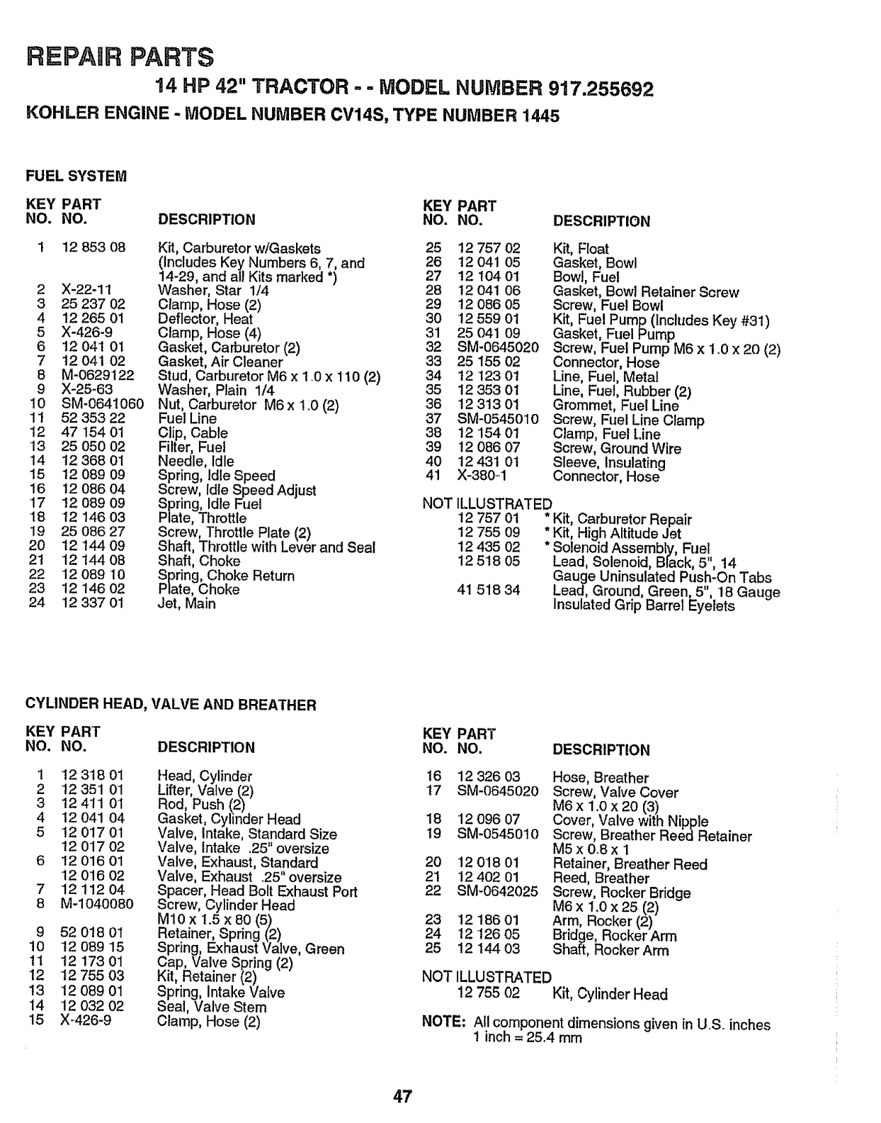 All parts listed herein may be ordered from any Sears, Roebuck and Co.
