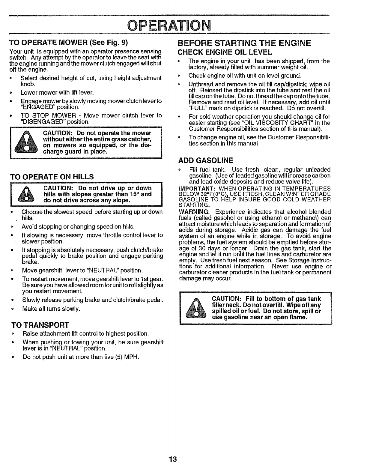•Do not mow near drop-offs, ditches, or embankments° The