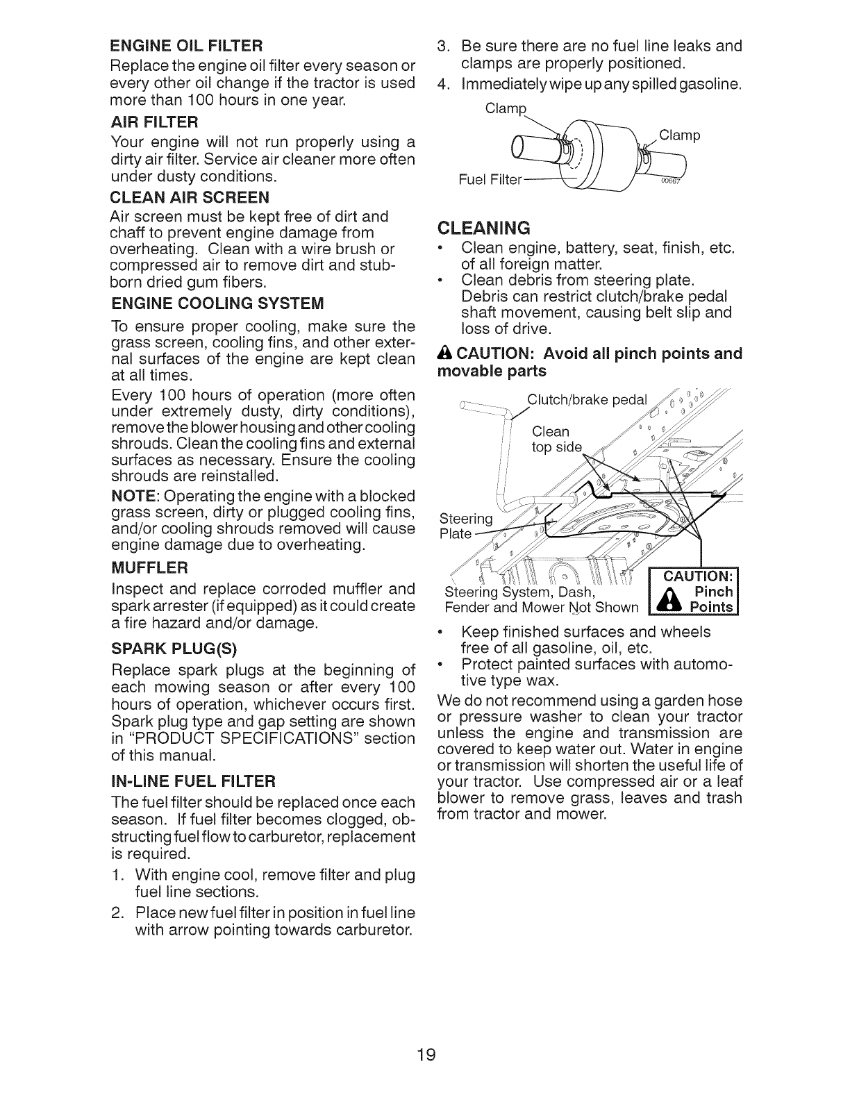 of engine oil, failure to keep the deck clear of flammable debris, or failure to maintain the riding
