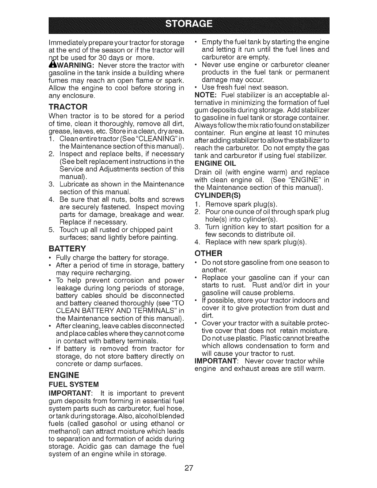 Storage ................................................ 27