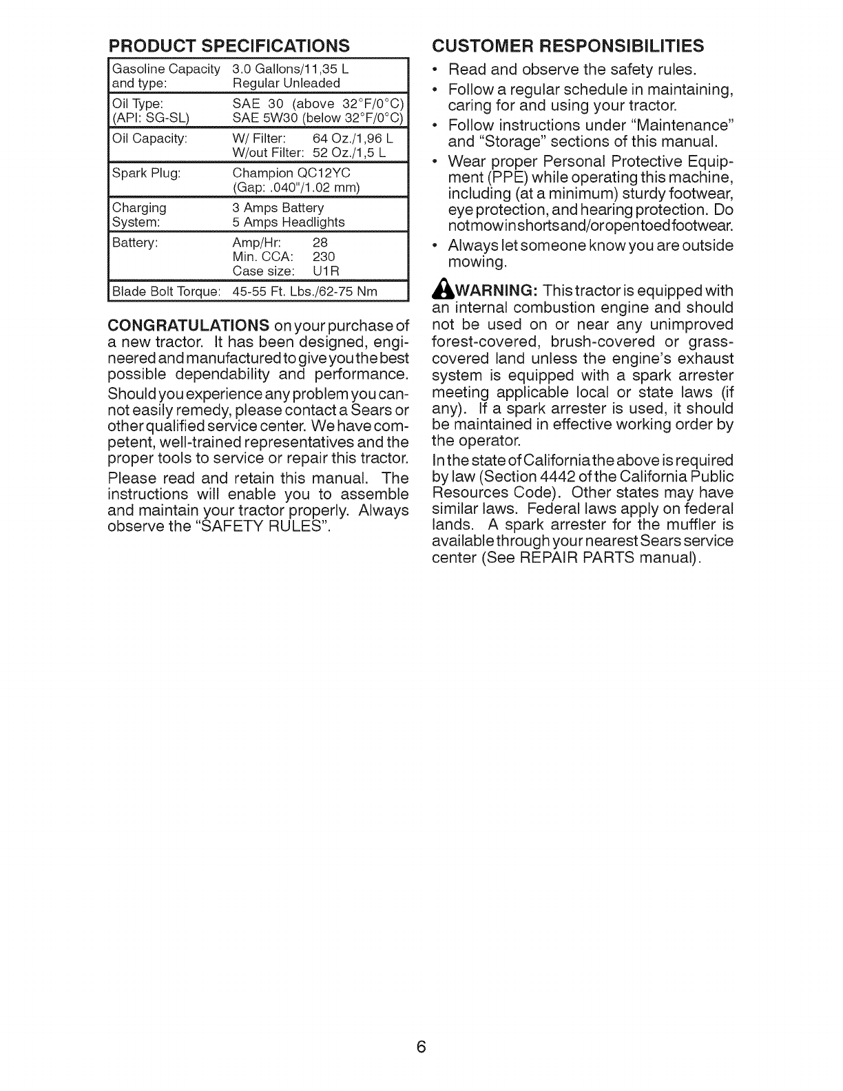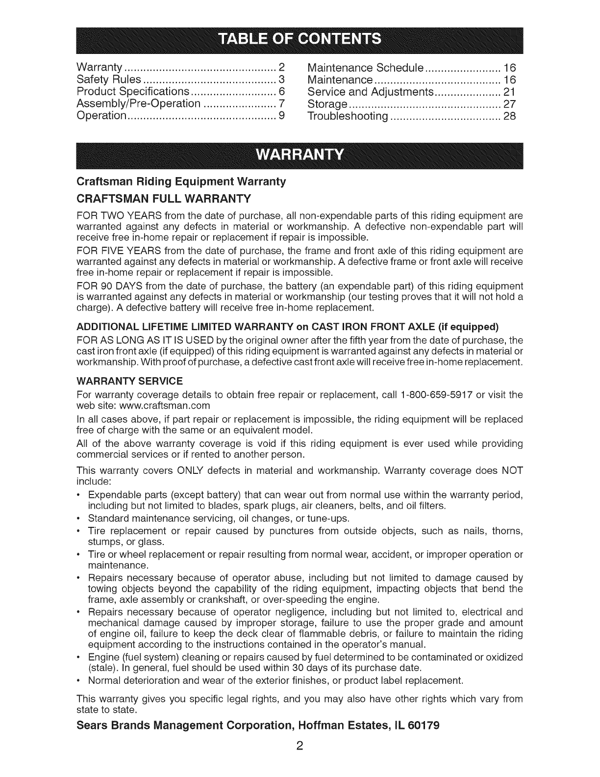 Craftsman Riding Equipment Warranty