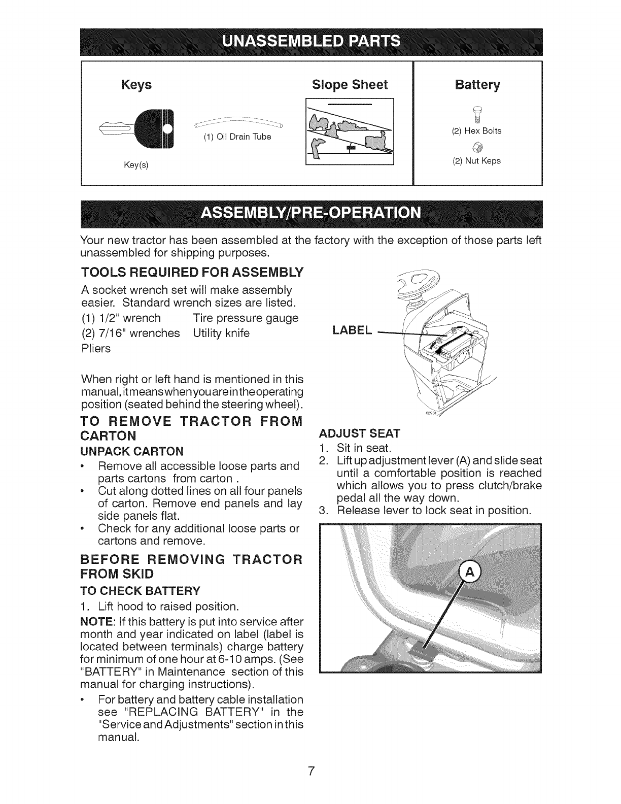 Assembly/Pre-Operation ....................... 7