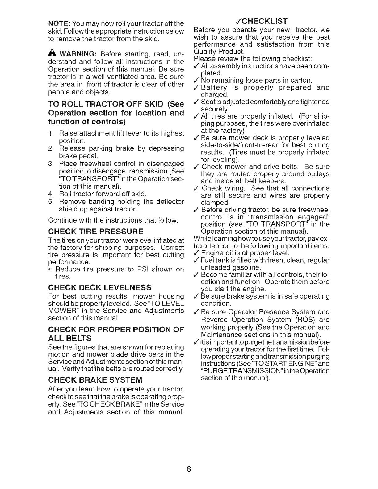 _b ARNING: To avoid serious injury, operate your tractor up and