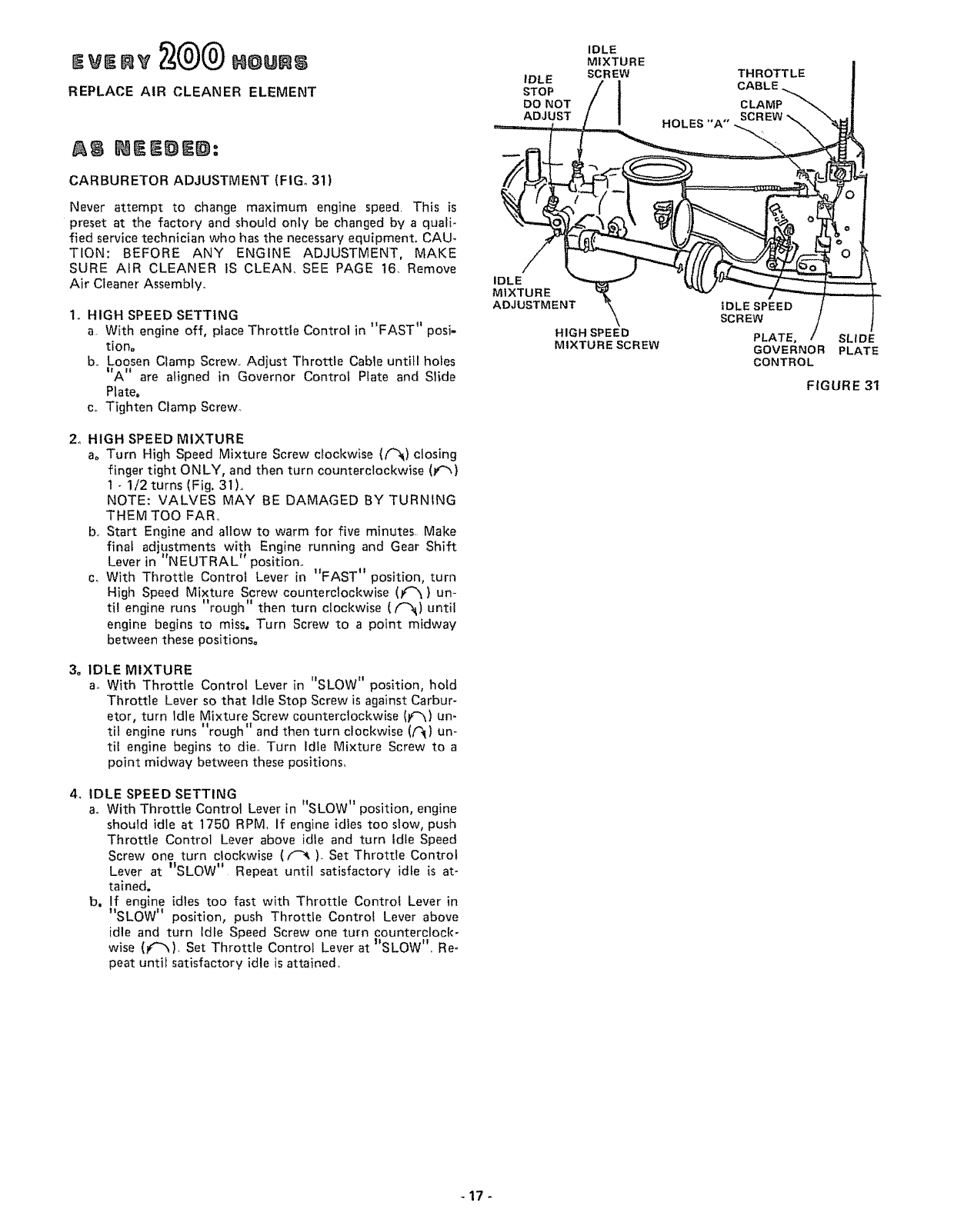 tuned up according to the operating and maintenance instructions in the owner's manual, Sears