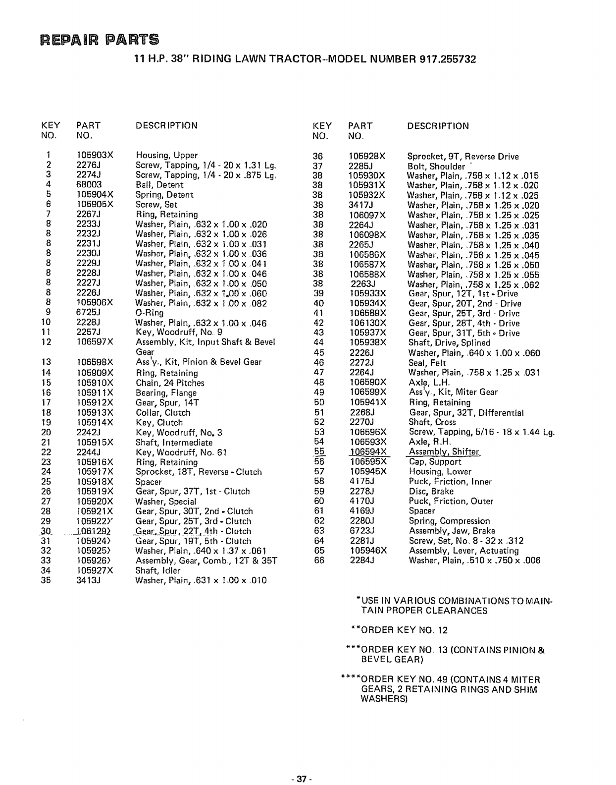 WHEN ORDERING REPAIR PARTS, ALWAYS GIVE THE