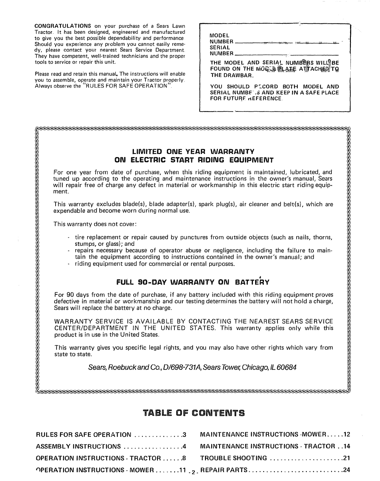 CONGRATULATIONS on your purchase of a Sears Lawn