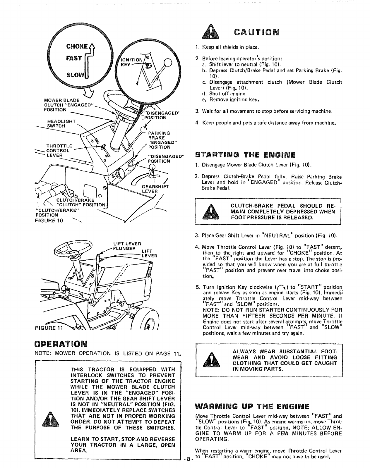 OPERATION INSrRUCTIONS - TRACTOR ...... 8
