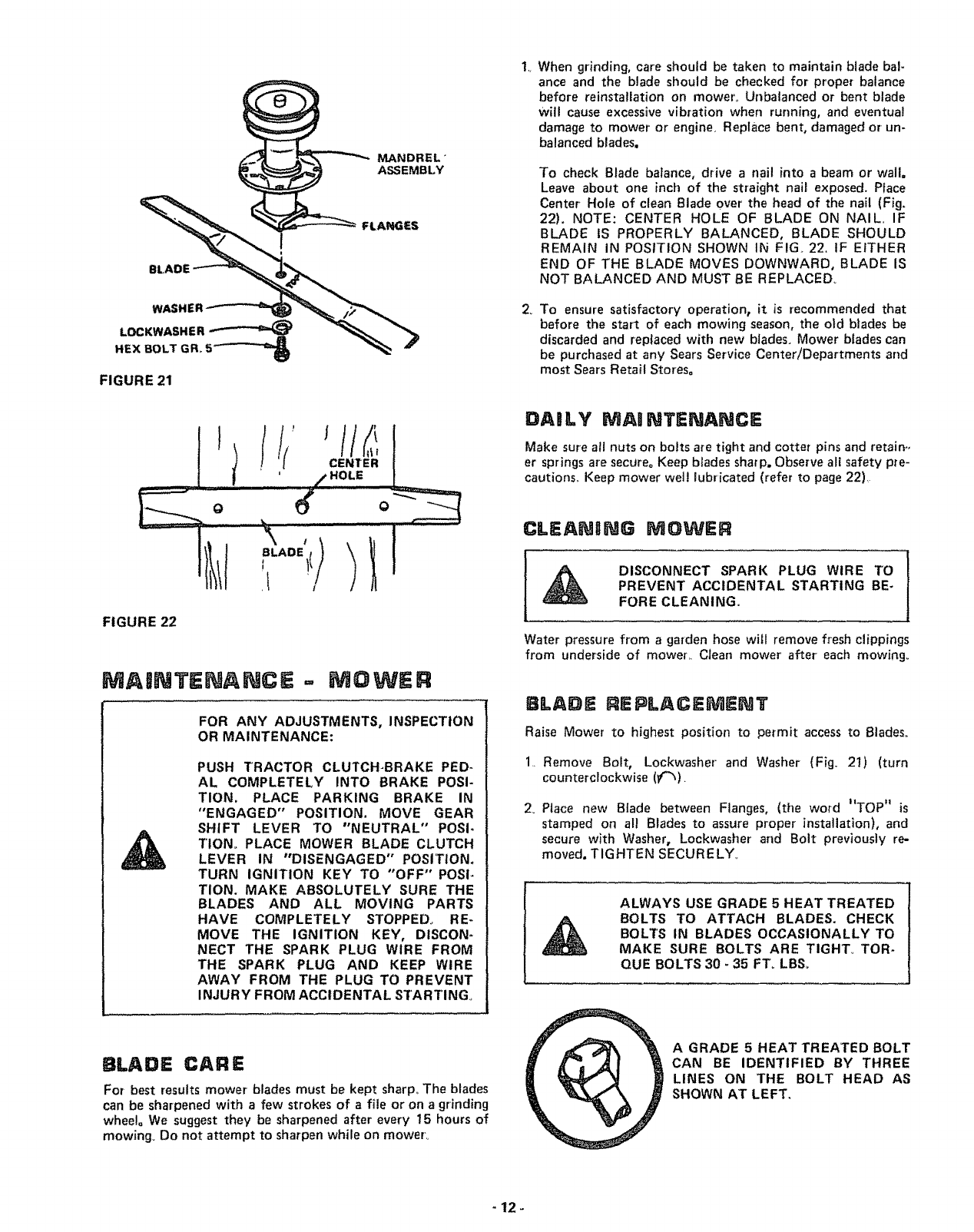 MAINTENANCE INSTRUCTIONS-MOWER ..... 12