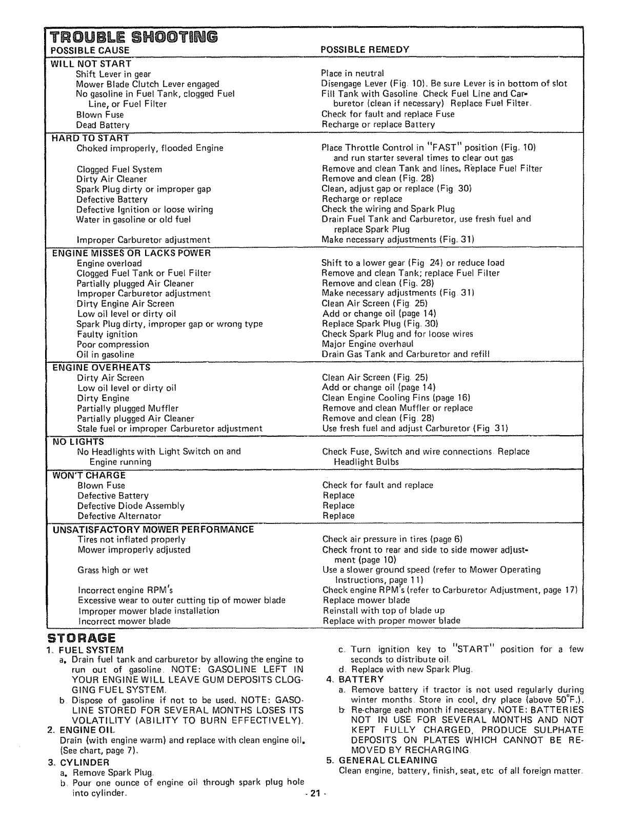 TROUBLE SHOOTING ..................... 21