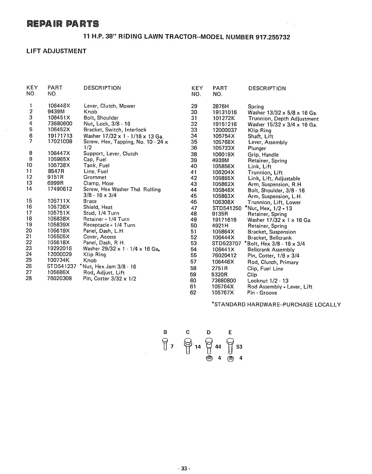 to the Drawbar. Always mention the Model Number when
