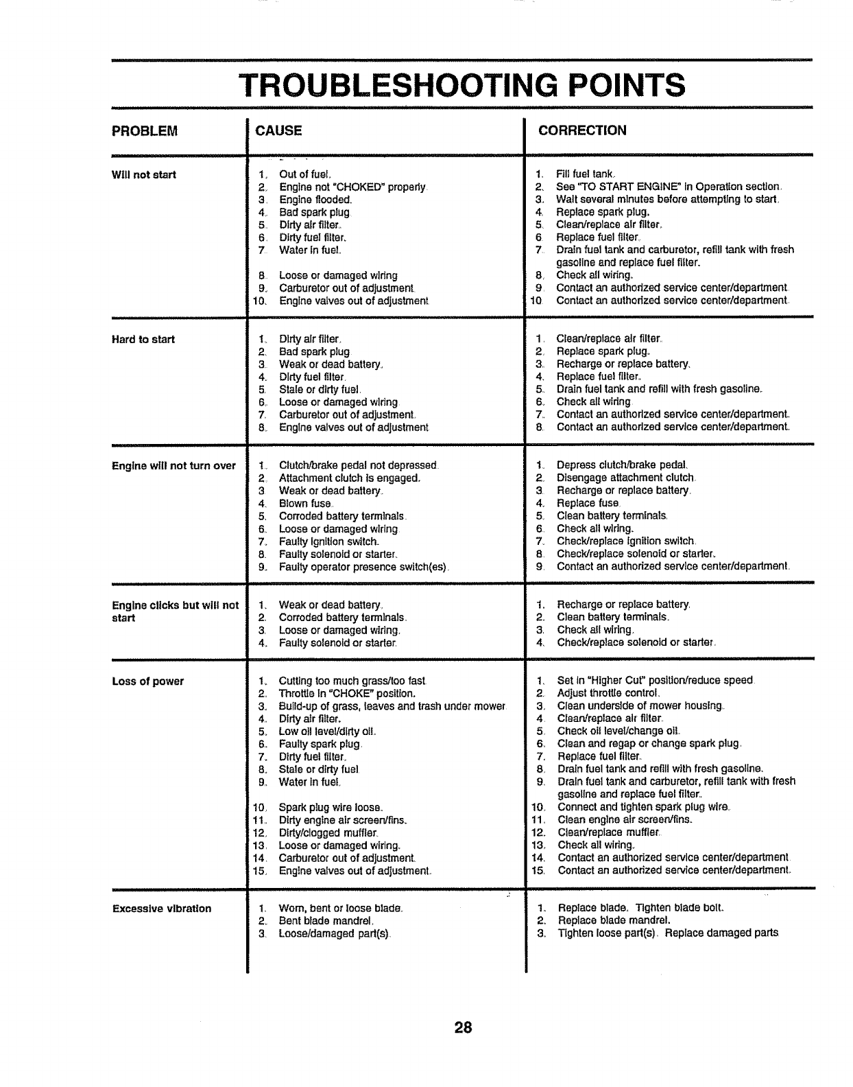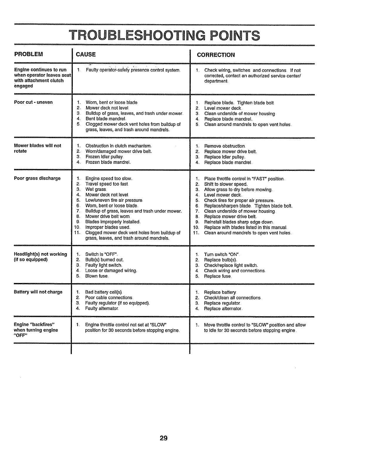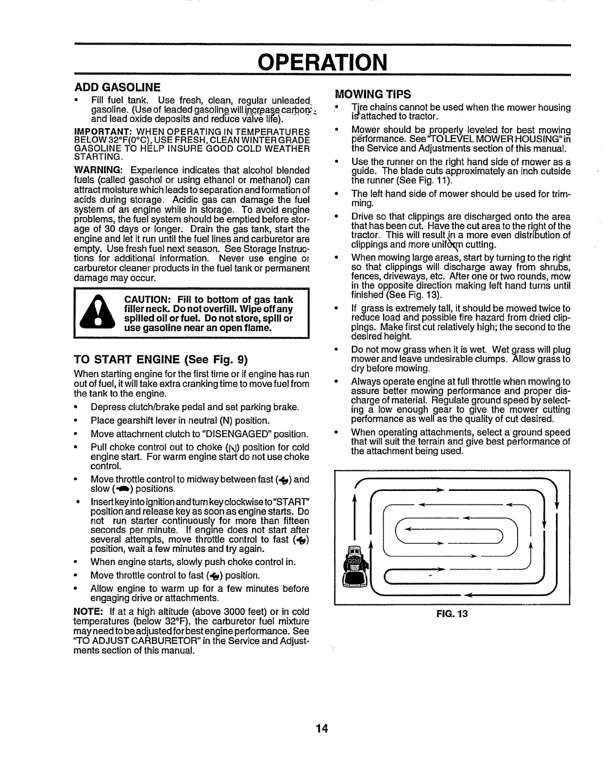 • Mow only in daylight or good artificial light°