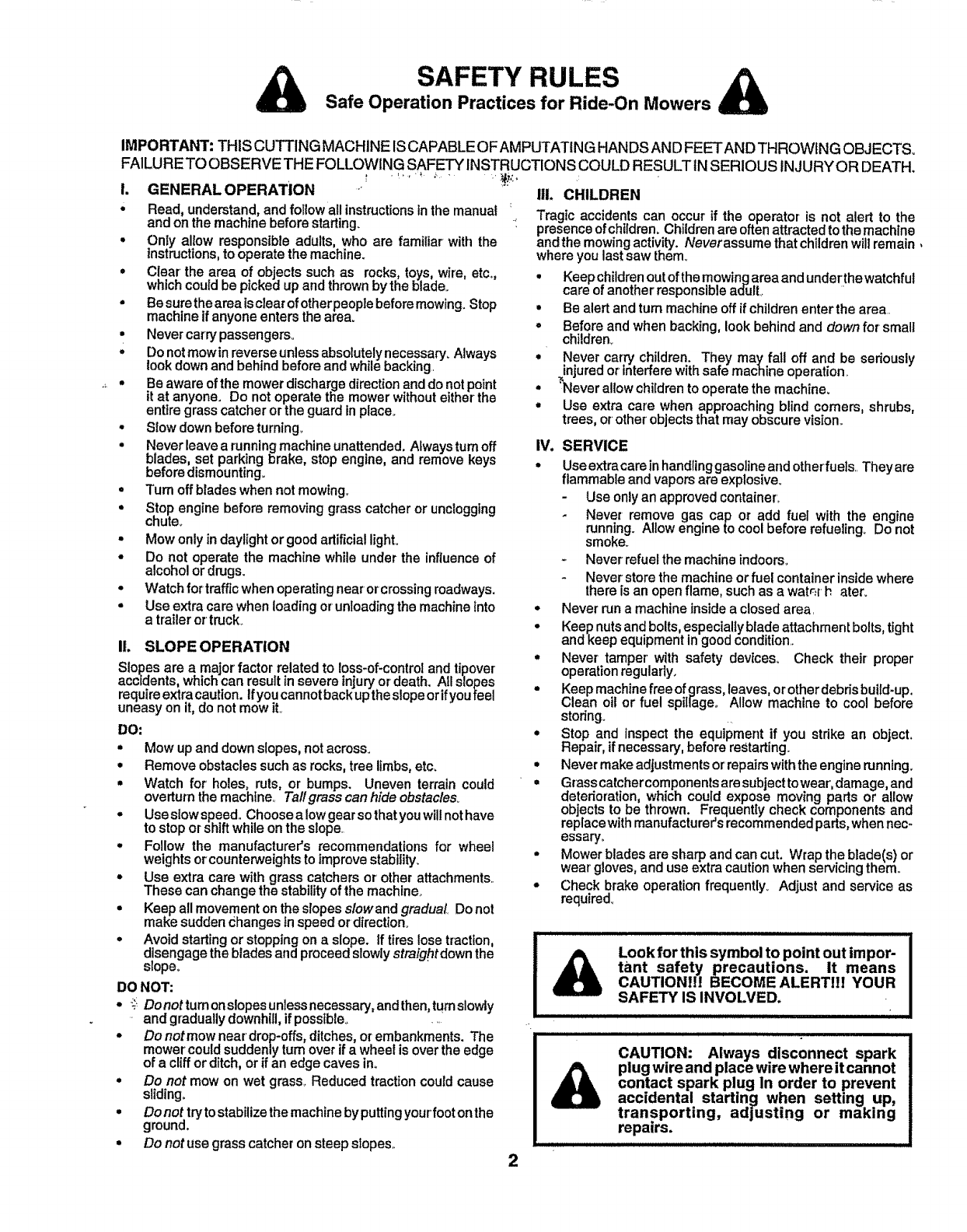 it at anyone. Do not operate the mower without either the