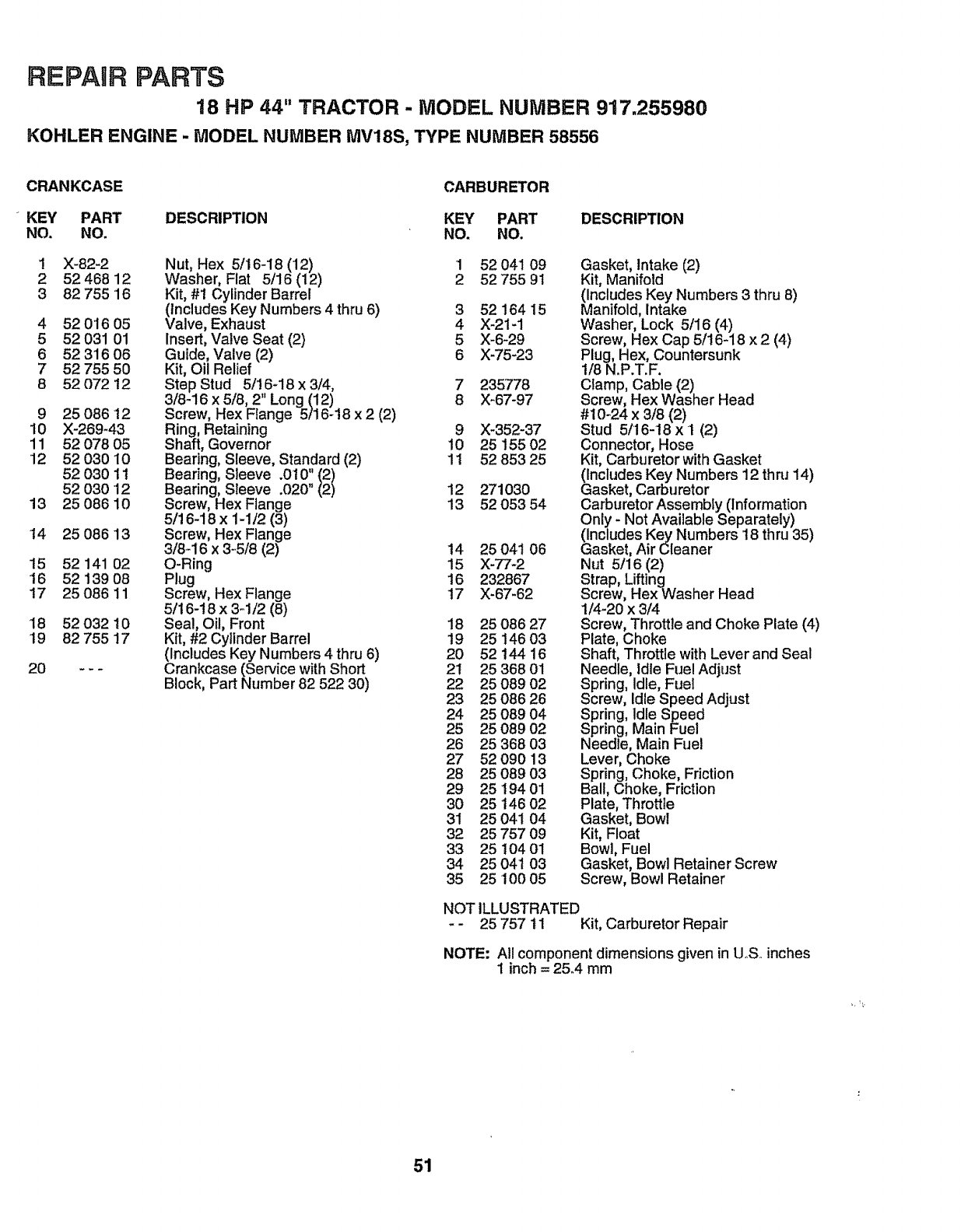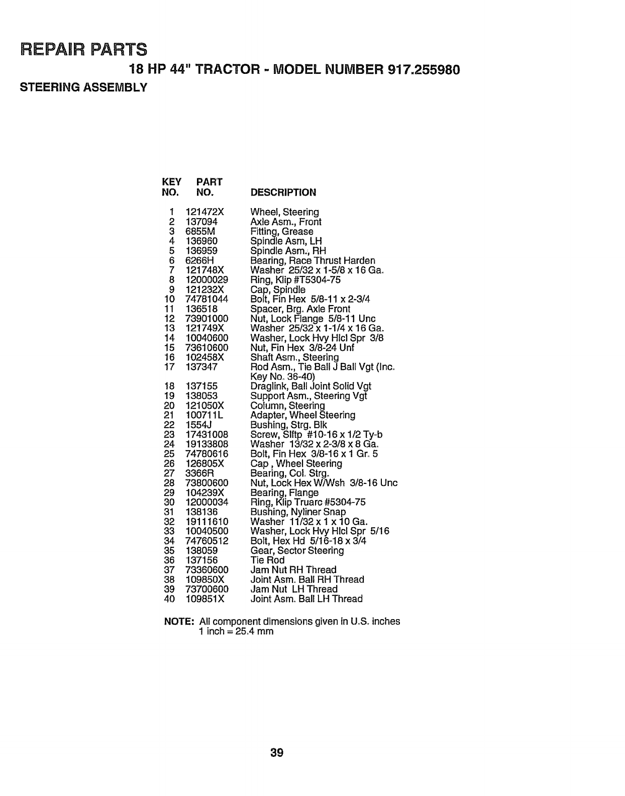 WHEN ORDERING REPAIR PARTS, ALWAYS GIVE THE