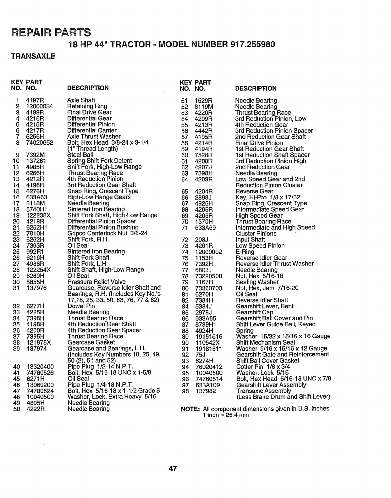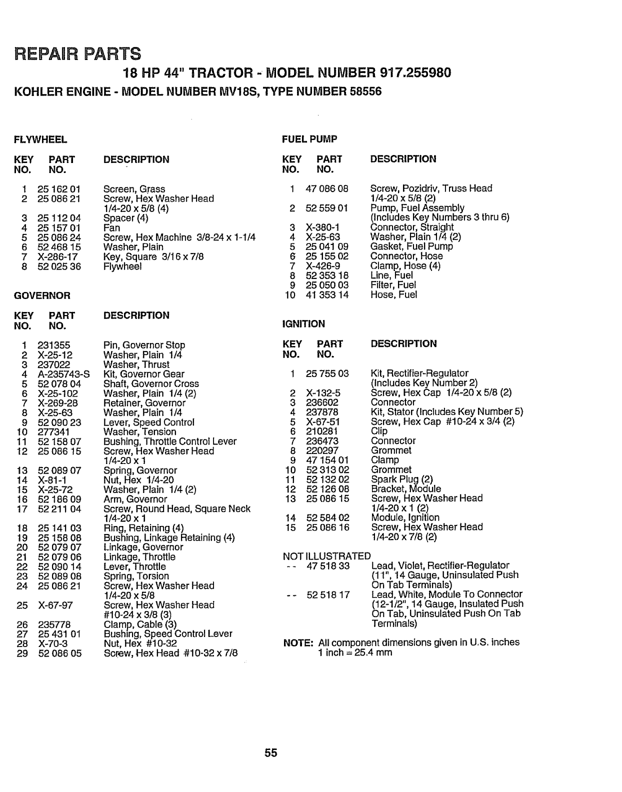 -MODEL NUMBER - 917.255980