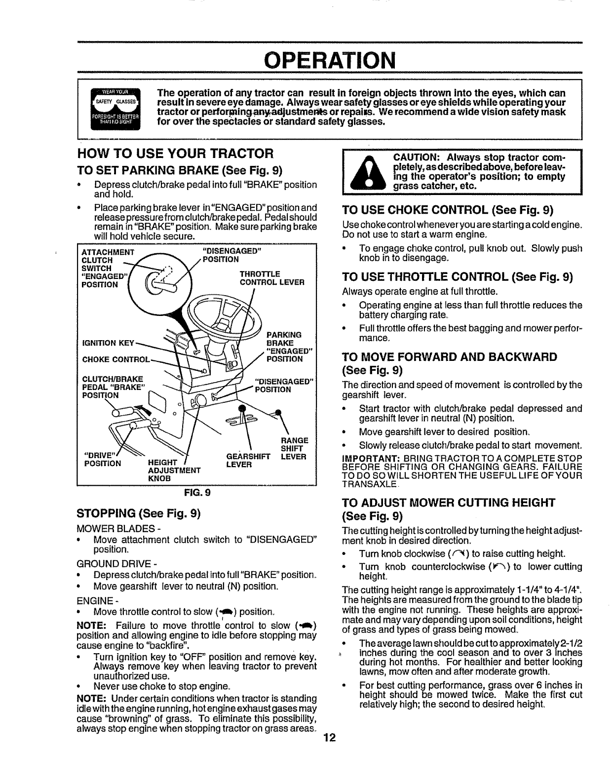 blades, set parking brake, stop engine and remove keys