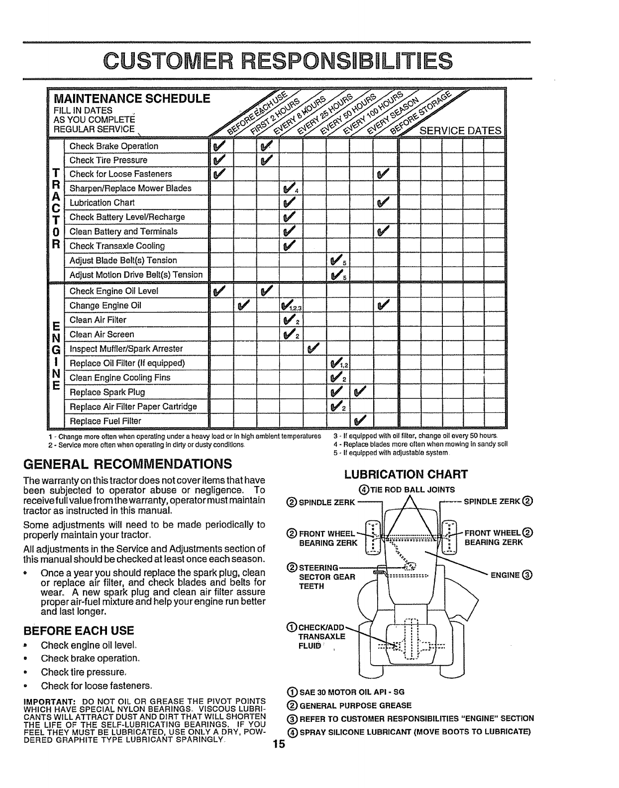 Each tractor has its own model number° Each engine has
