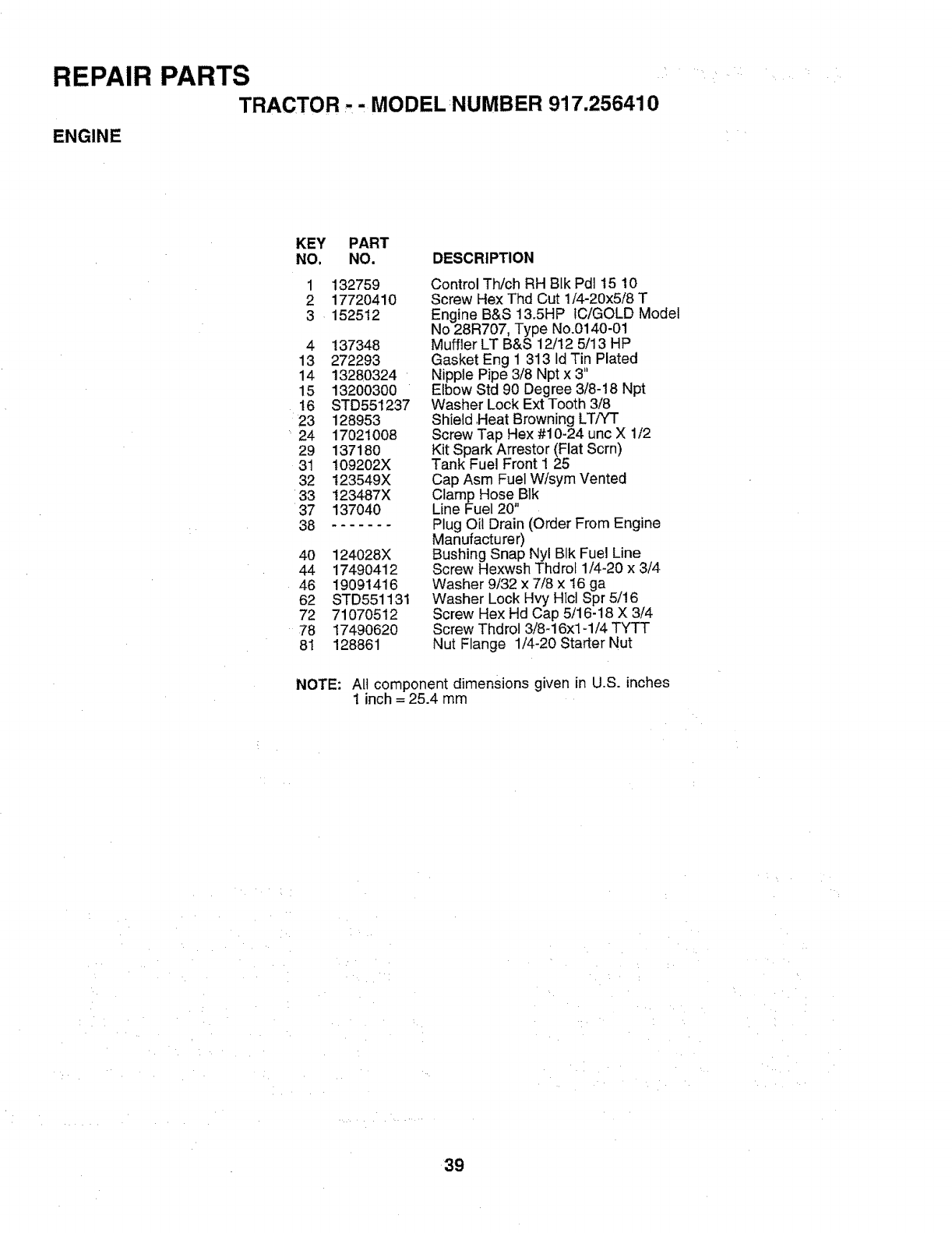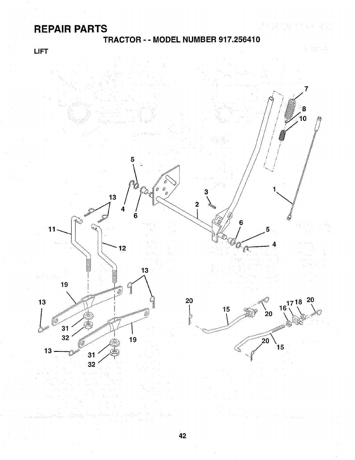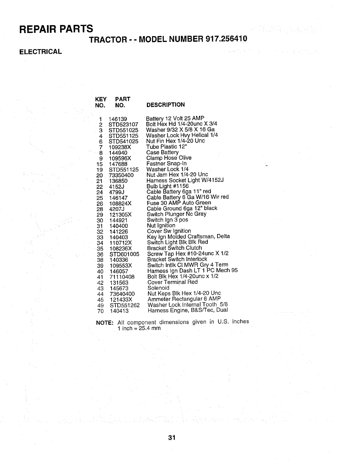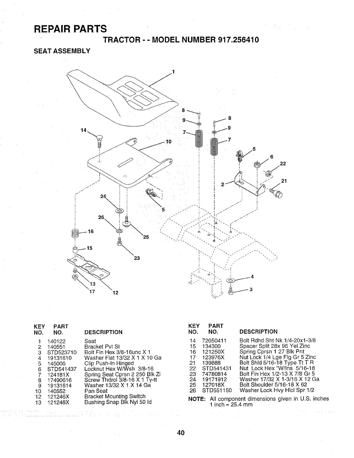 User Manual: Craftsman 917256410 917256410 CRAFTSMAN TRACTOR - Manuals and Guides View the owners manual for your CRAFTSMAN TRACTOR #917256410. Home:Lawn & Garden Parts:Craftsman Parts:Craftsman TRACTOR Manual