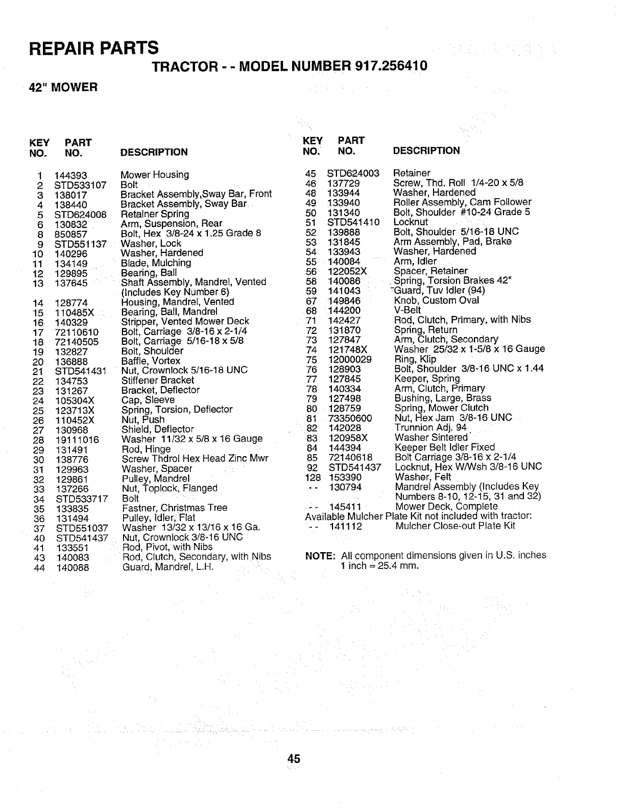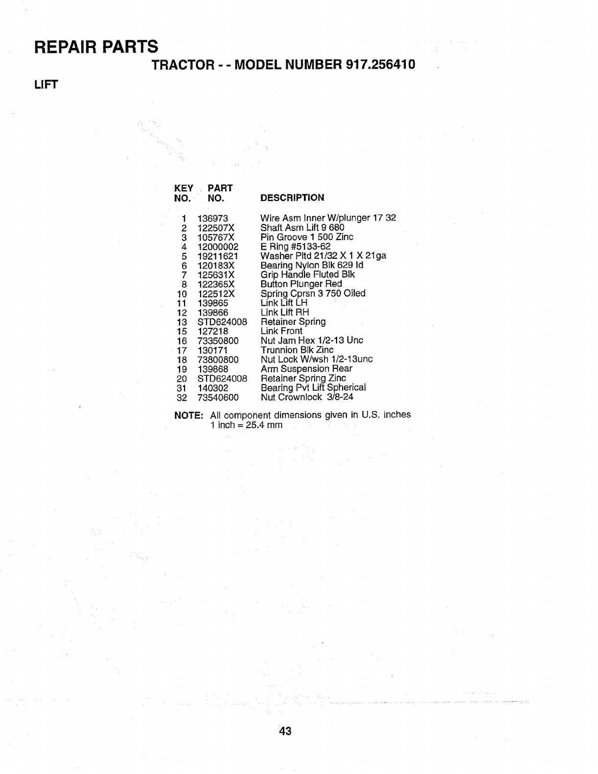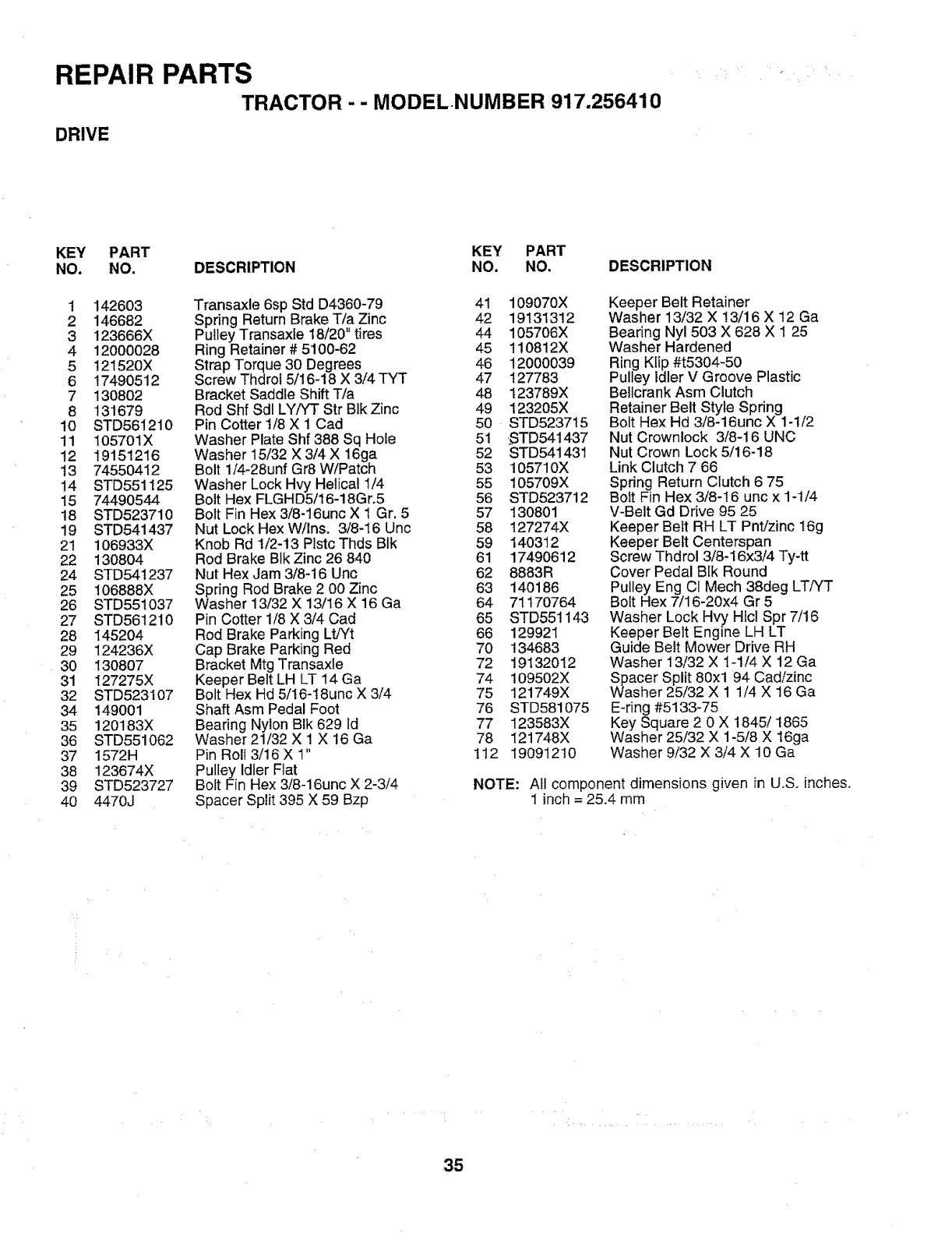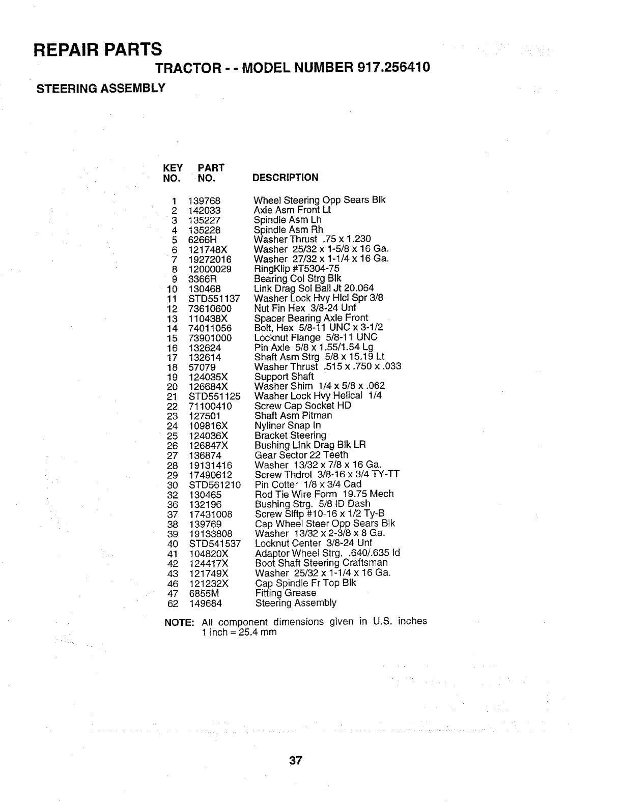 User Manual: Craftsman 917256410 917256410 CRAFTSMAN TRACTOR - Manuals and Guides View the owners manual for your CRAFTSMAN TRACTOR #917256410. Home:Lawn & Garden Parts:Craftsman Parts:Craftsman TRACTOR Manual