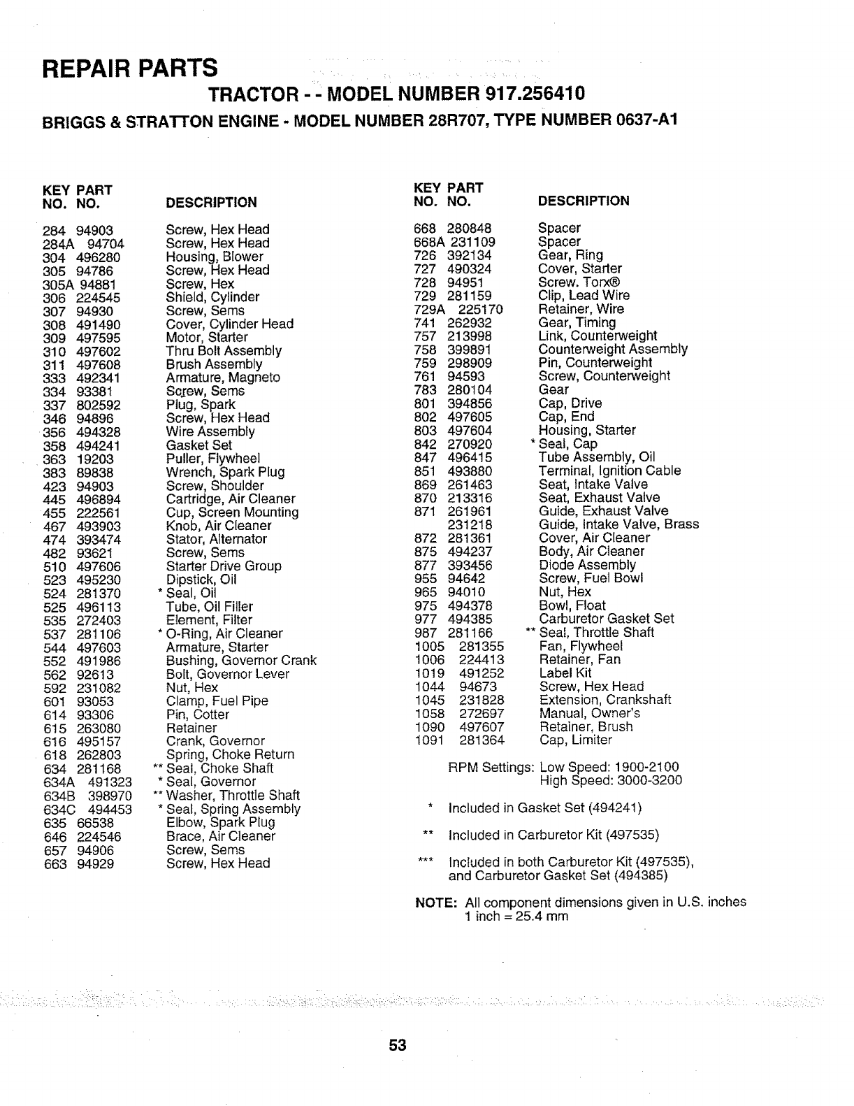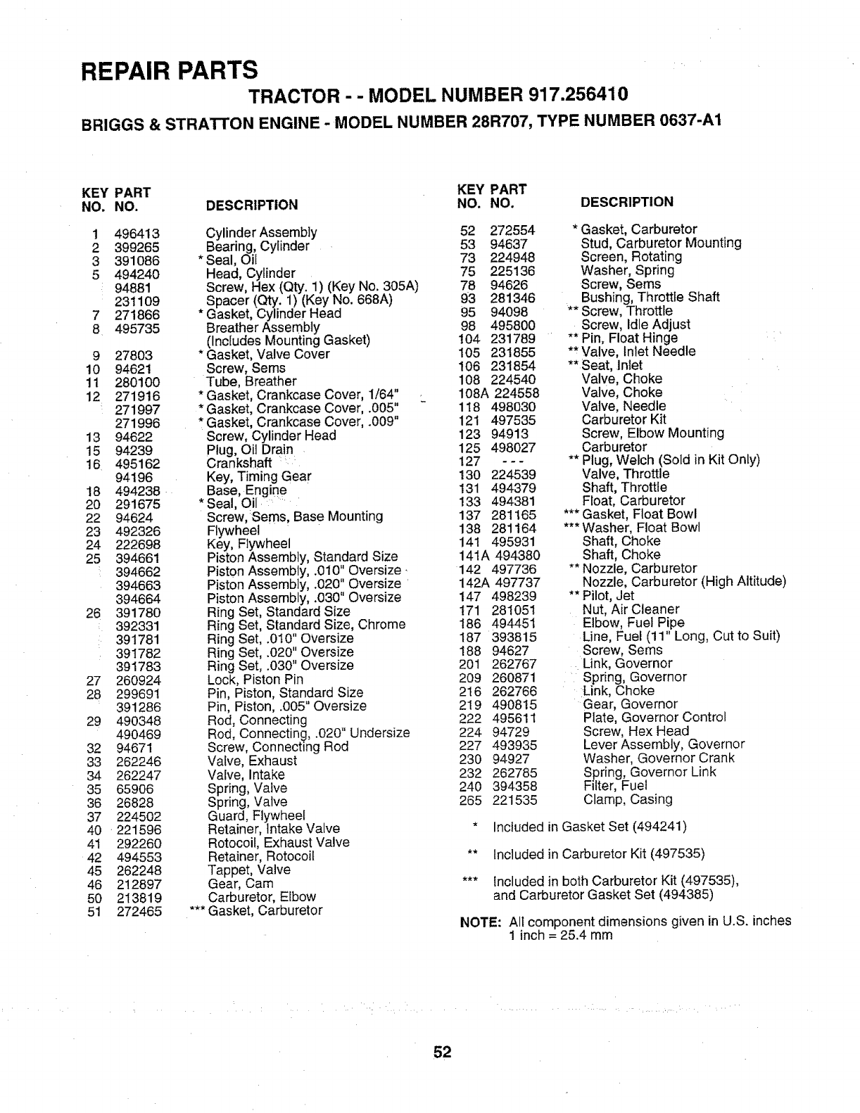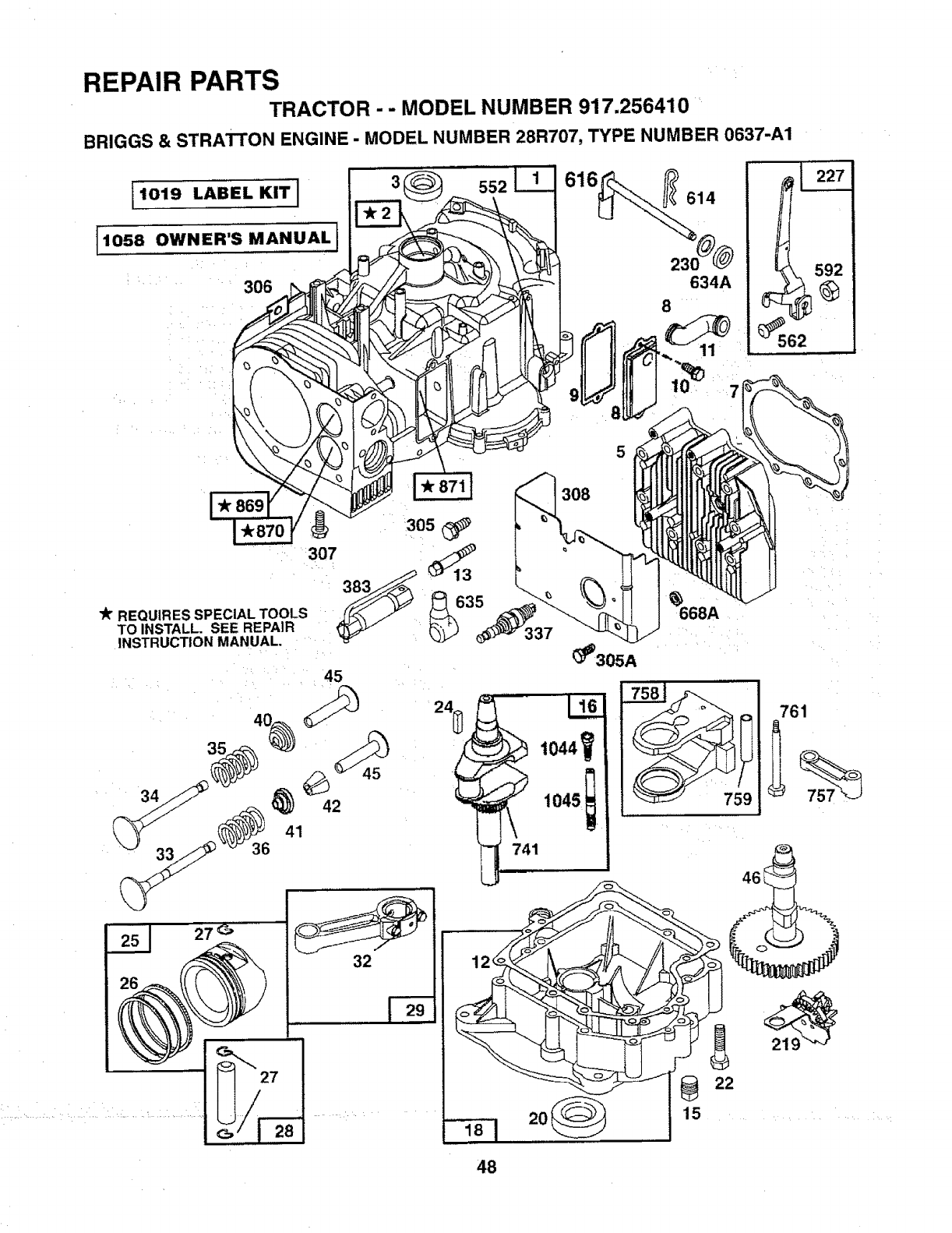 •ENGINE MODEL NO. -28R707, TYPE NO. 0637-A1