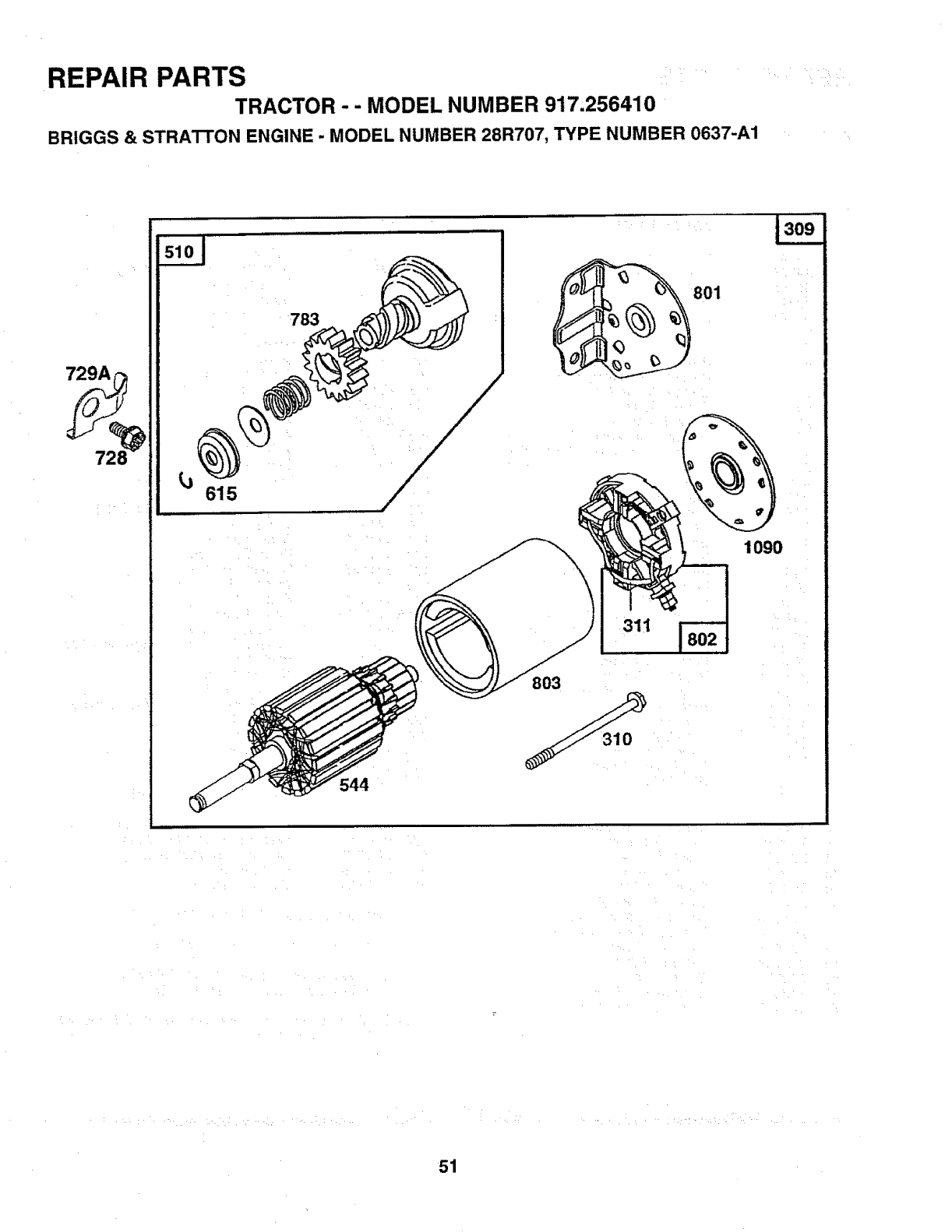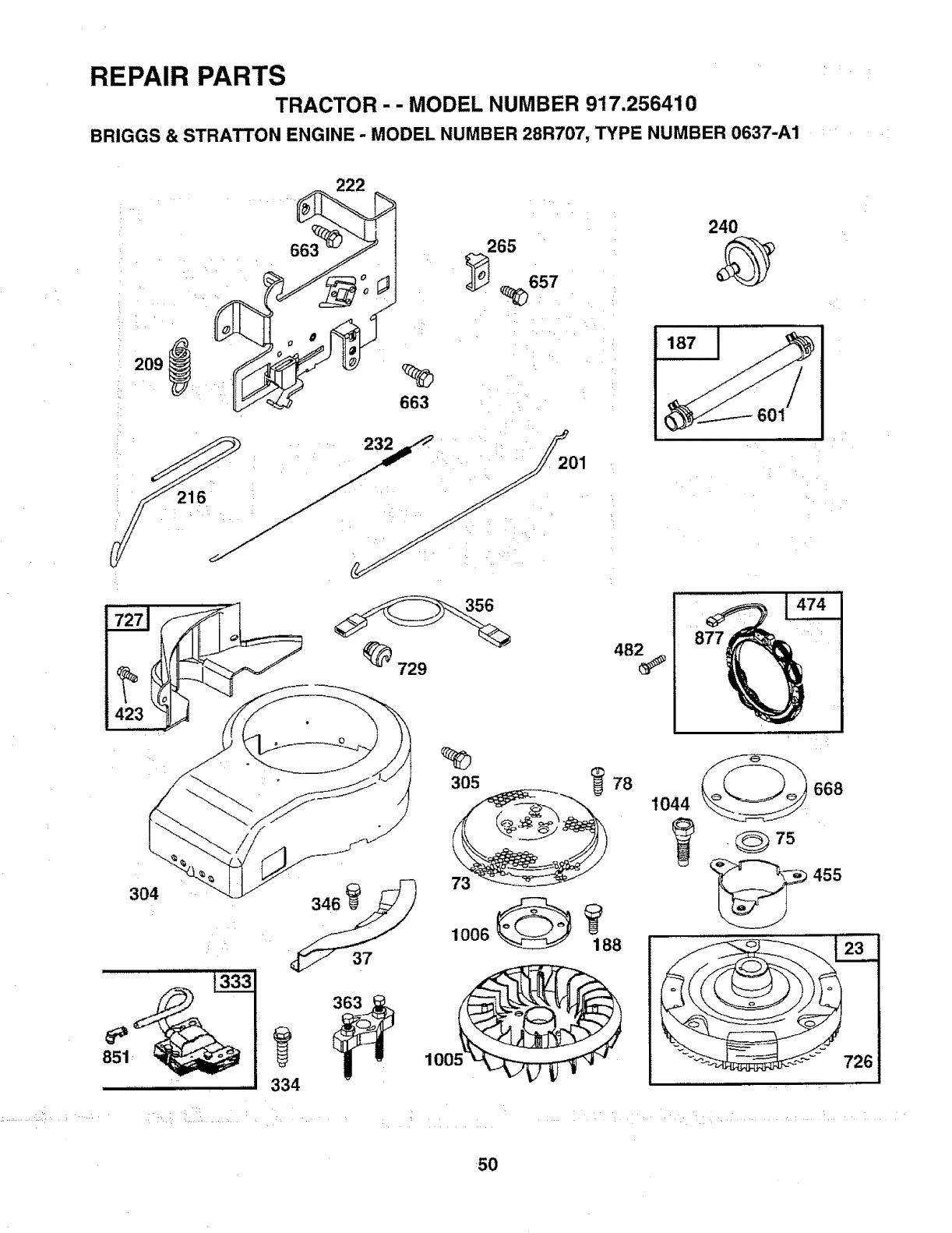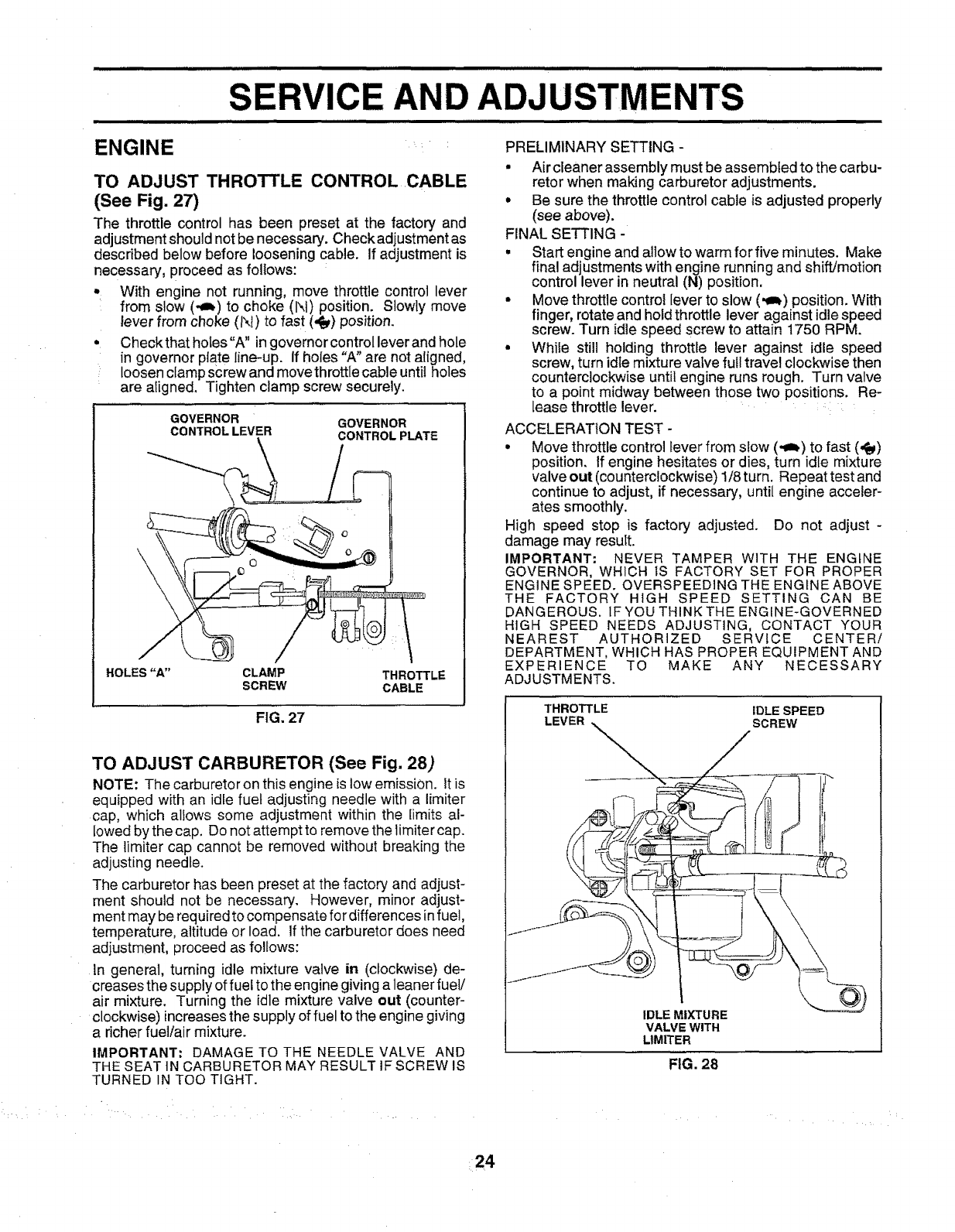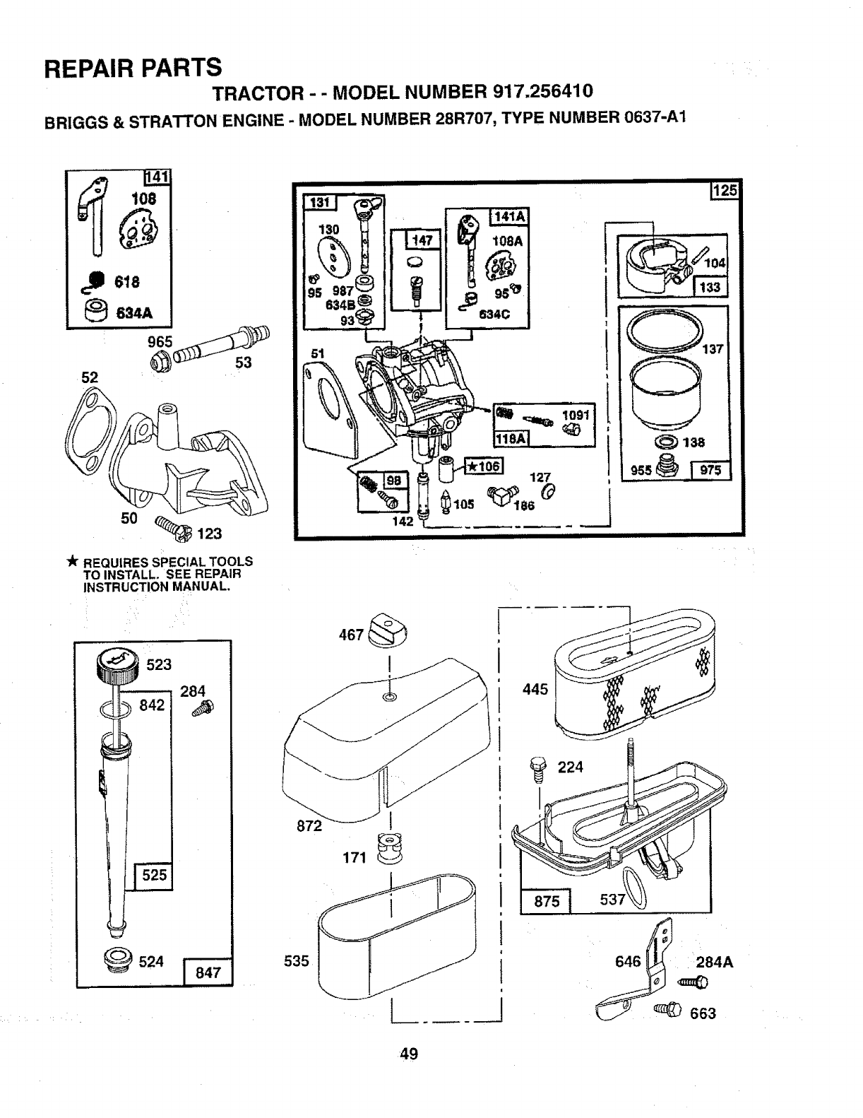 •ENGINE MODEL NO. -28R707, TYPE NO. 0637-A1