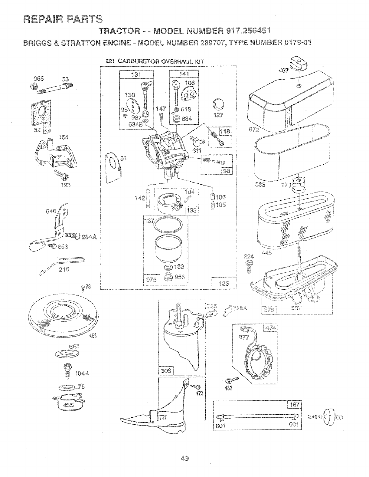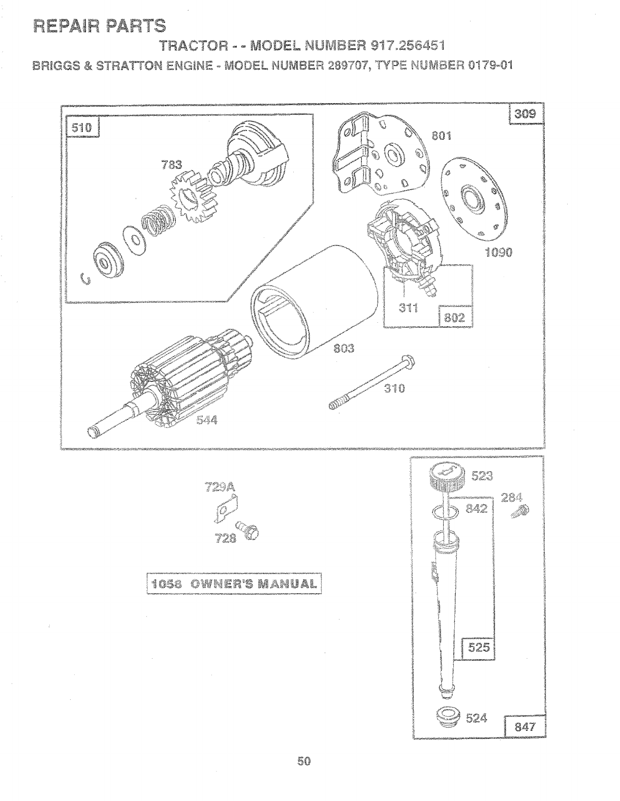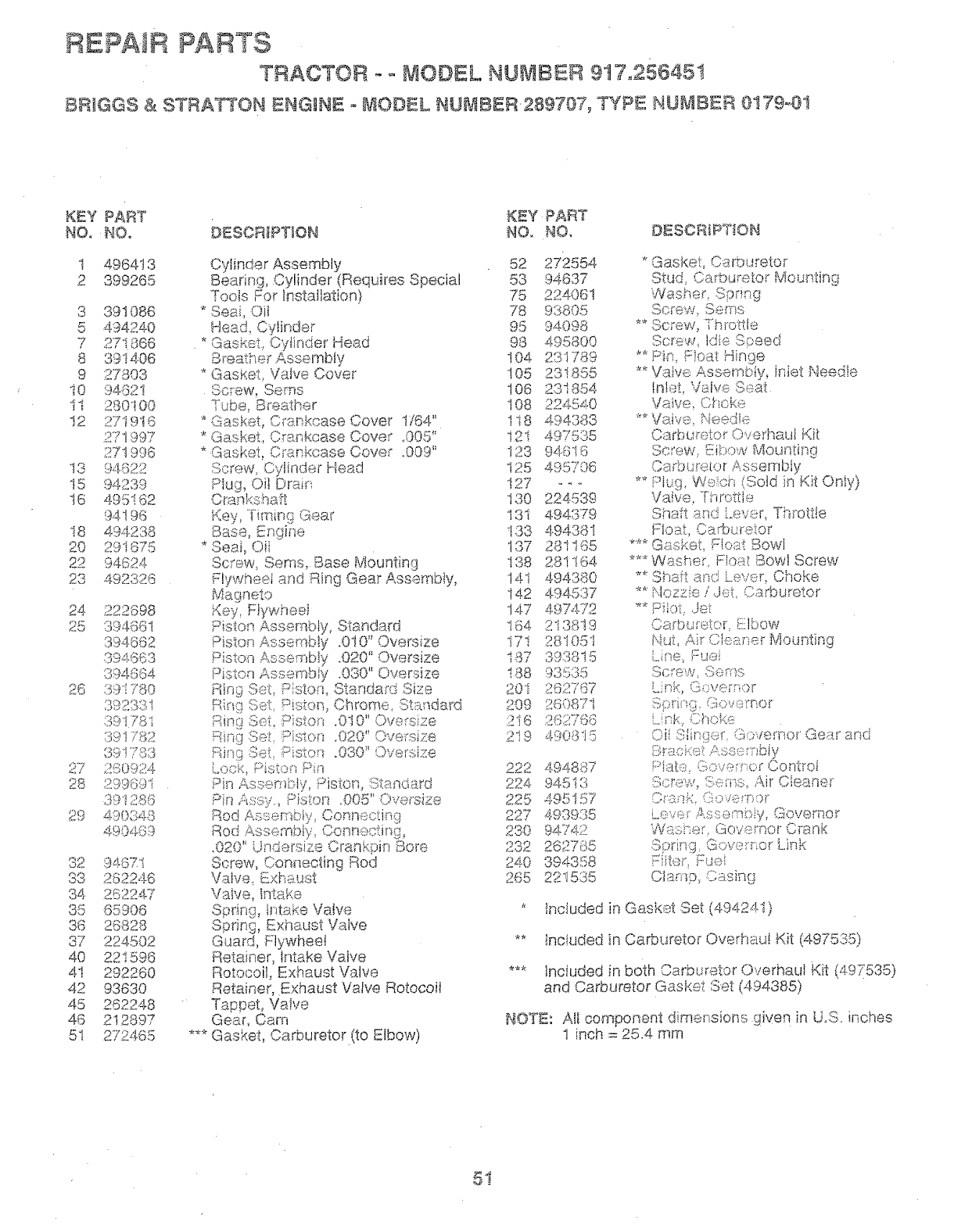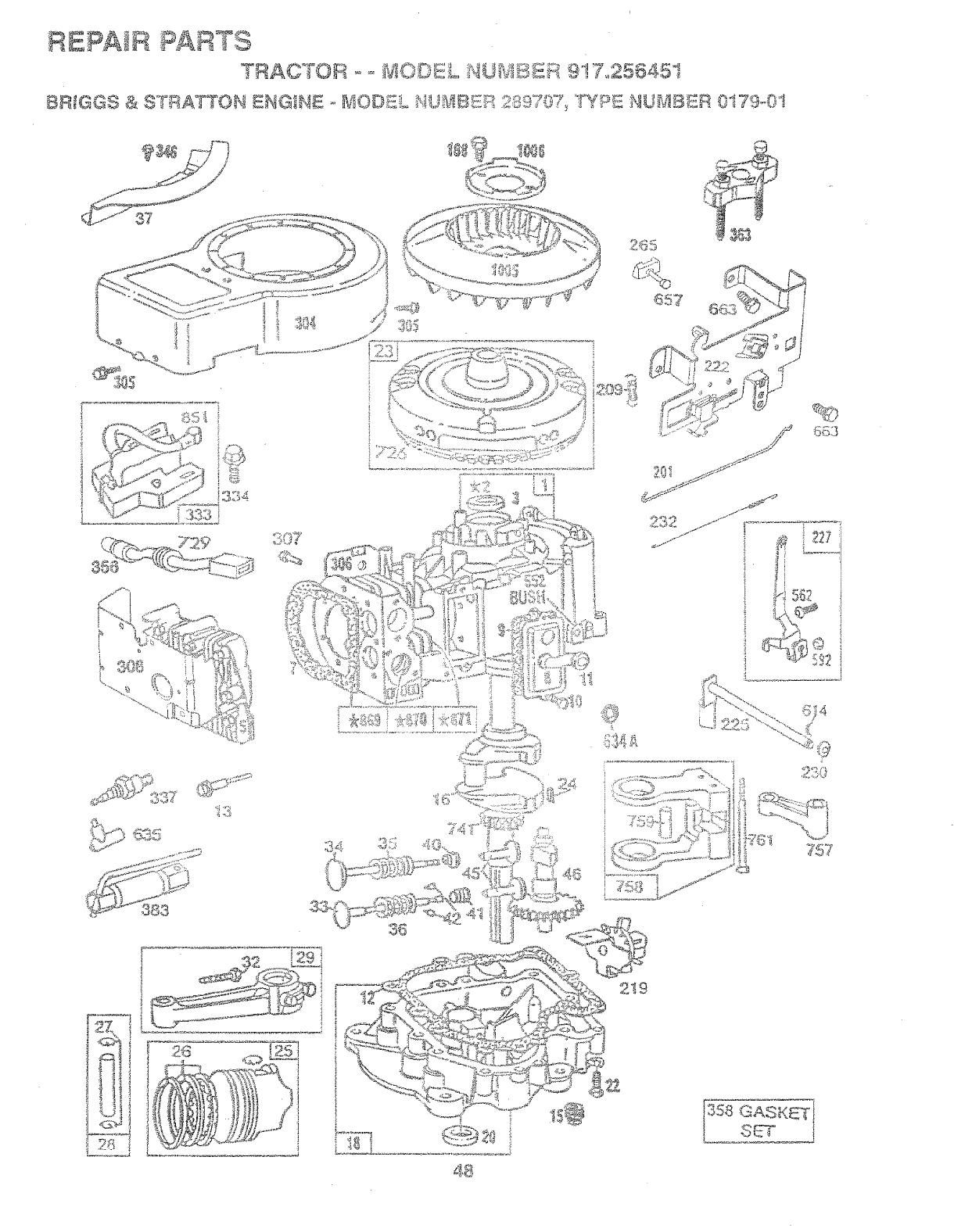 ENGINE MODEL NO. * 289707, TYPE NO, 0179-0t