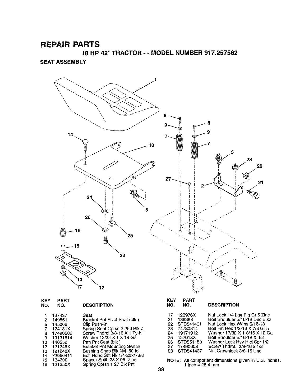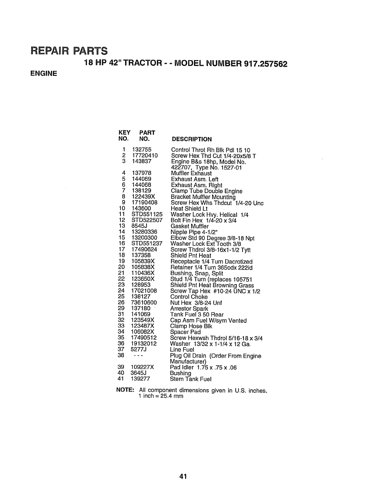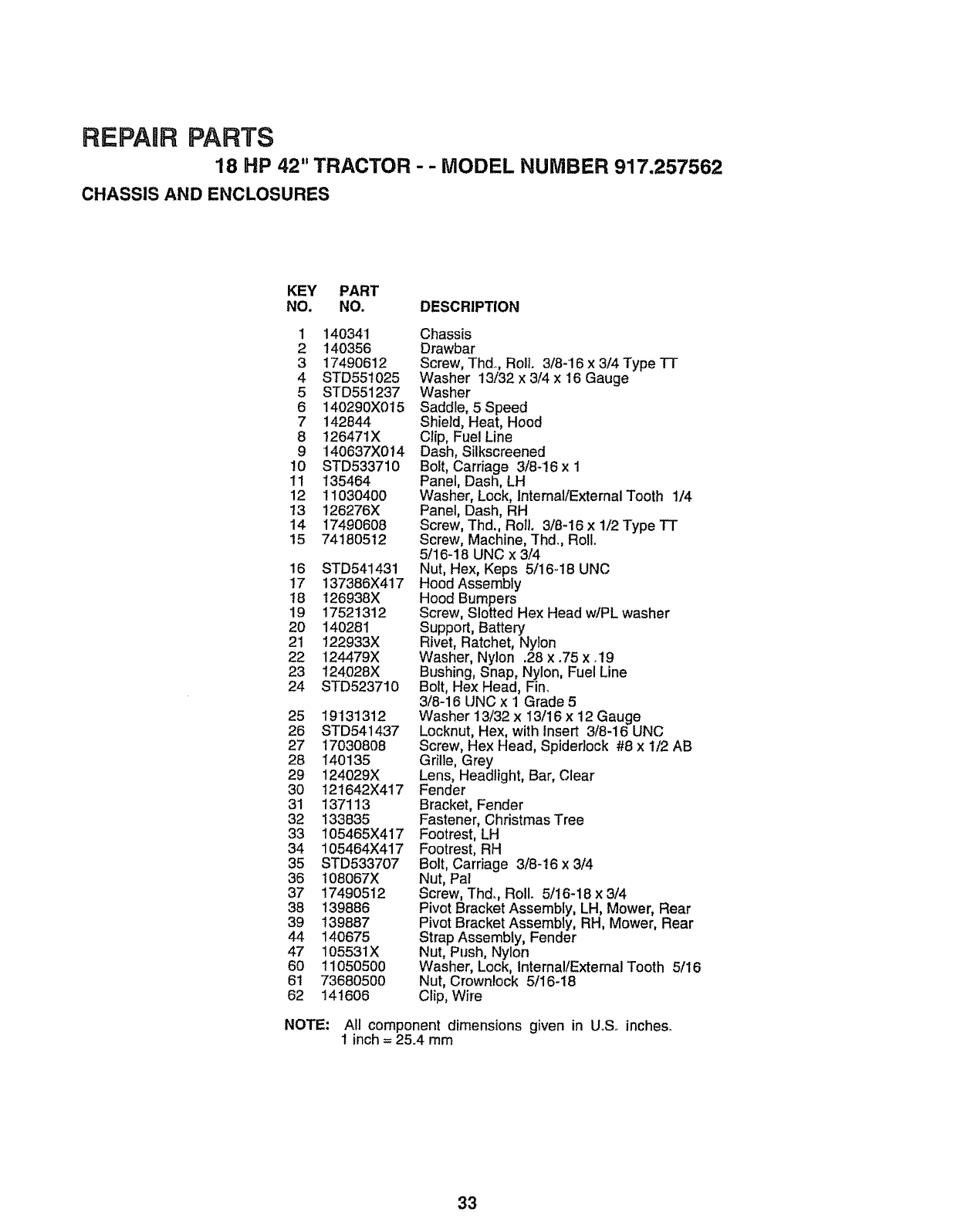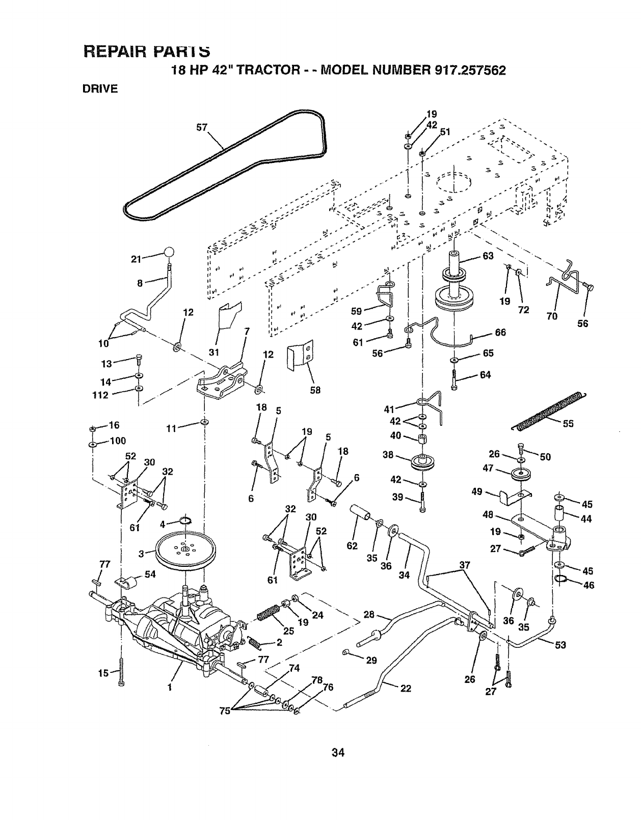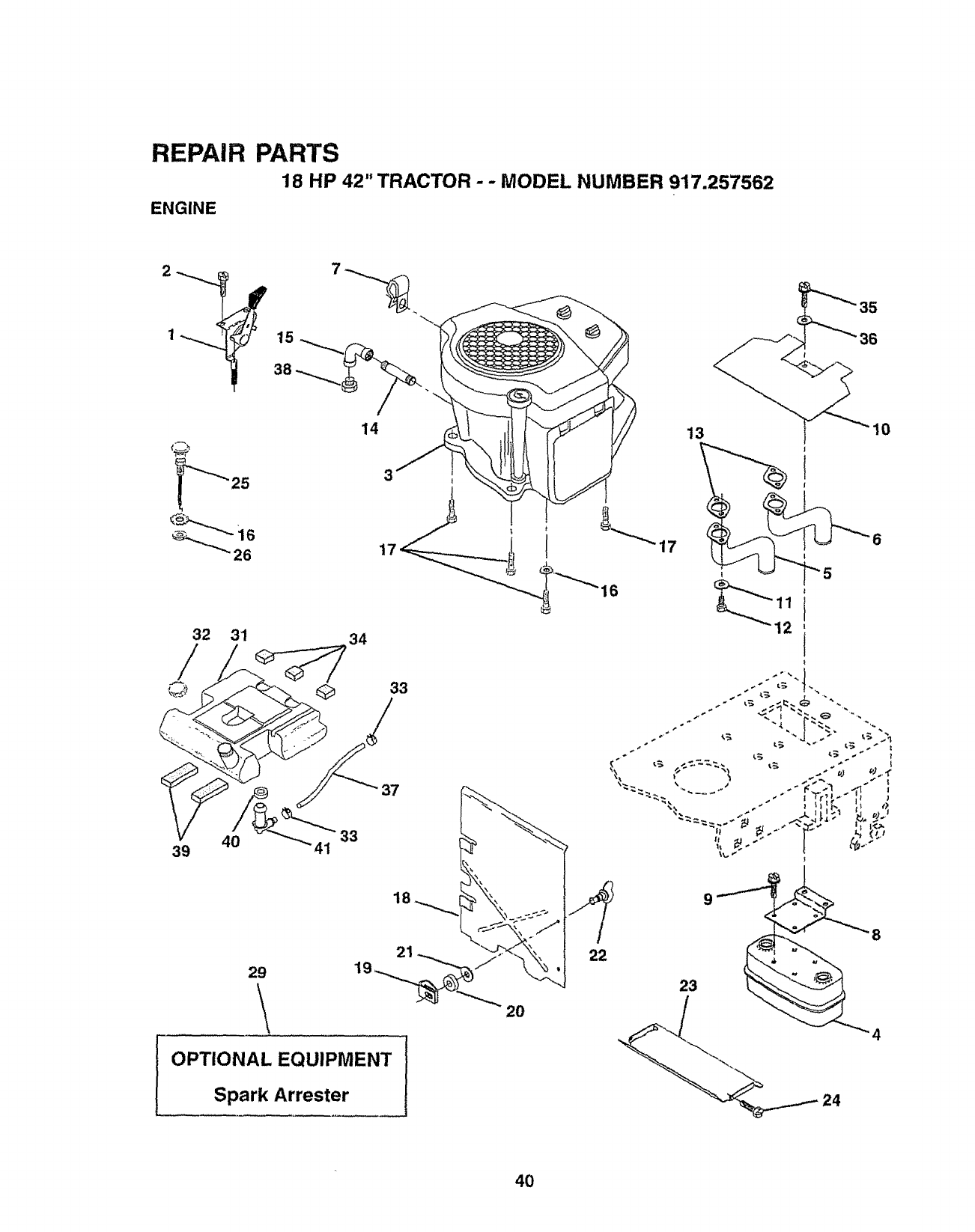 User Manual: Craftsman 917257562 917257562 CRAFTSMAN TRACTOR - Manuals and Guides View the owners manual for your CRAFTSMAN TRACTOR #917257562. Home:Lawn & Garden Parts:Craftsman Parts:Craftsman TRACTOR Manual