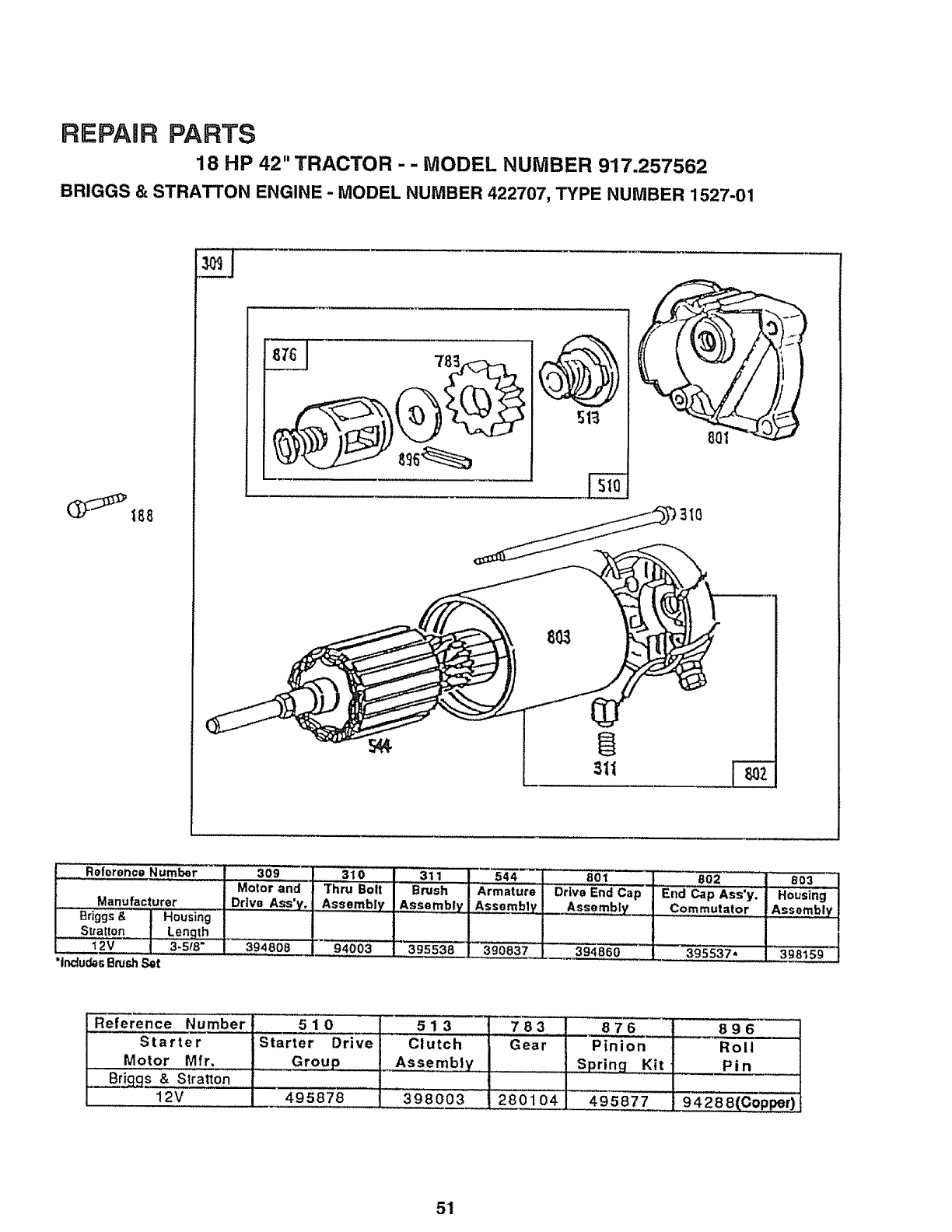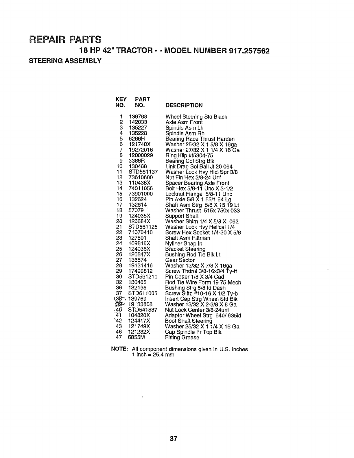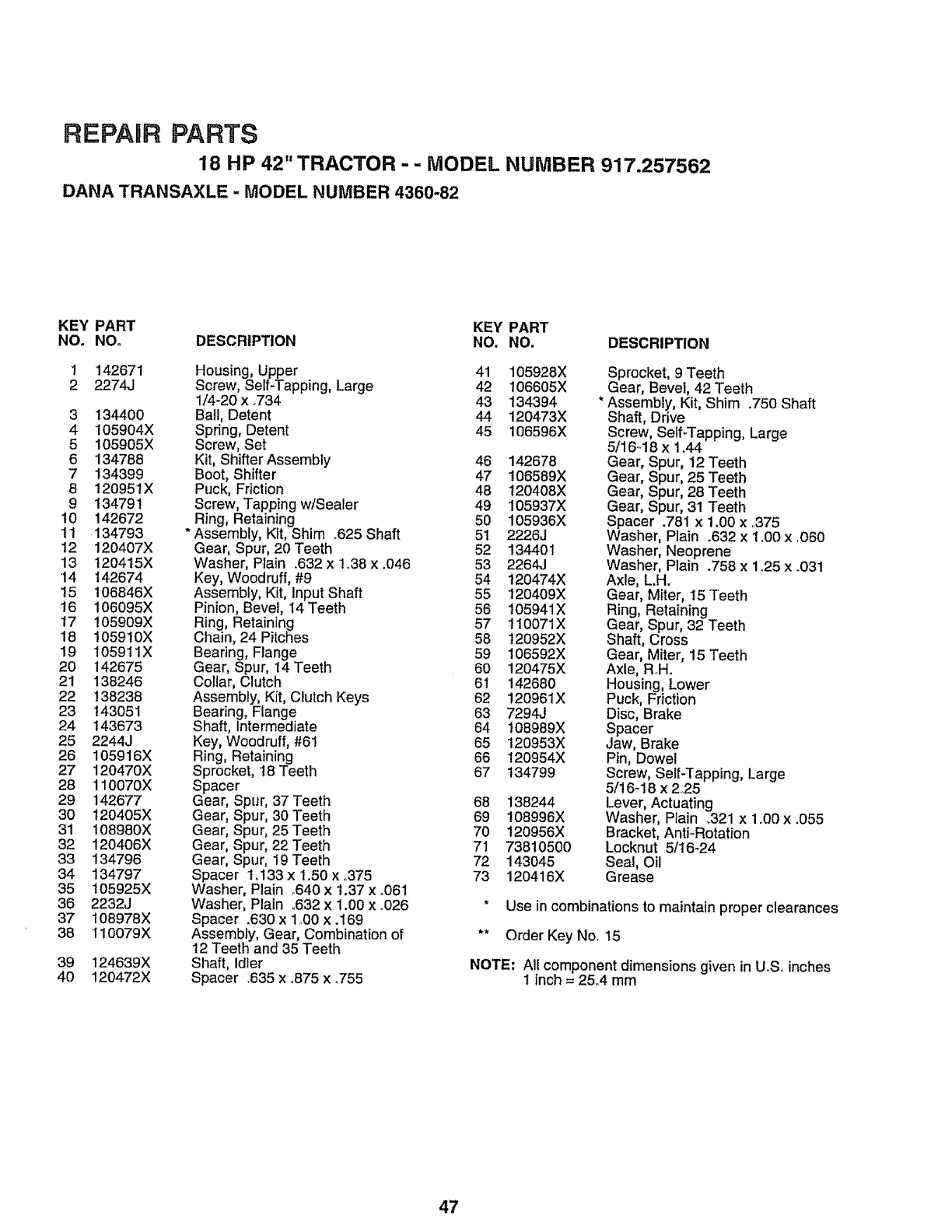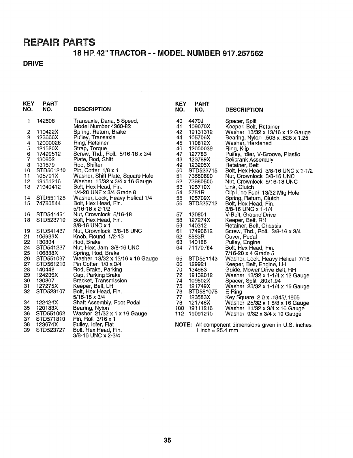 User Manual: Craftsman 917257562 917257562 CRAFTSMAN TRACTOR - Manuals and Guides View the owners manual for your CRAFTSMAN TRACTOR #917257562. Home:Lawn & Garden Parts:Craftsman Parts:Craftsman TRACTOR Manual