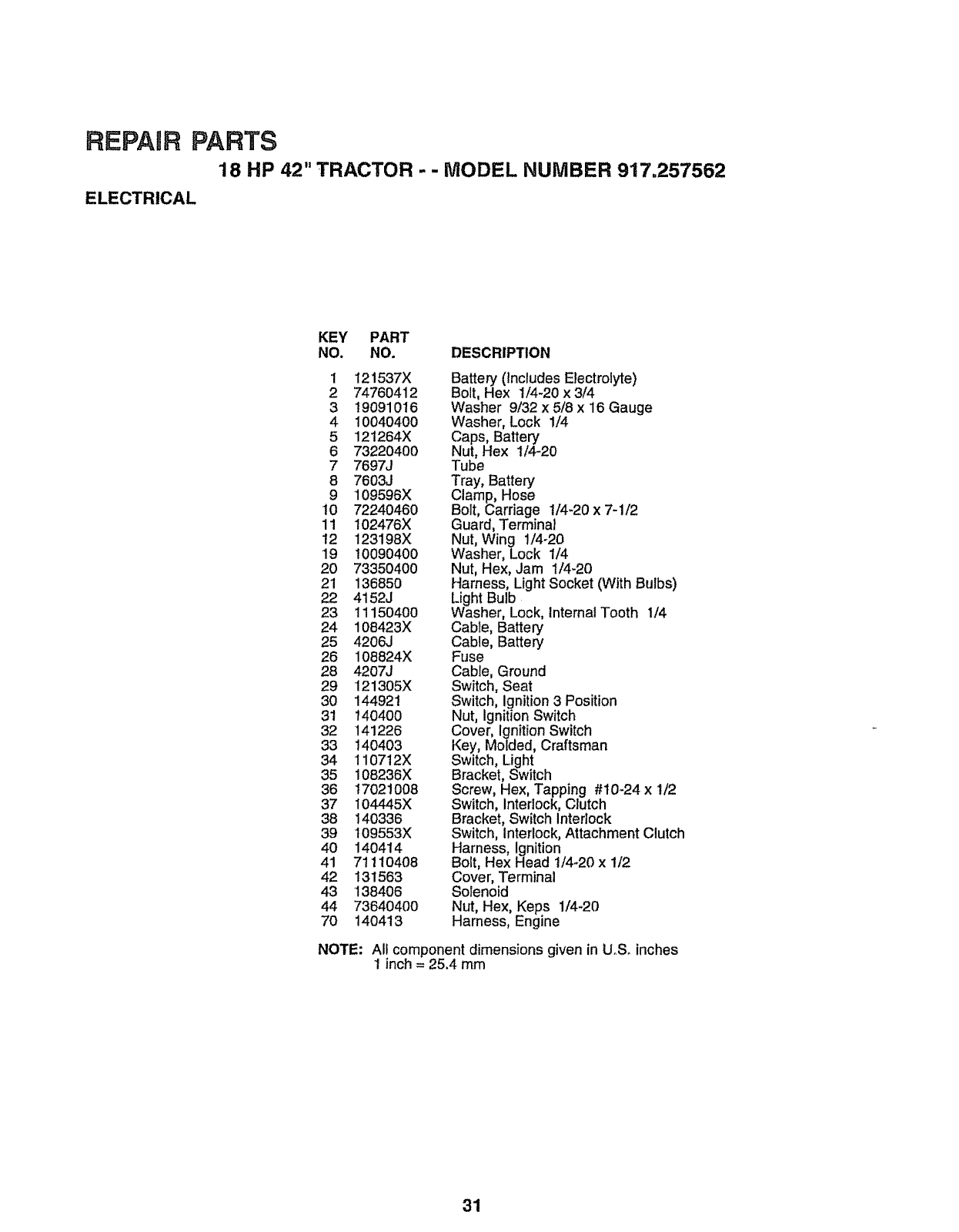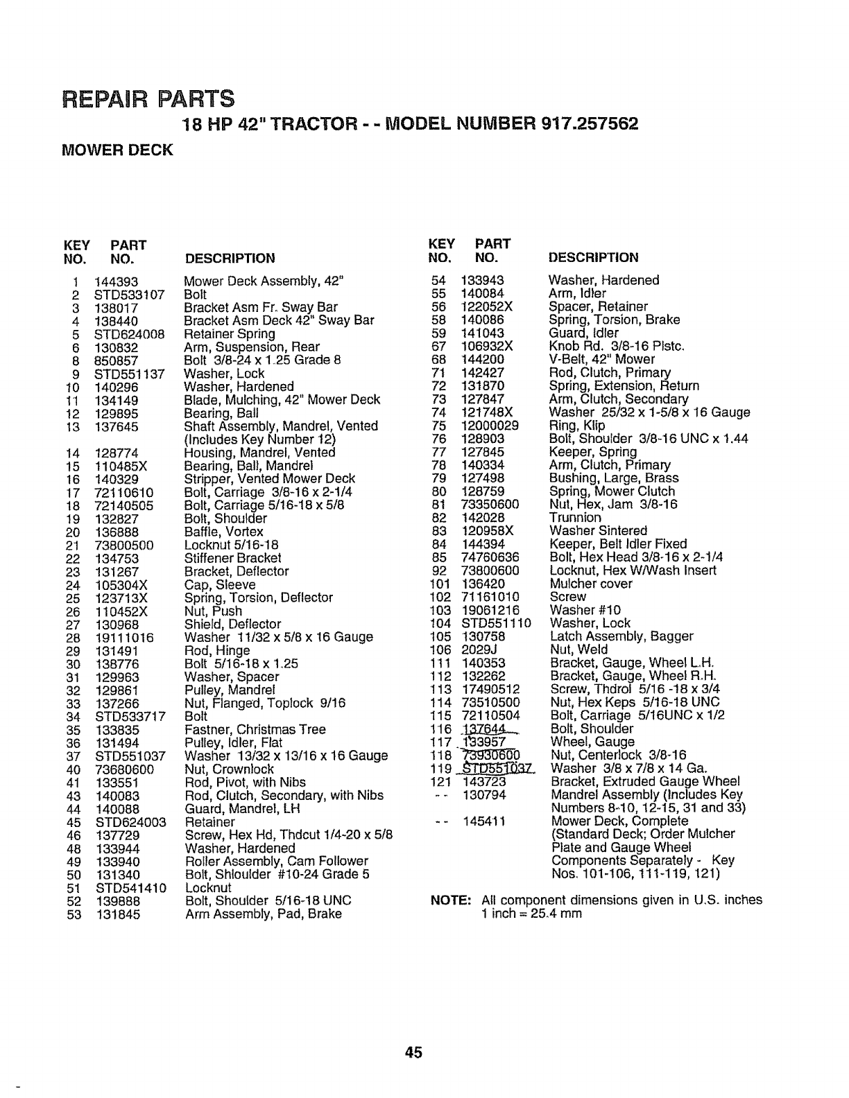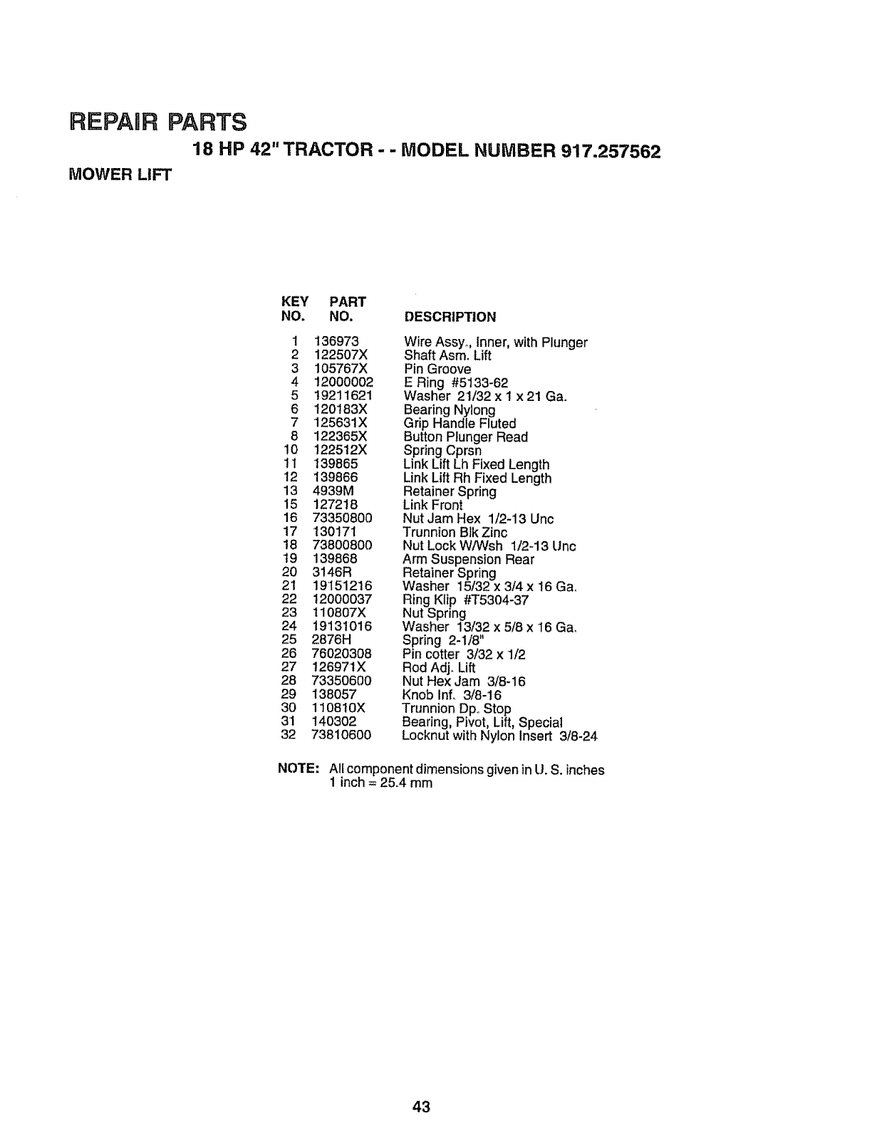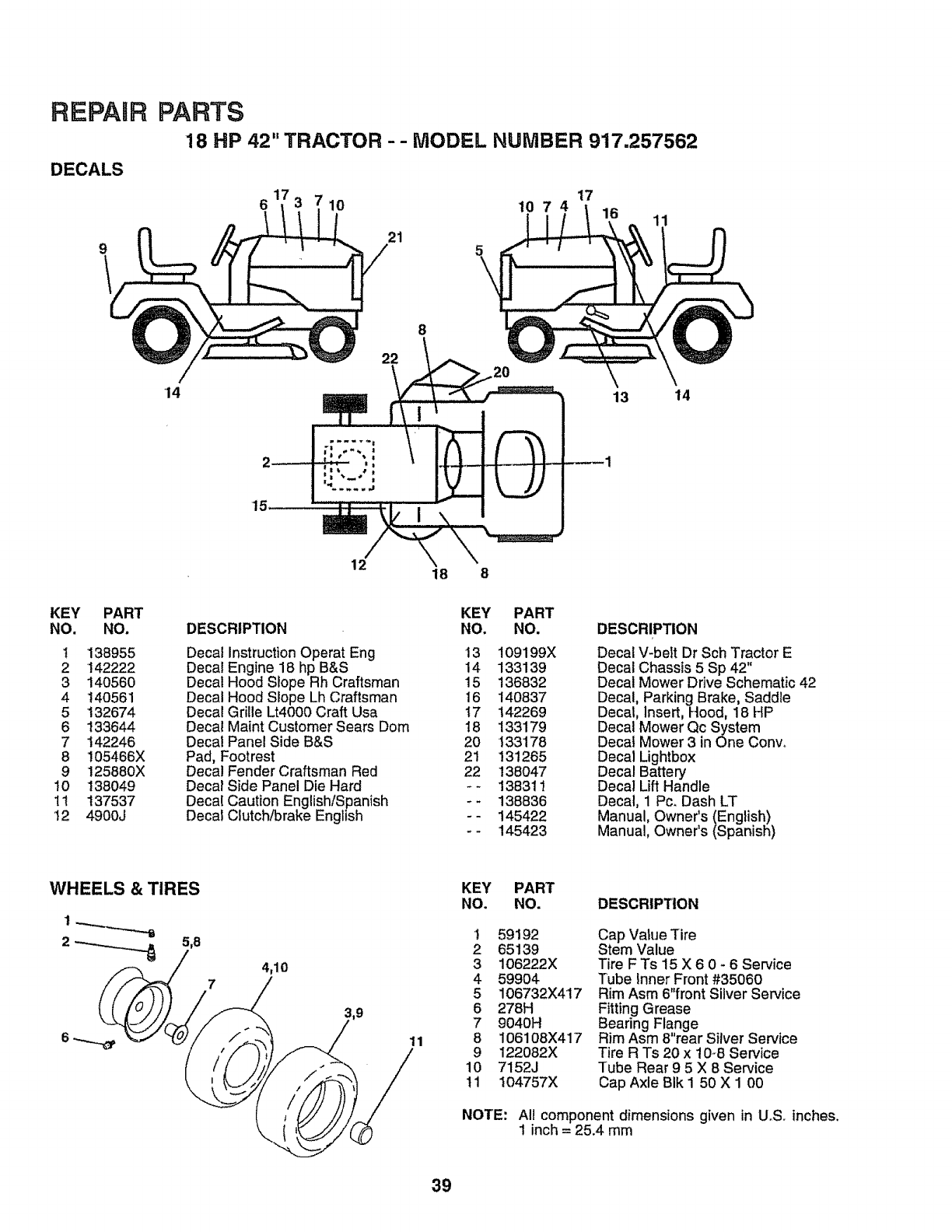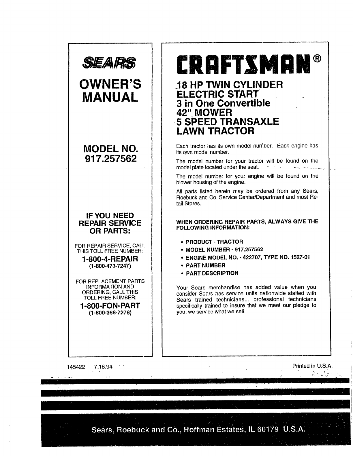 Craftsman 917257562 User Manual TRACTOR Manuals And Guides 1007794L