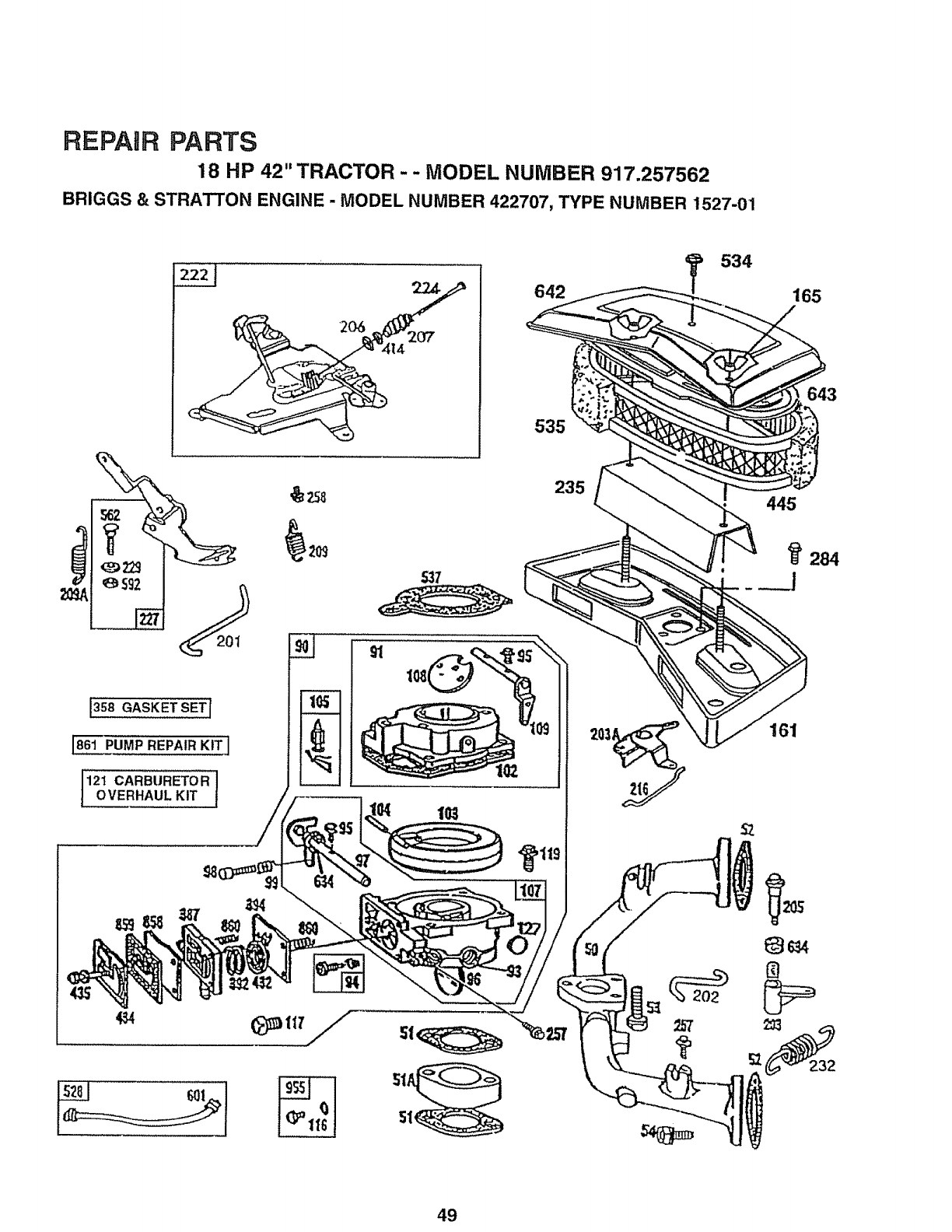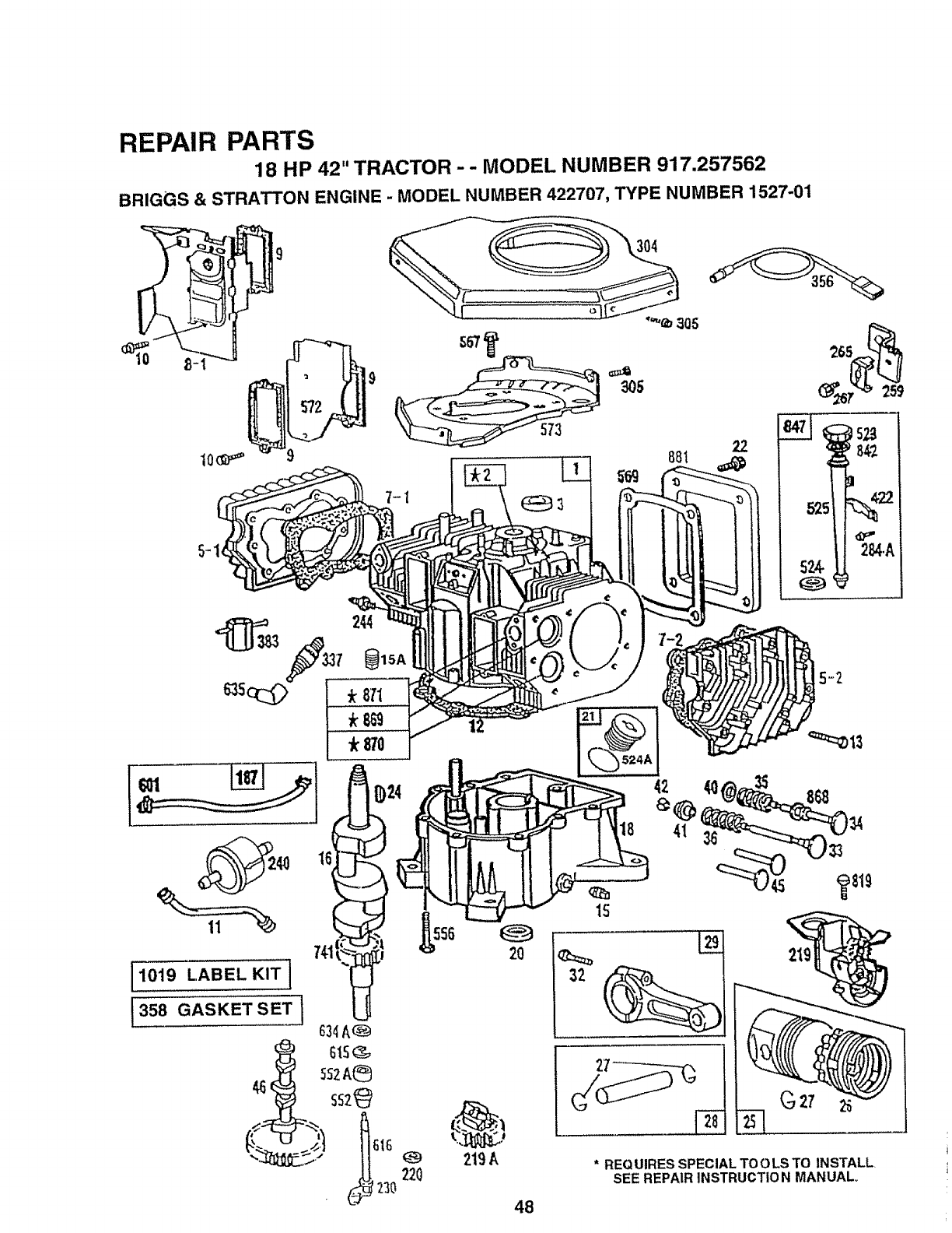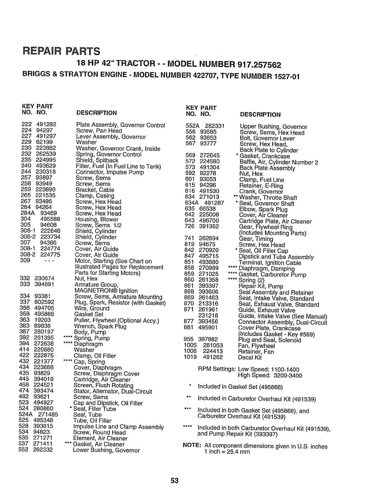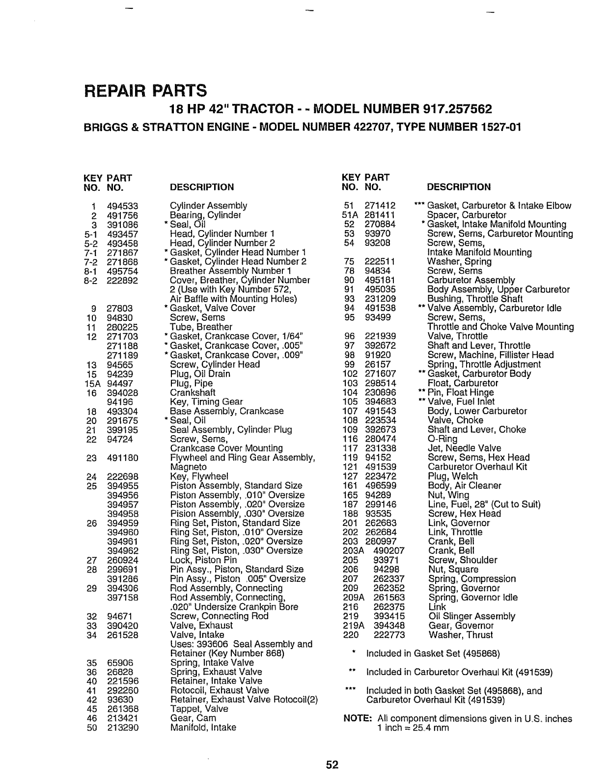 • ENGINE MODEL NO. - 422707, TYPE NO. 1527-01