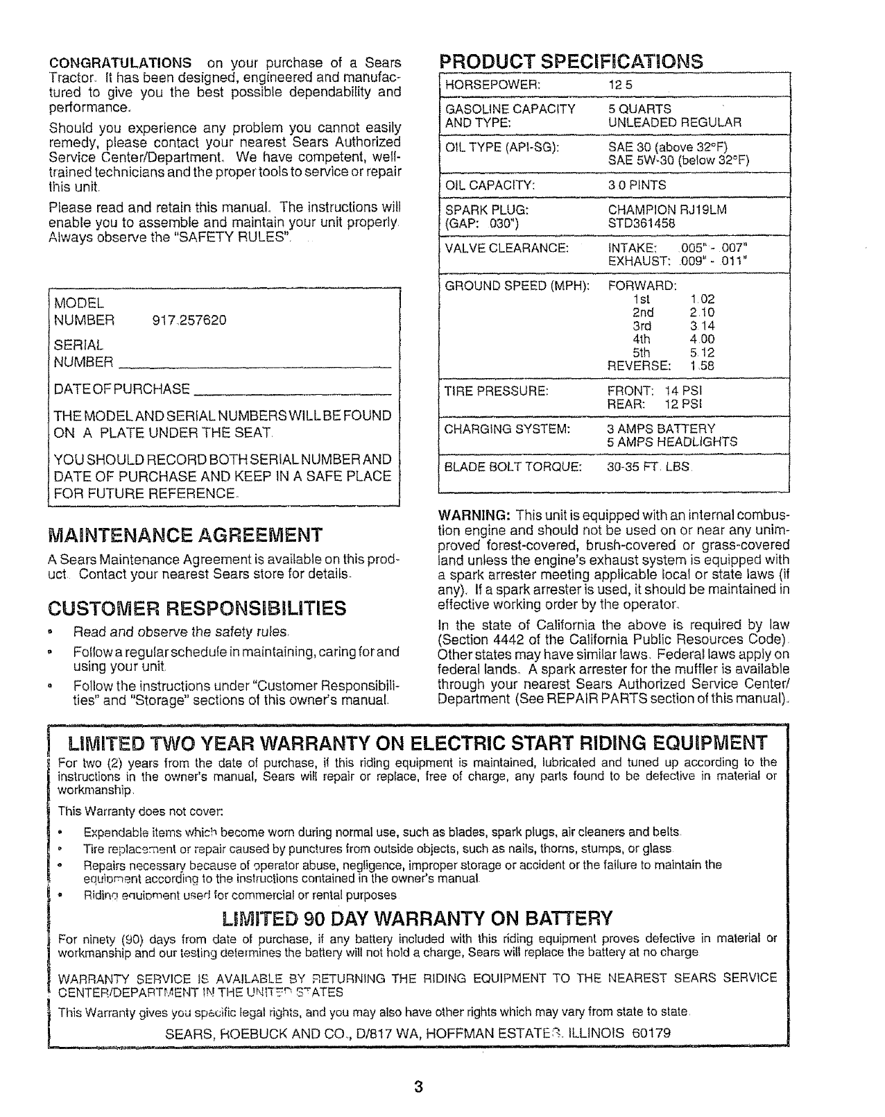 Craftsman 917257620 User Manual Lawn, Tractor Manuals And Guides LR707473