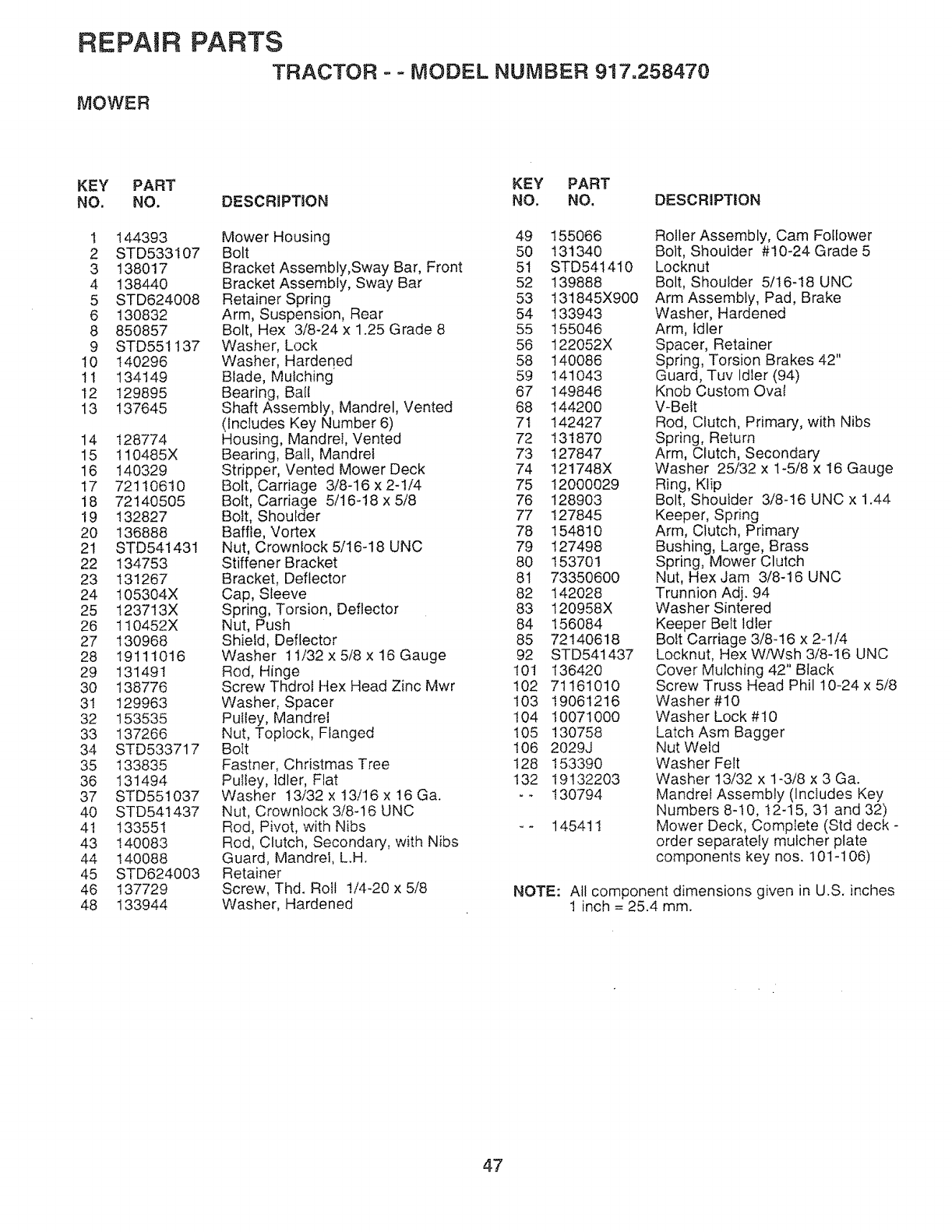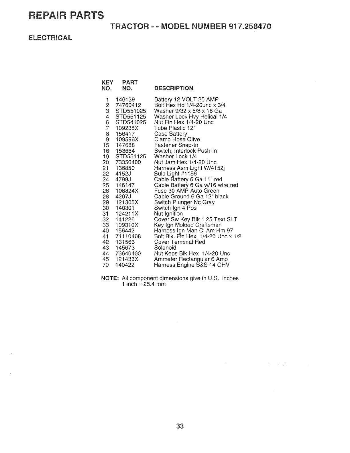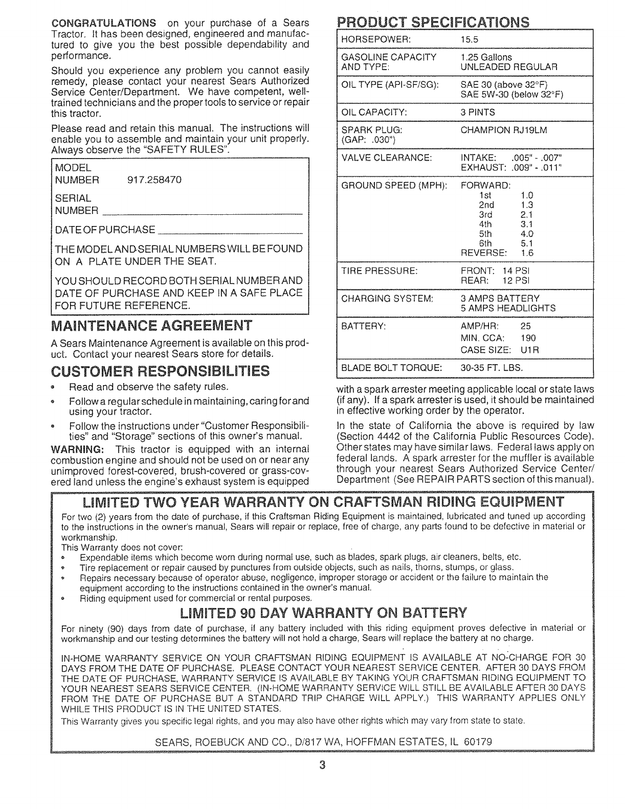 Craftsman 917258470 User Manual TRACTOR Manuals And Guides L0903305