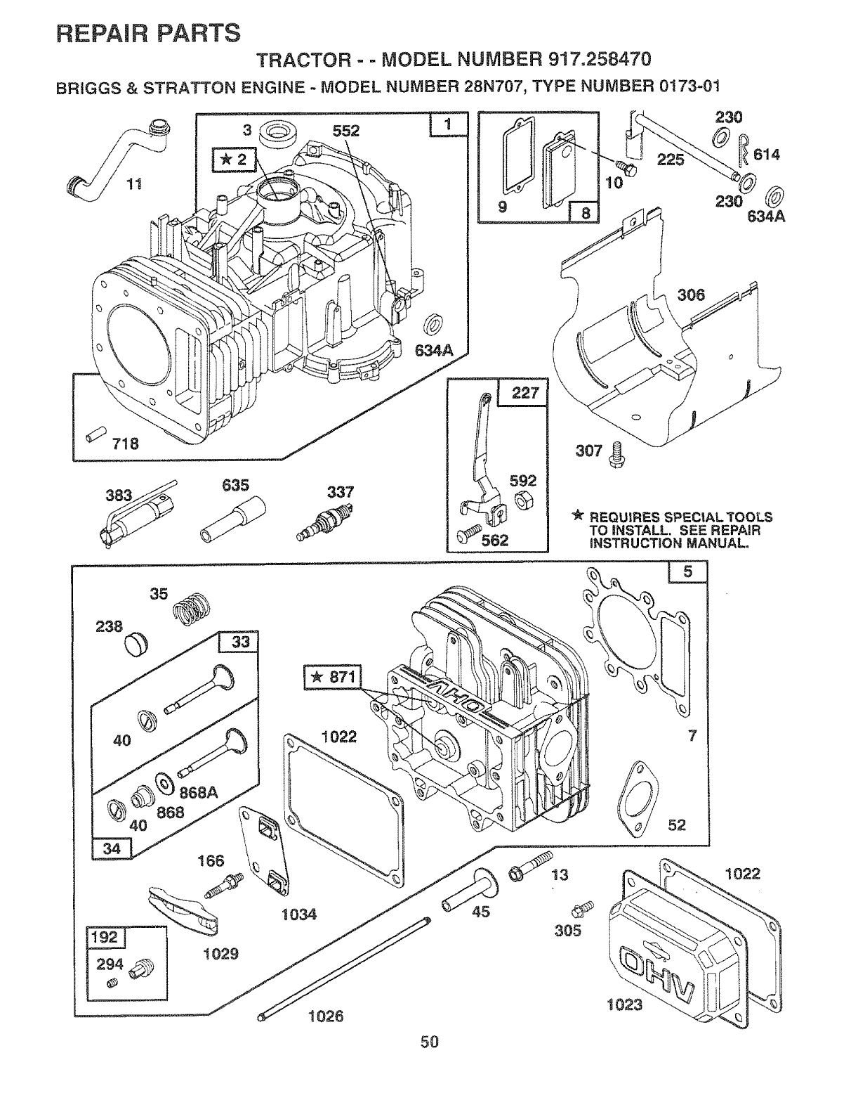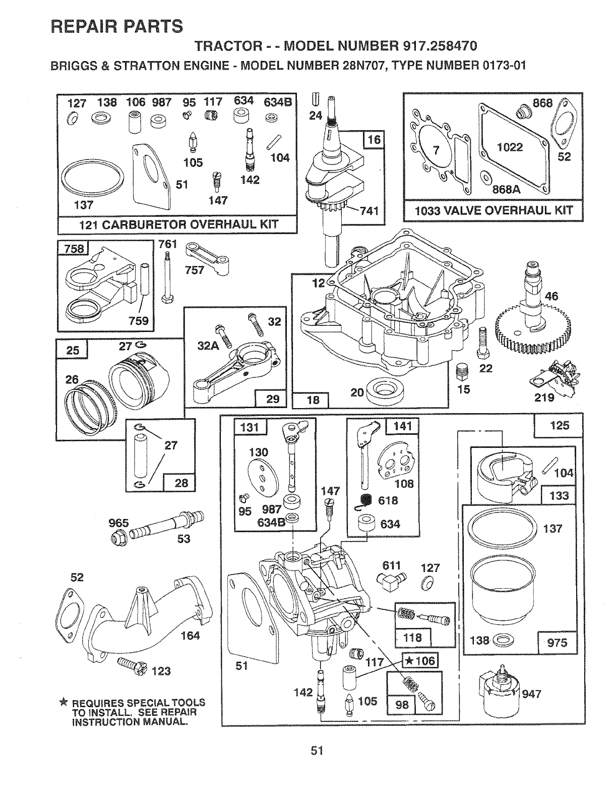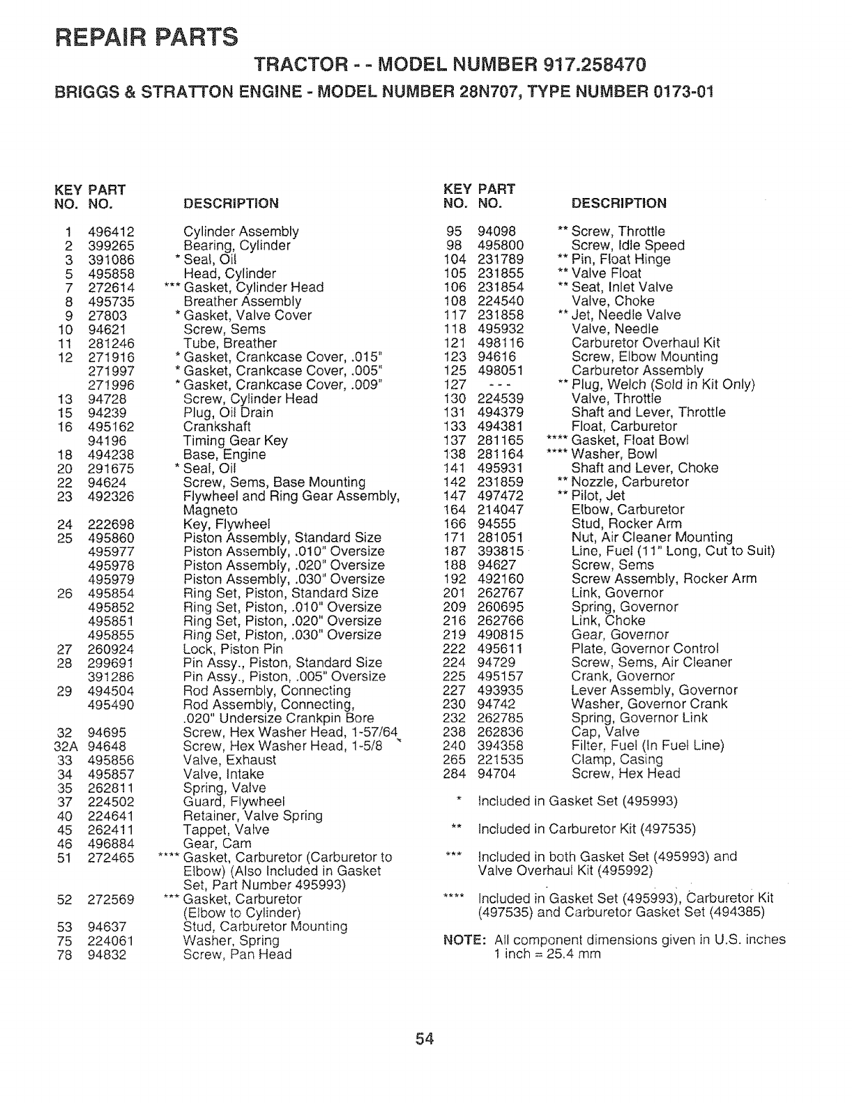 BRIGGS & STRATTON ENGBNE - MODEL NUMBER 28N707, TYPE NUMBER 0173-01