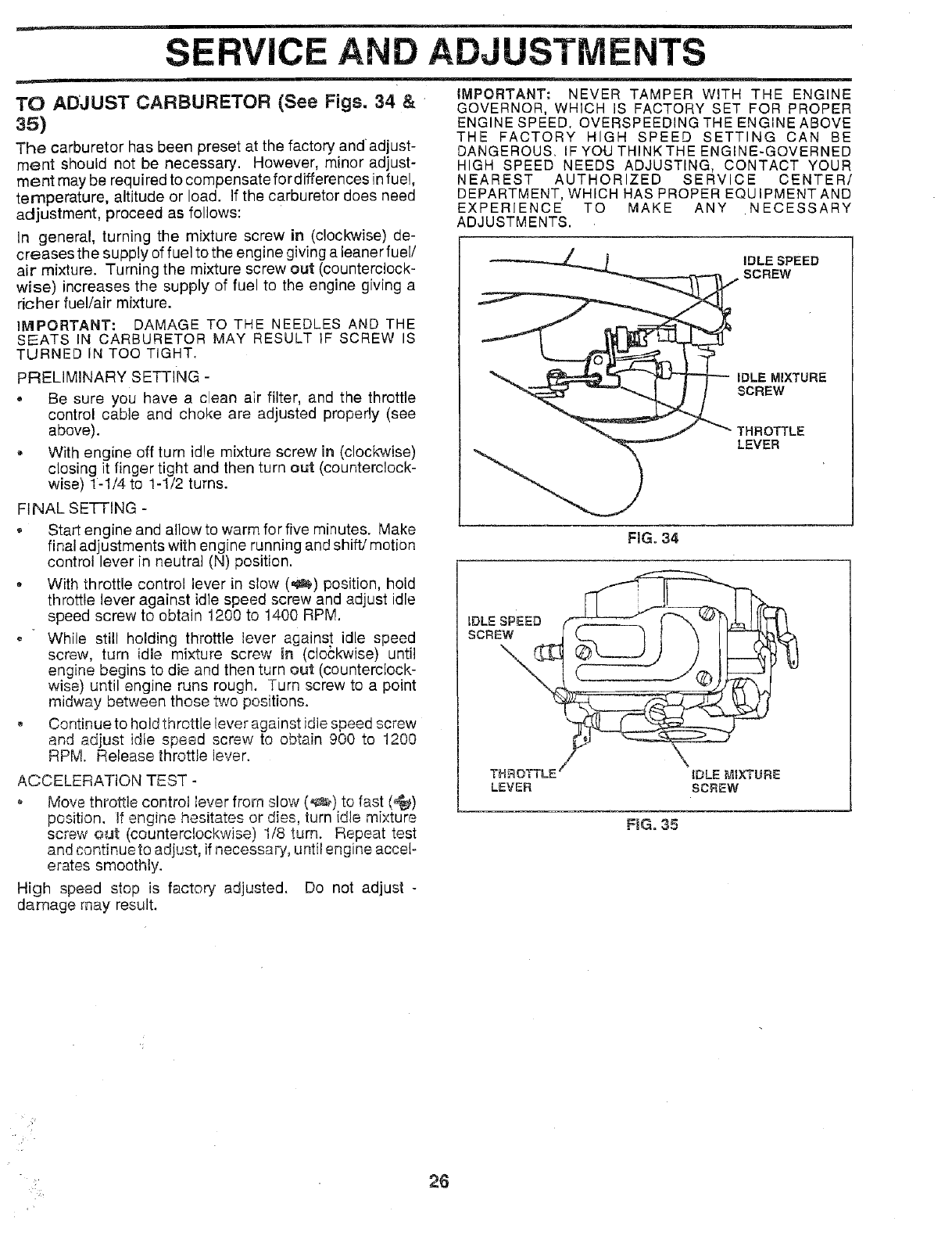 Service and Adjustments