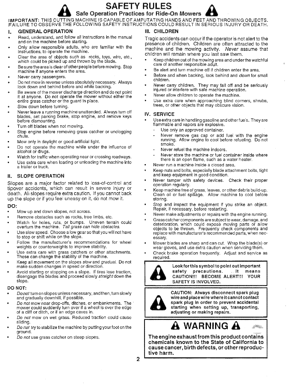 Safe Operation Practices for Ride=On Mowers
