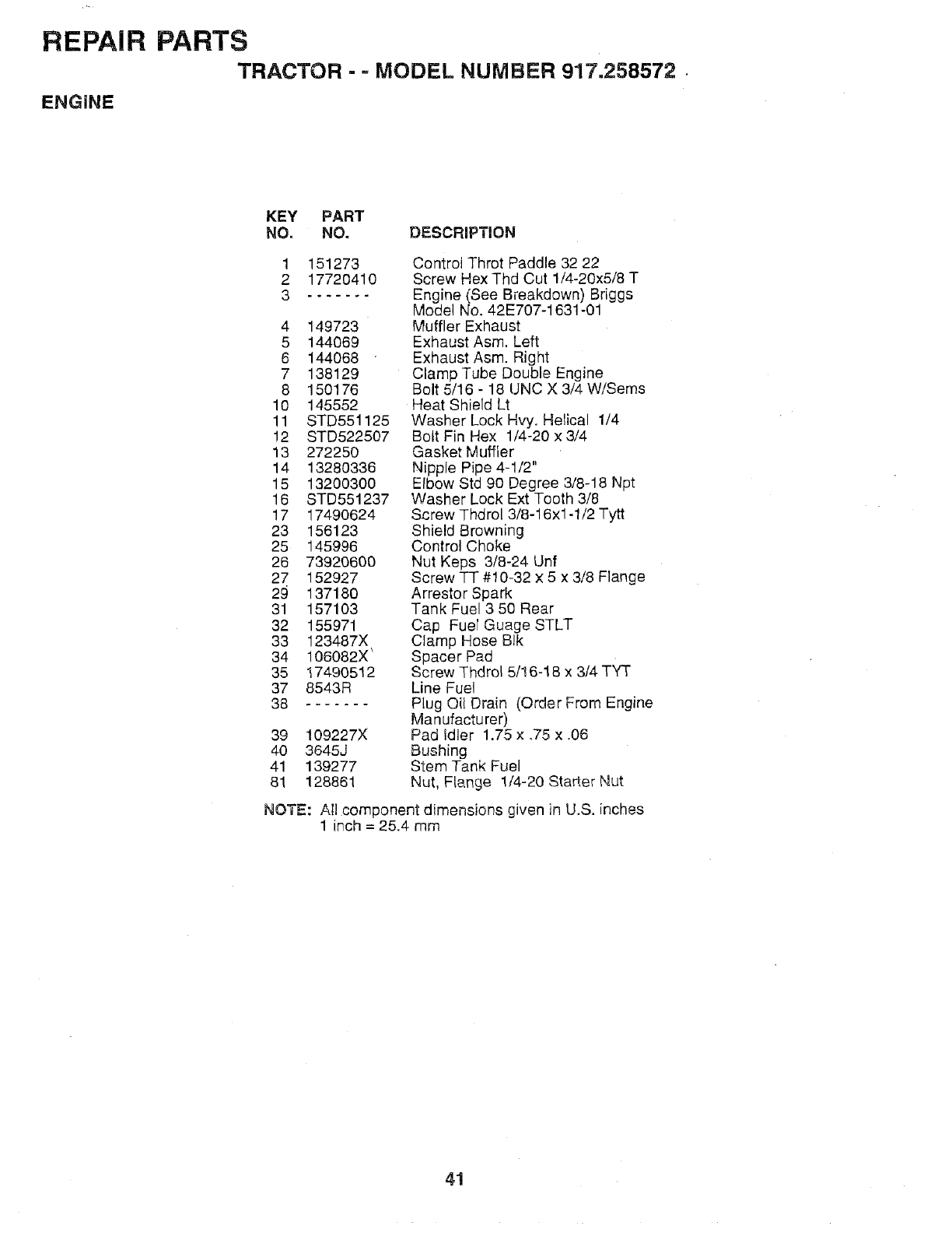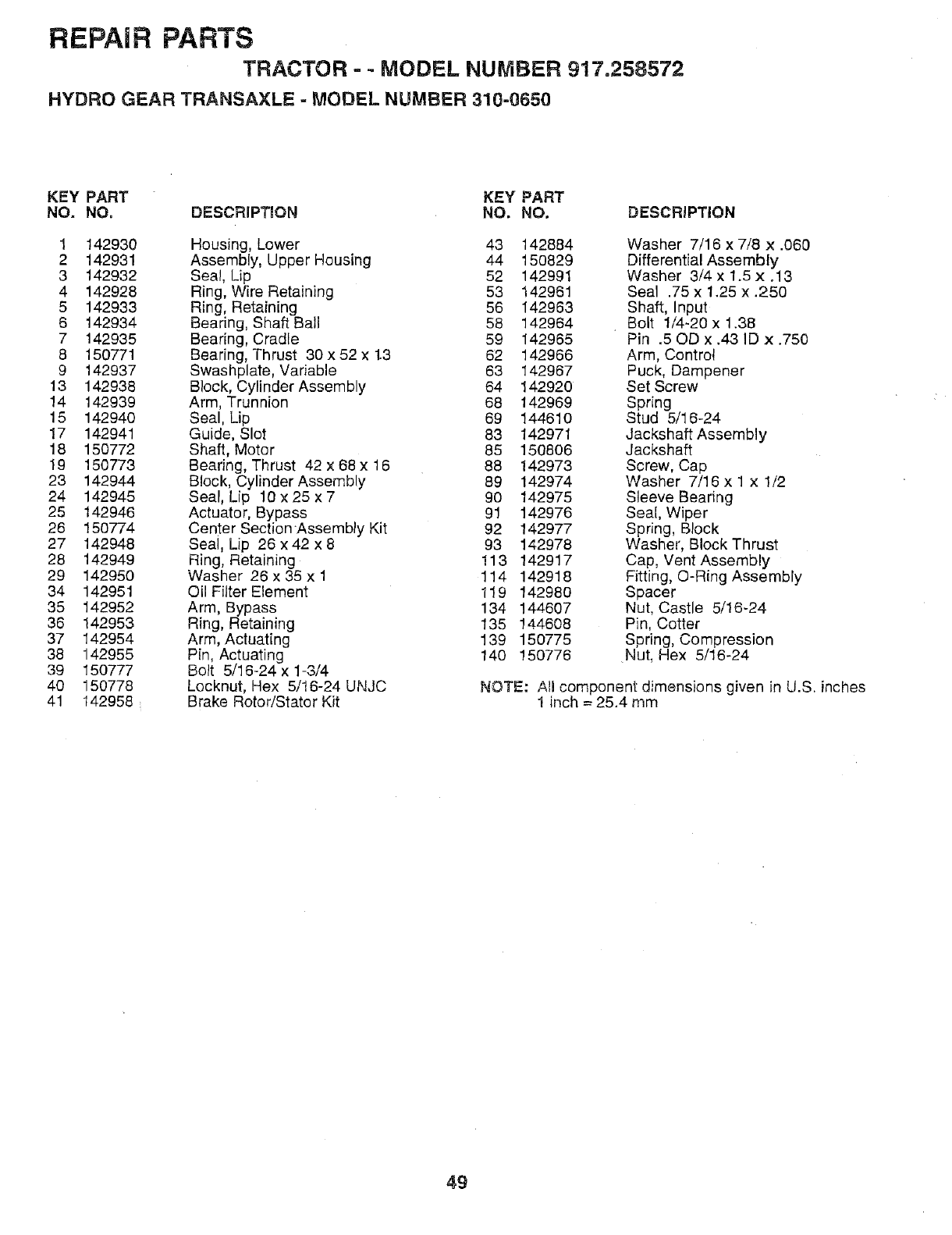 WHEN ORDERING REPAIR PARTS, ALWAYS GIVE THE